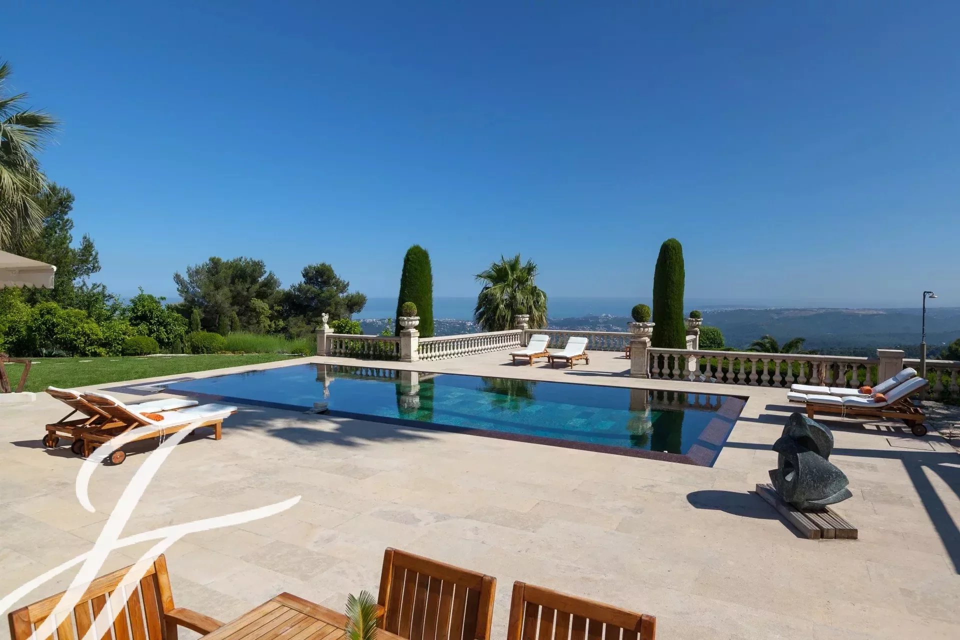 Situada numa posição dominante no coração da prestigiada e segura propriedade Hauts de Saint-Paul, esta sumptuosa moradia moderna oferece vistas espectaculares sobre o Mar Mediterrâneo.