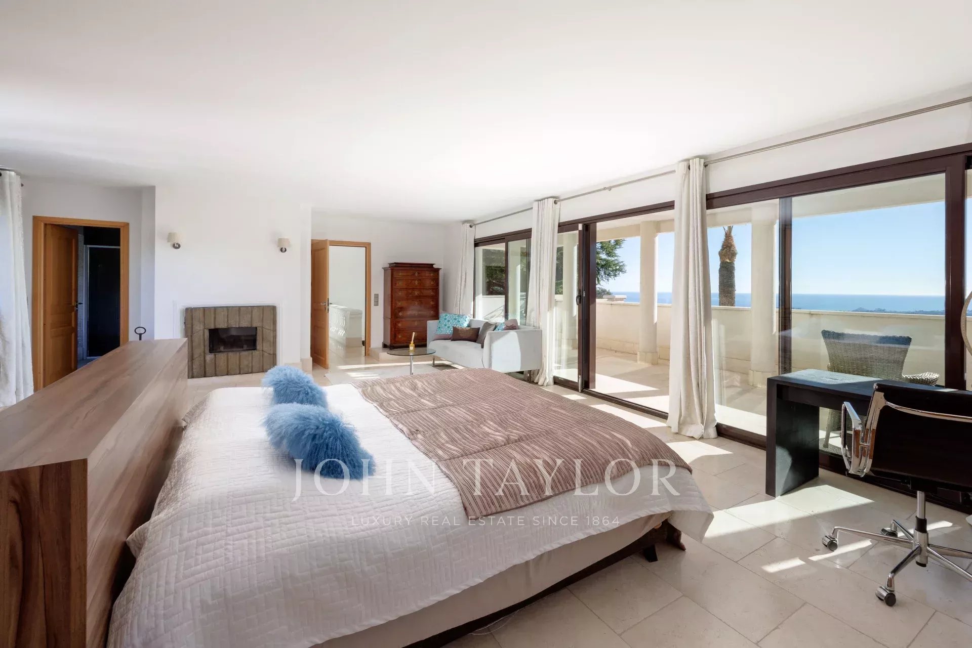 No andar de cima, dois quartos, cada um com a sua própria casa de banho, partilham um enorme terraço com vista para o mar, incluindo uma soberba suite principal com duche, banheira e vistas panorâmicas excepcionais.