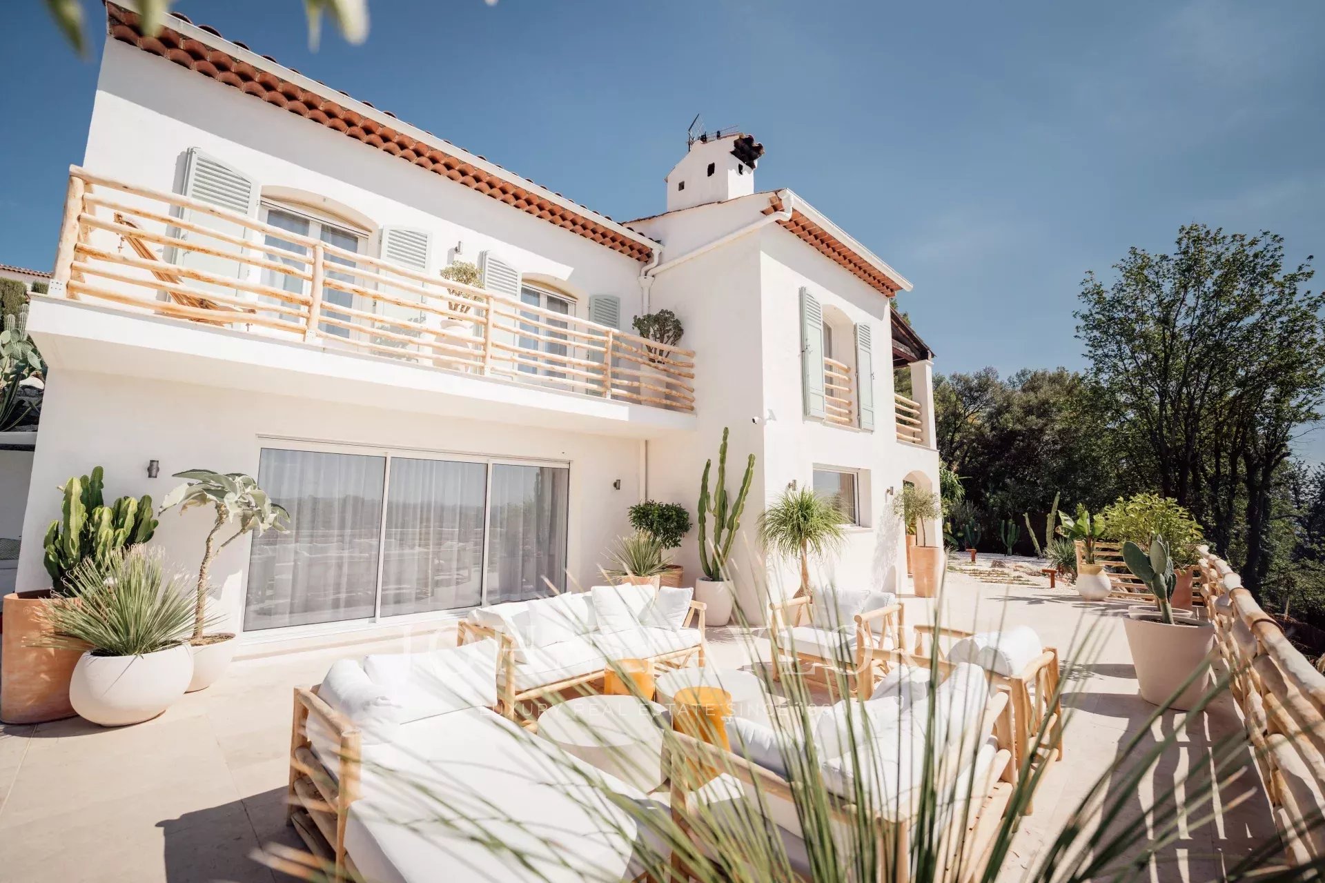 Esta espaçosa moradia de 215m2 num terreno de 1900m2, completamente renovada, tem 4 quartos com 4 casas de banho em betão encerado, e pode acomodar 8 pessoas.
