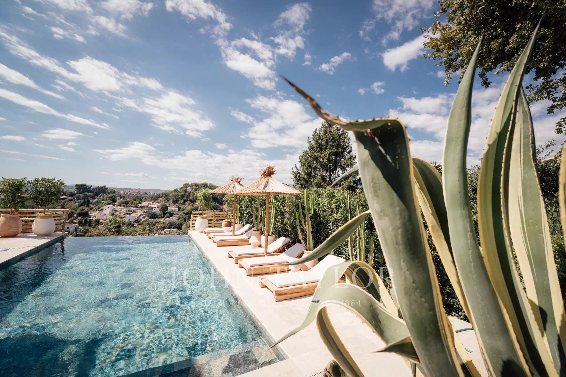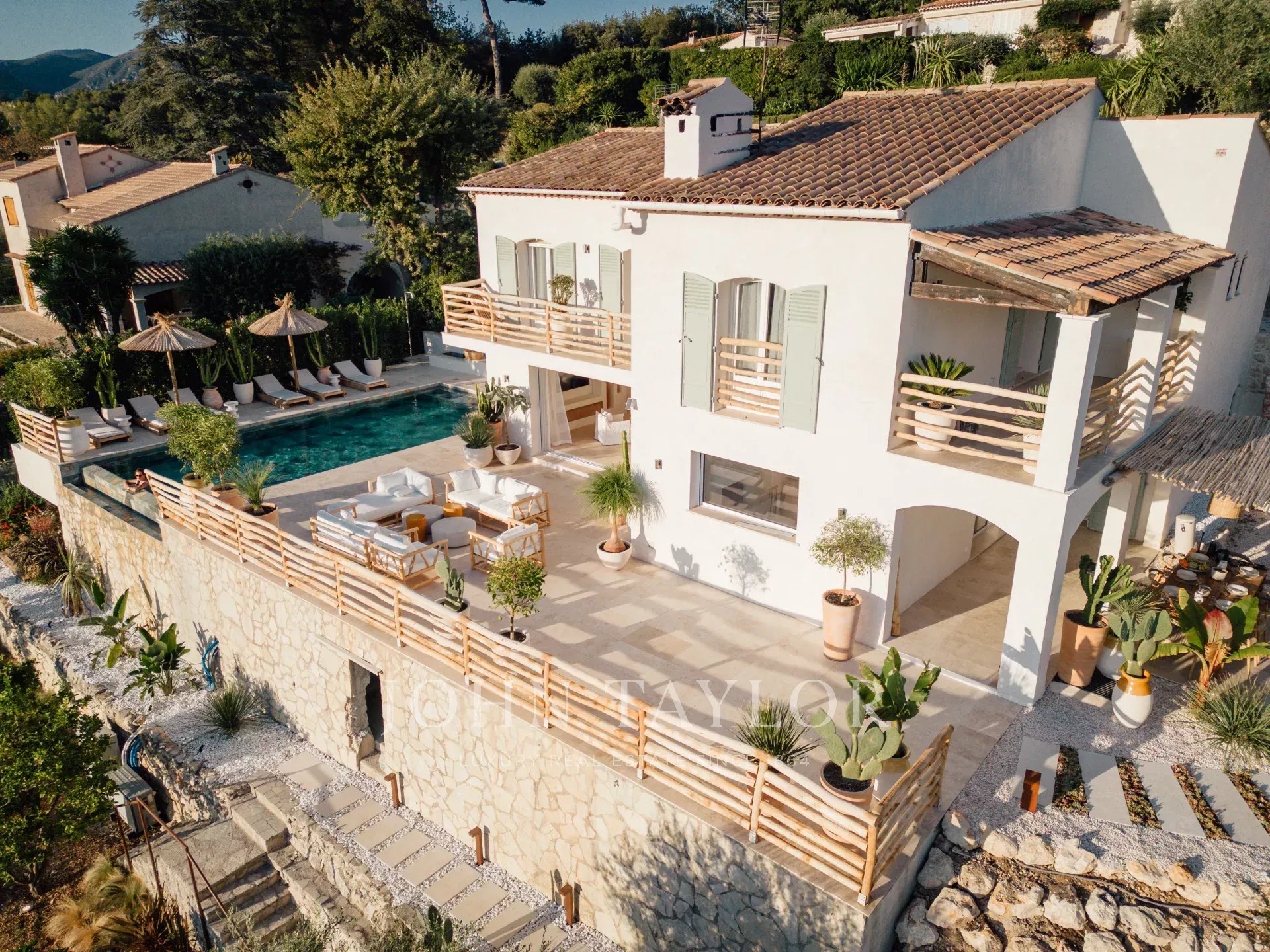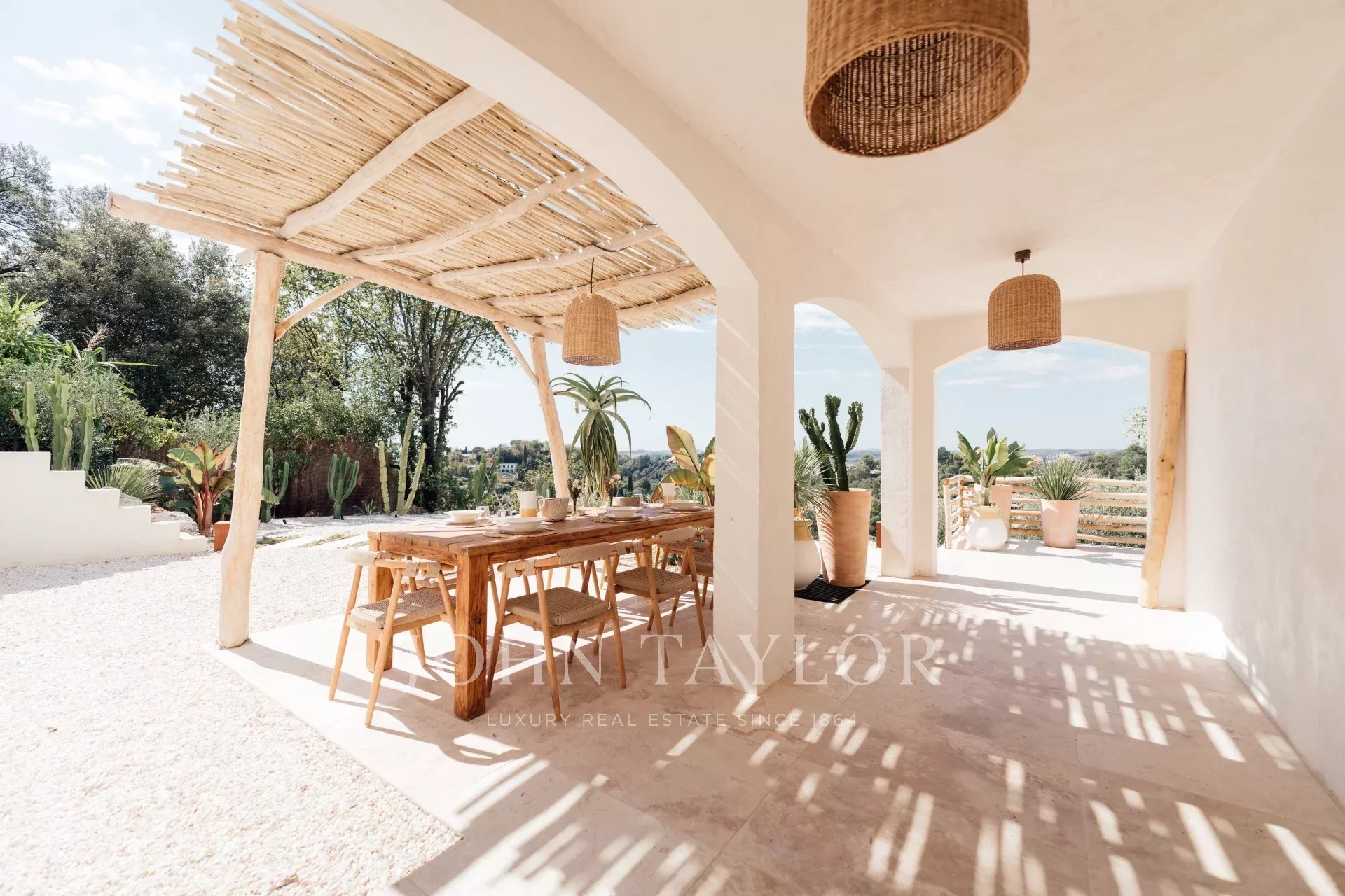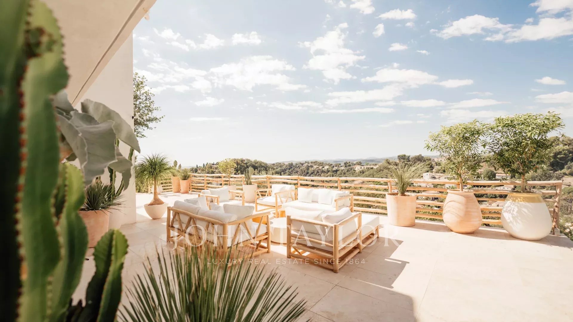 Do terraço, pode-se admirar uma vista de cartão postal da aldeia de Saint Paul de Vence, do mar e das montanhas.