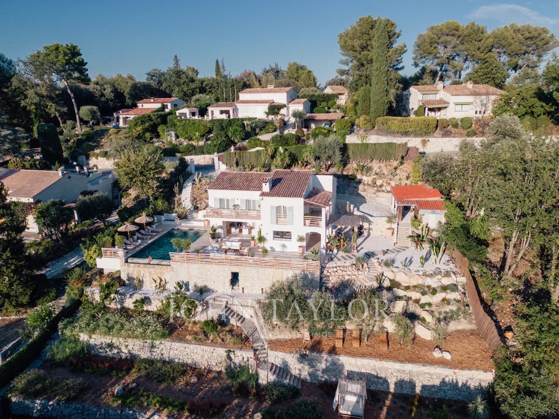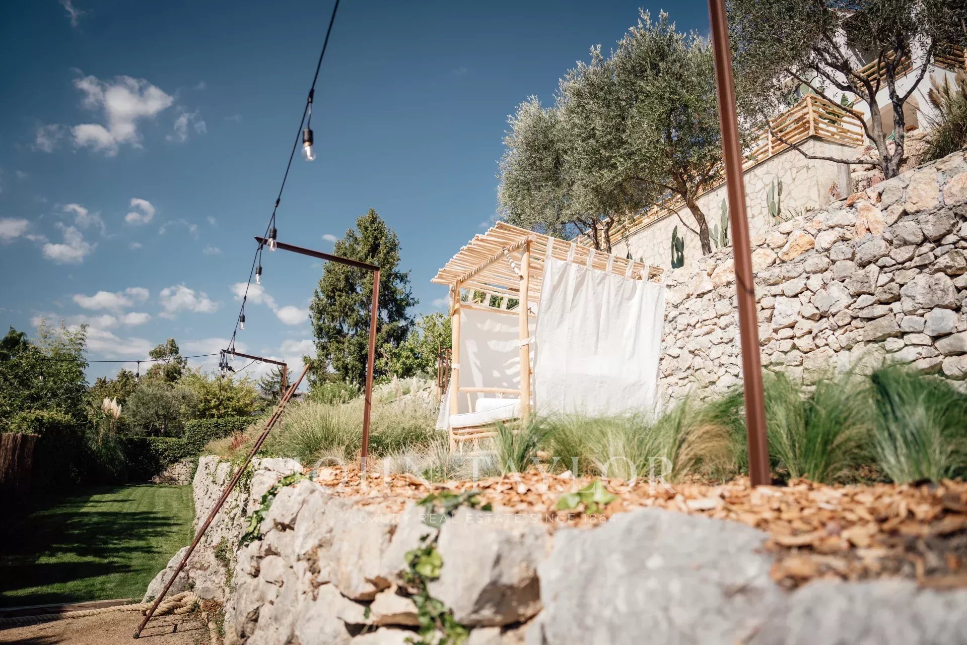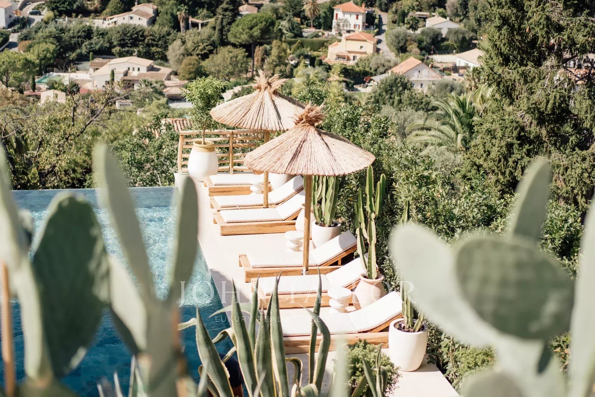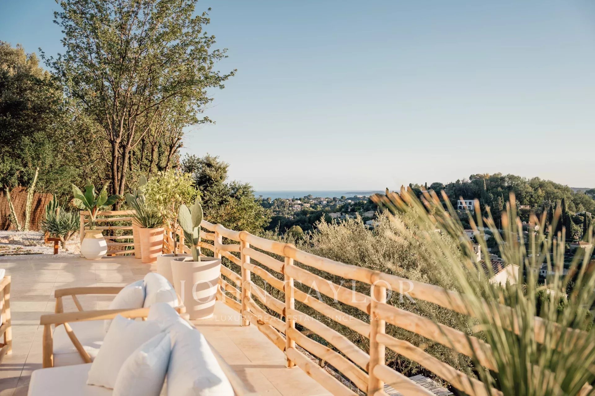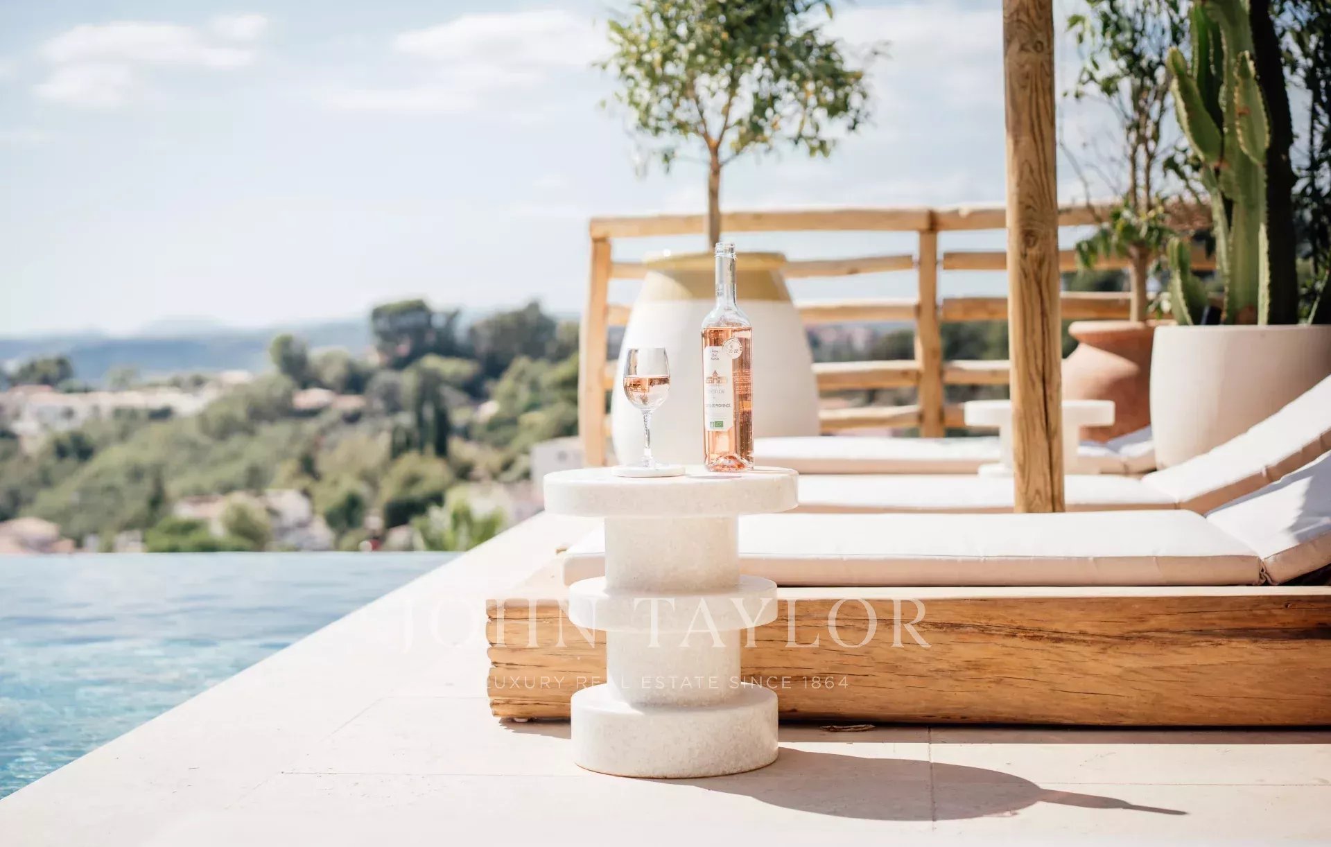 Do terraço, pode-se admirar uma vista de cartão postal da aldeia de Saint Paul de Vence, do mar e das montanhas.