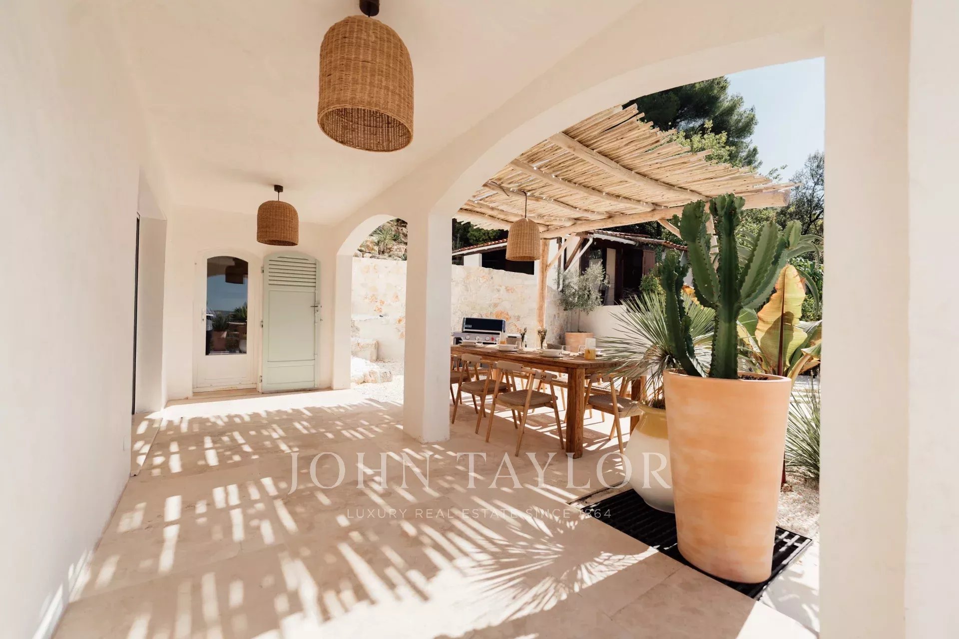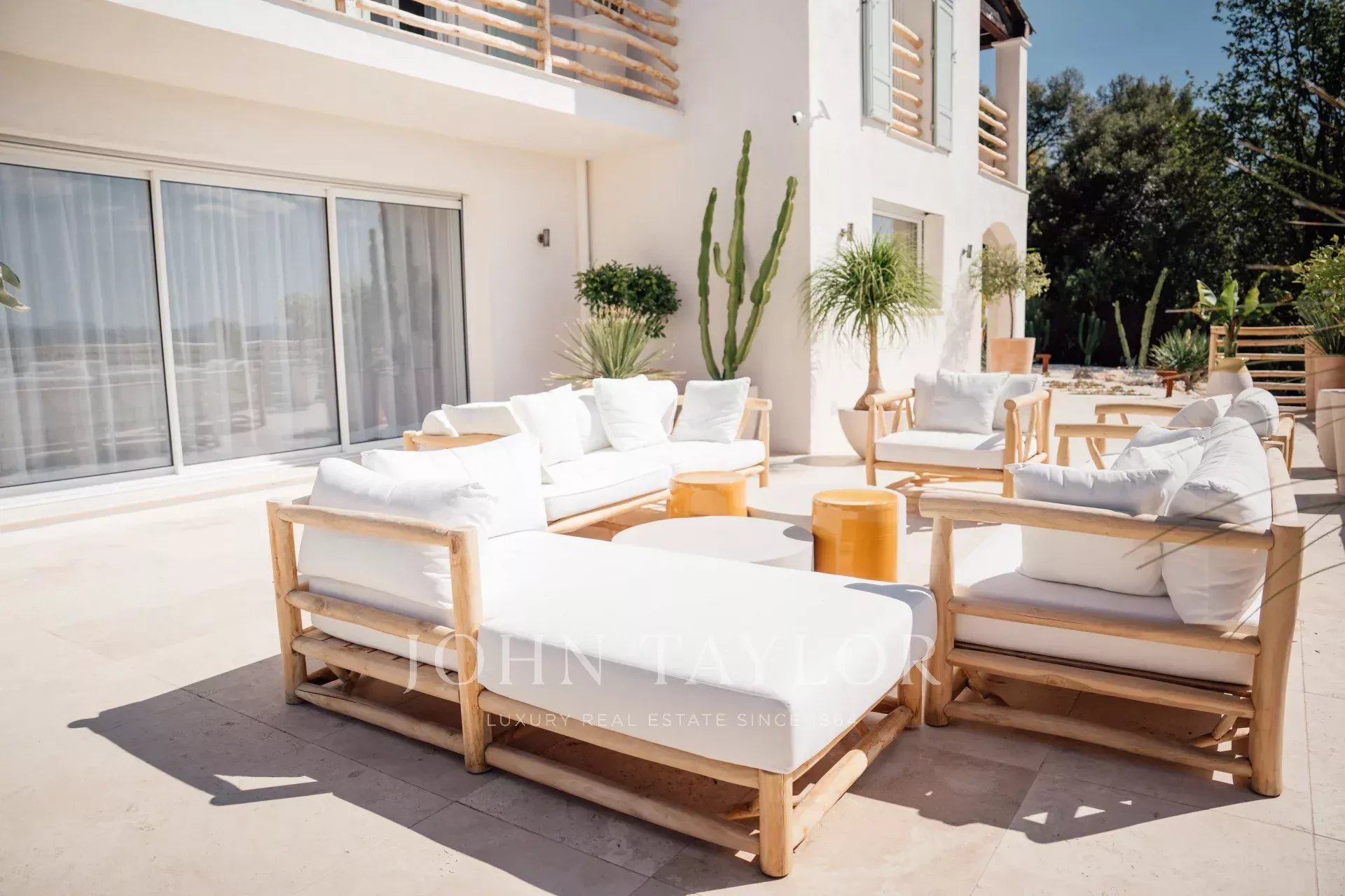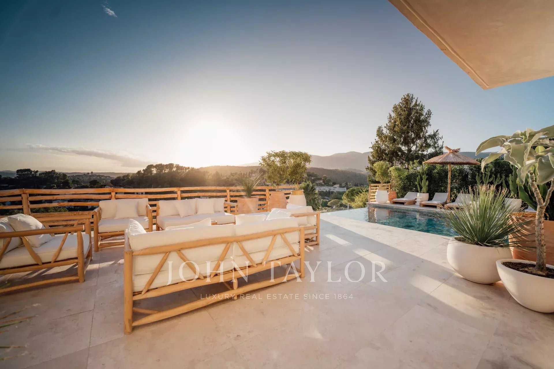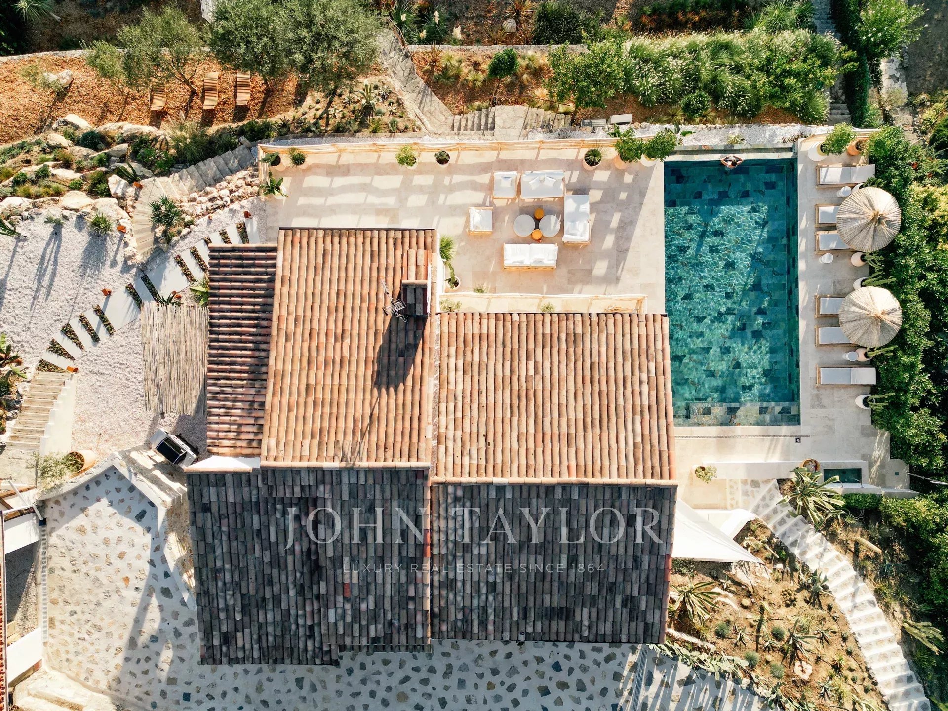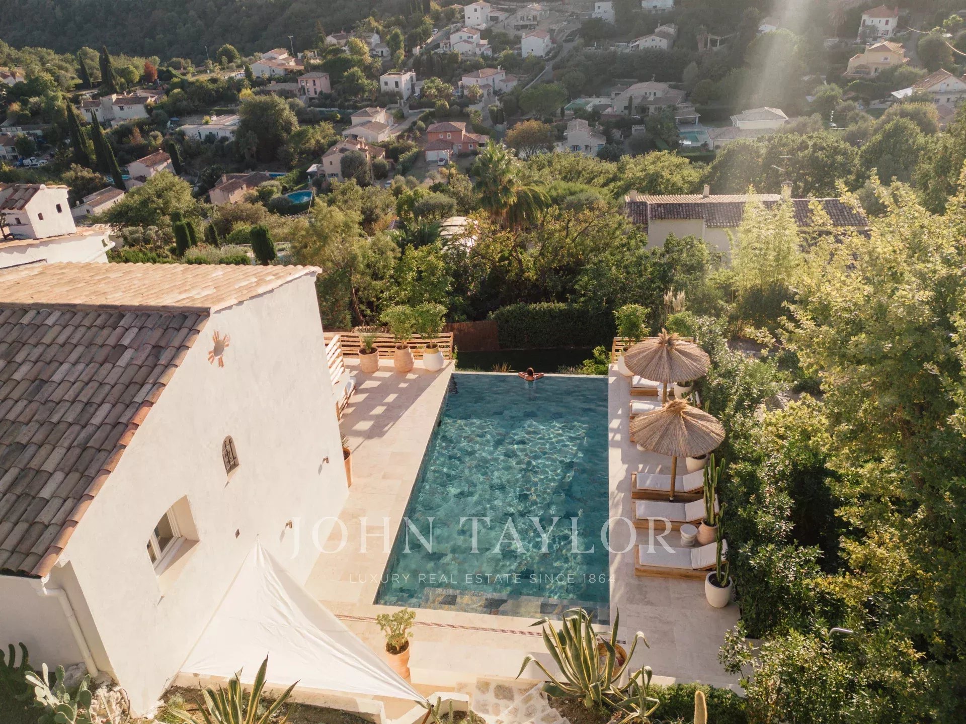 Do terraço, pode-se admirar uma vista de cartão postal da aldeia de Saint Paul de Vence, do mar e das montanhas.