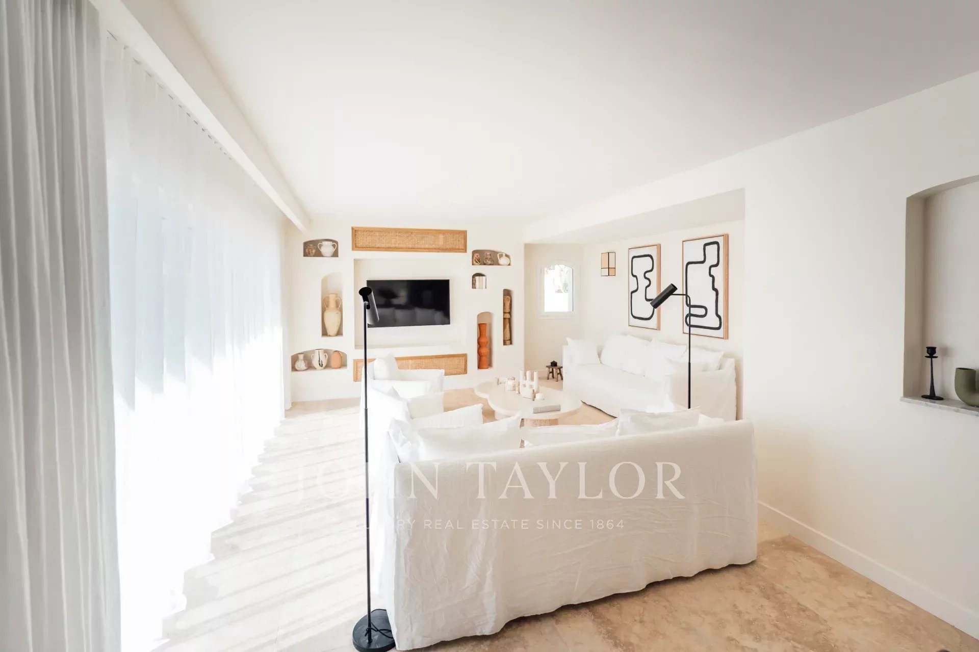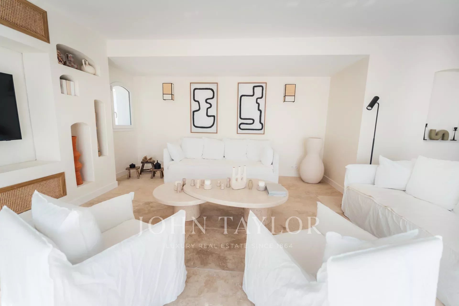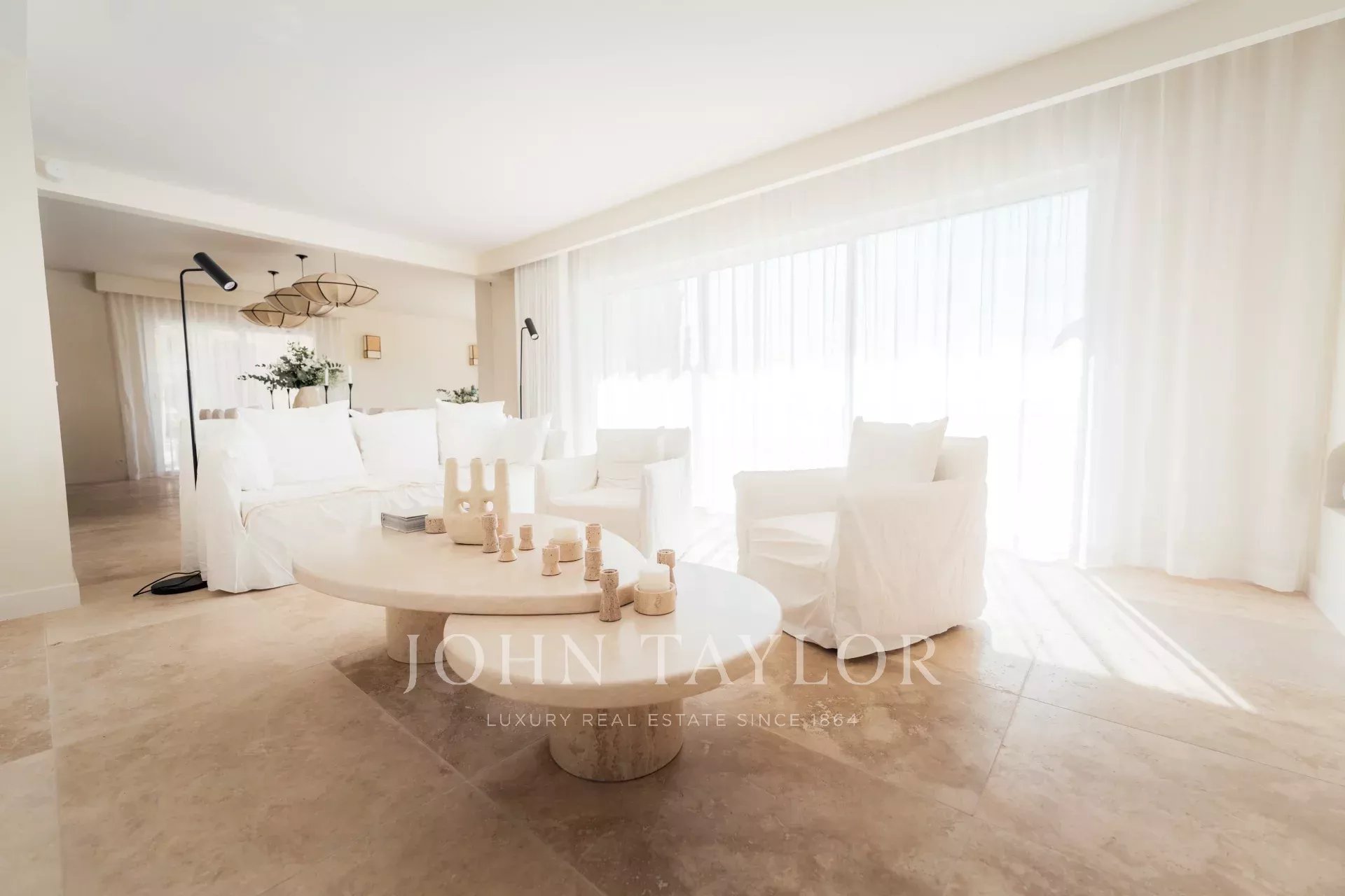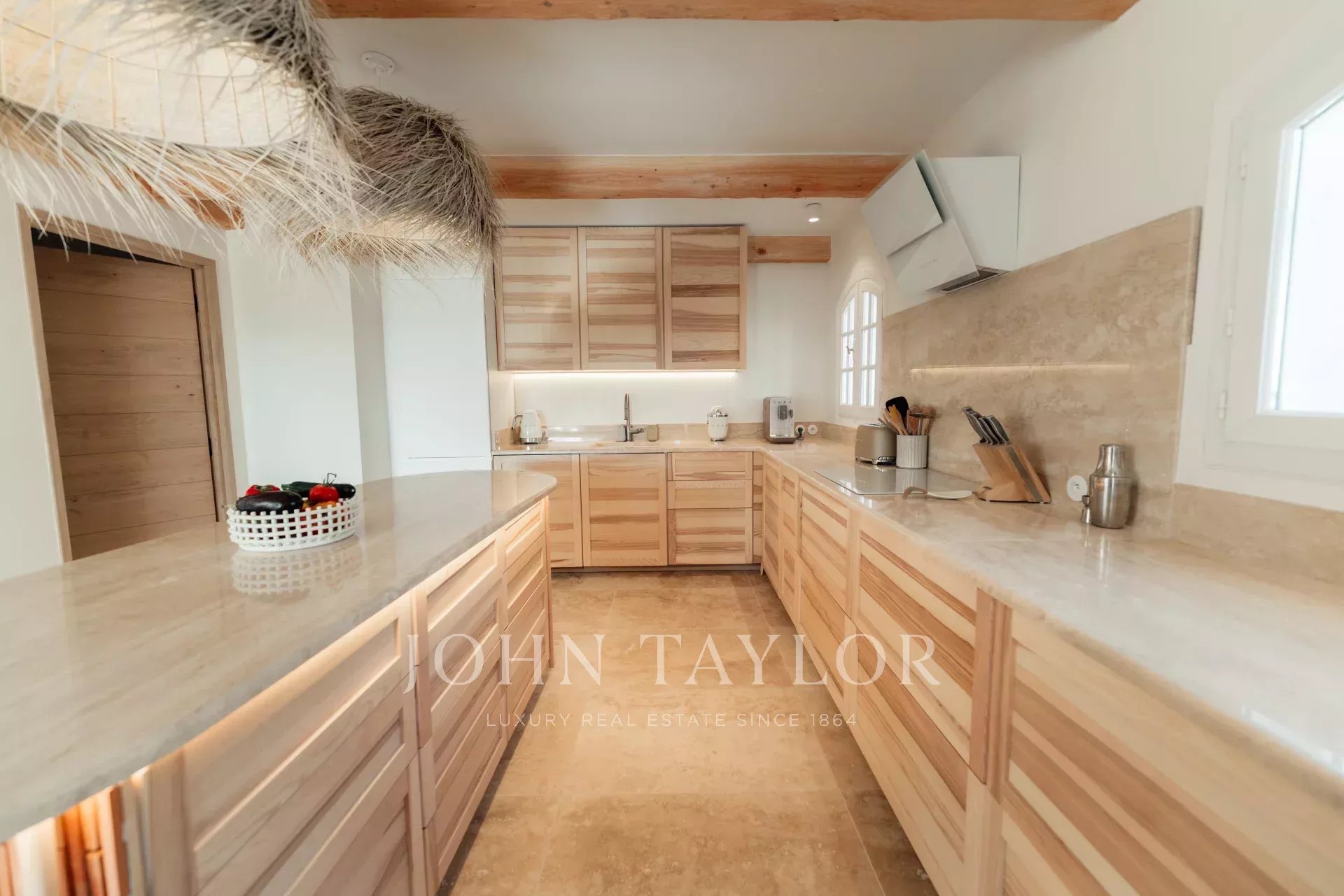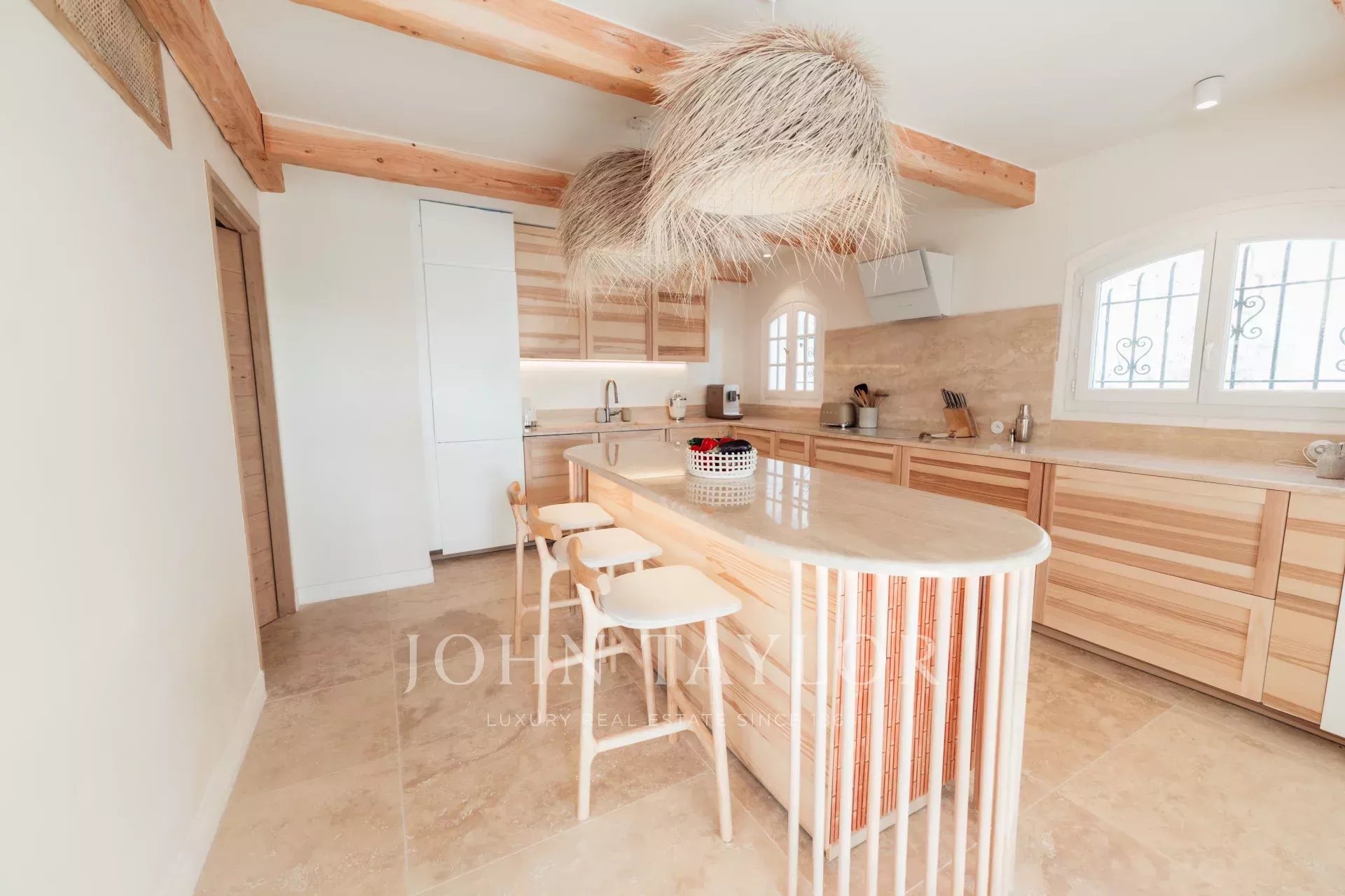 Há também uma grande cozinha em plano aberto, totalmente equipada, uma magnífica mesa de jantar e 2 salas de estar com sofás Roche Bobois.