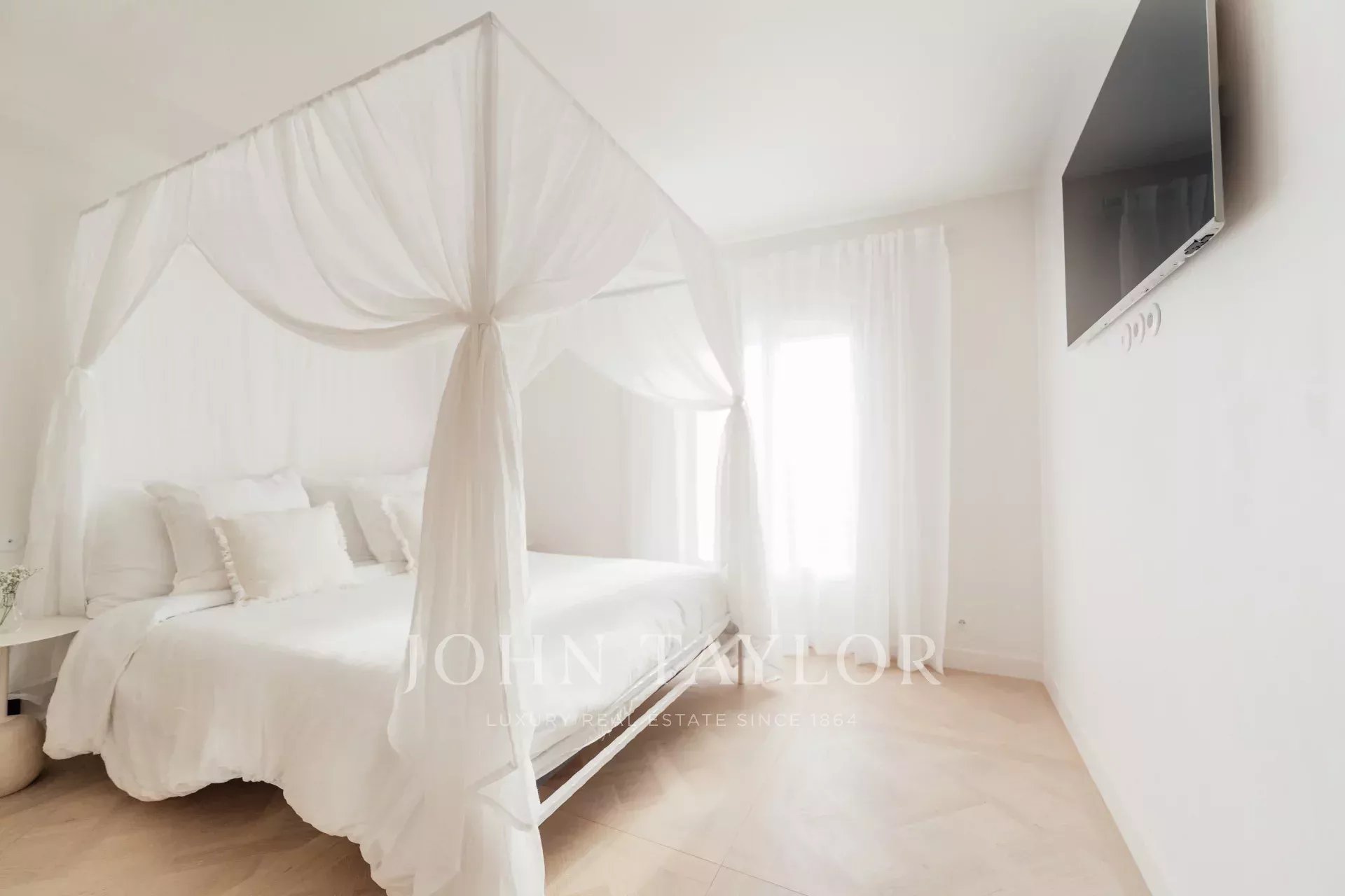 No rés do chão, 1 quarto principal com um grande quarto de vestir, casa de banho privativa e varanda privada com uma vista magnífica sobre a aldeia de Saint Paul de Vence.
