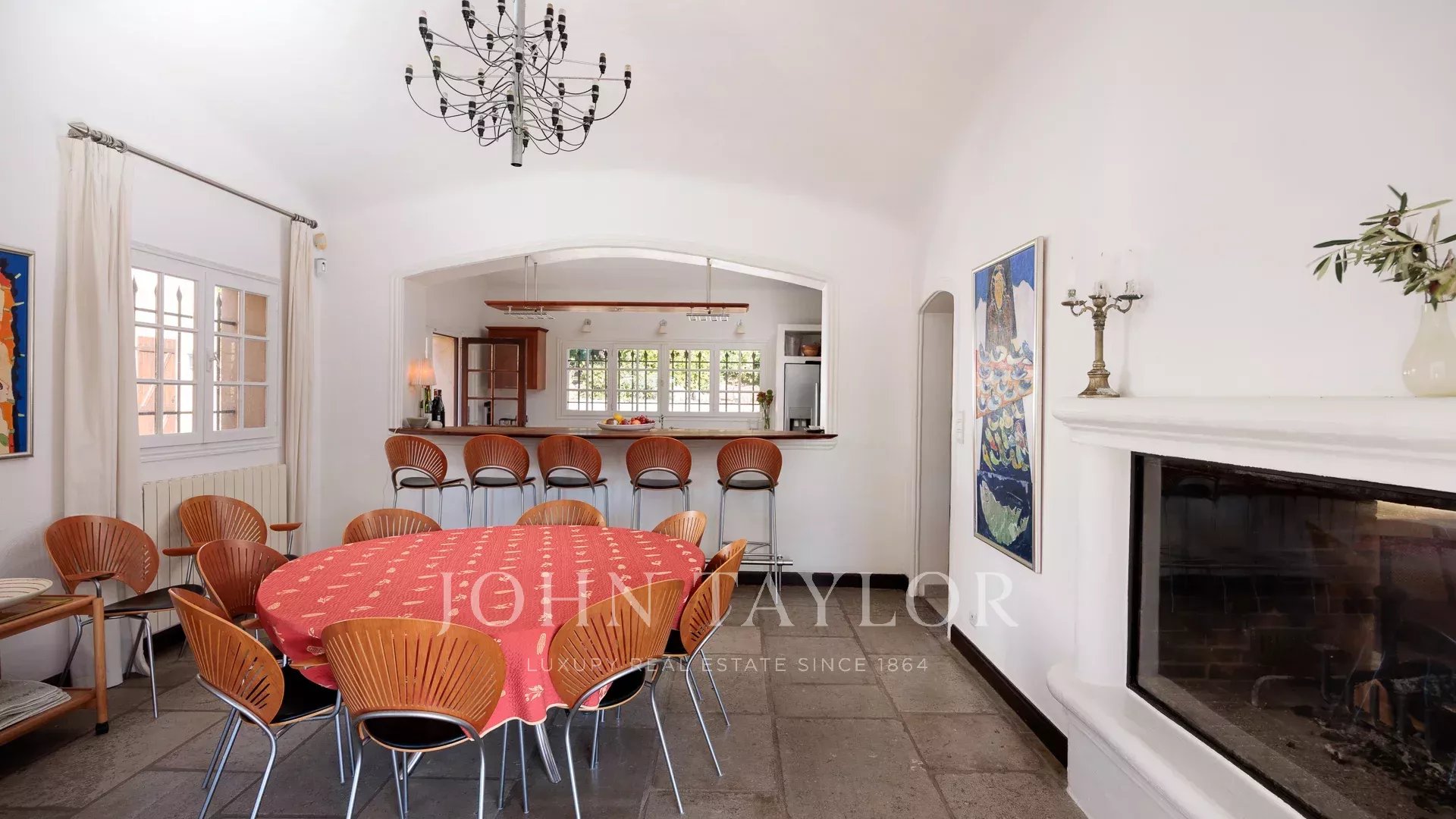 A moradia é acedida através de um hall de entrada que abre para duas salas de receção amplas e luminosas com lareira, uma cozinha totalmente equipada e uma sala de jantar. A propriedade tem 9 quartos totalmente equipados com casa de banho privativa, com uma capacidade máxima de 20 pessoas.