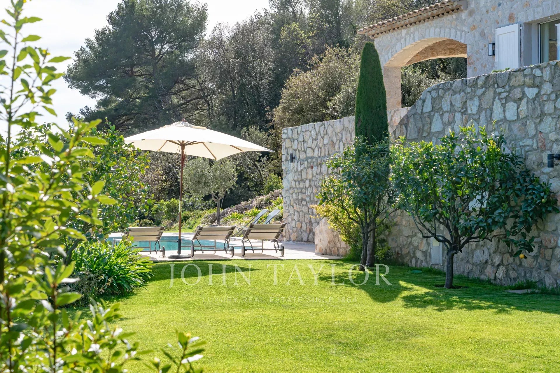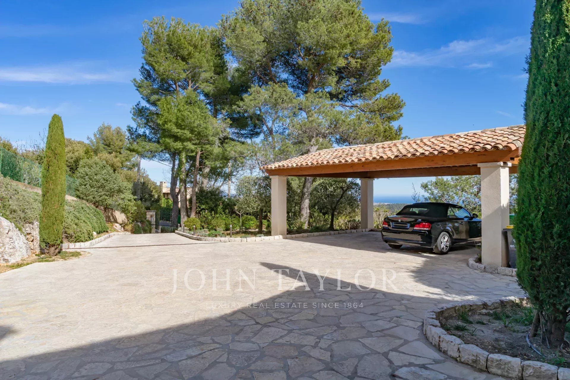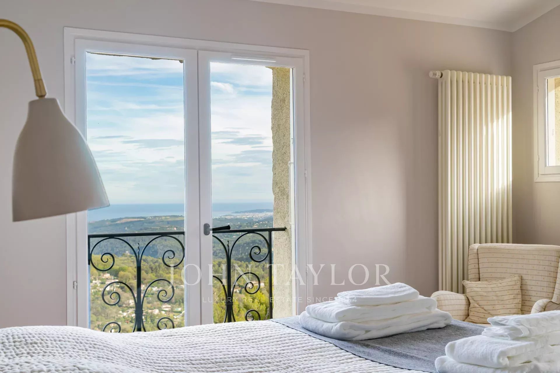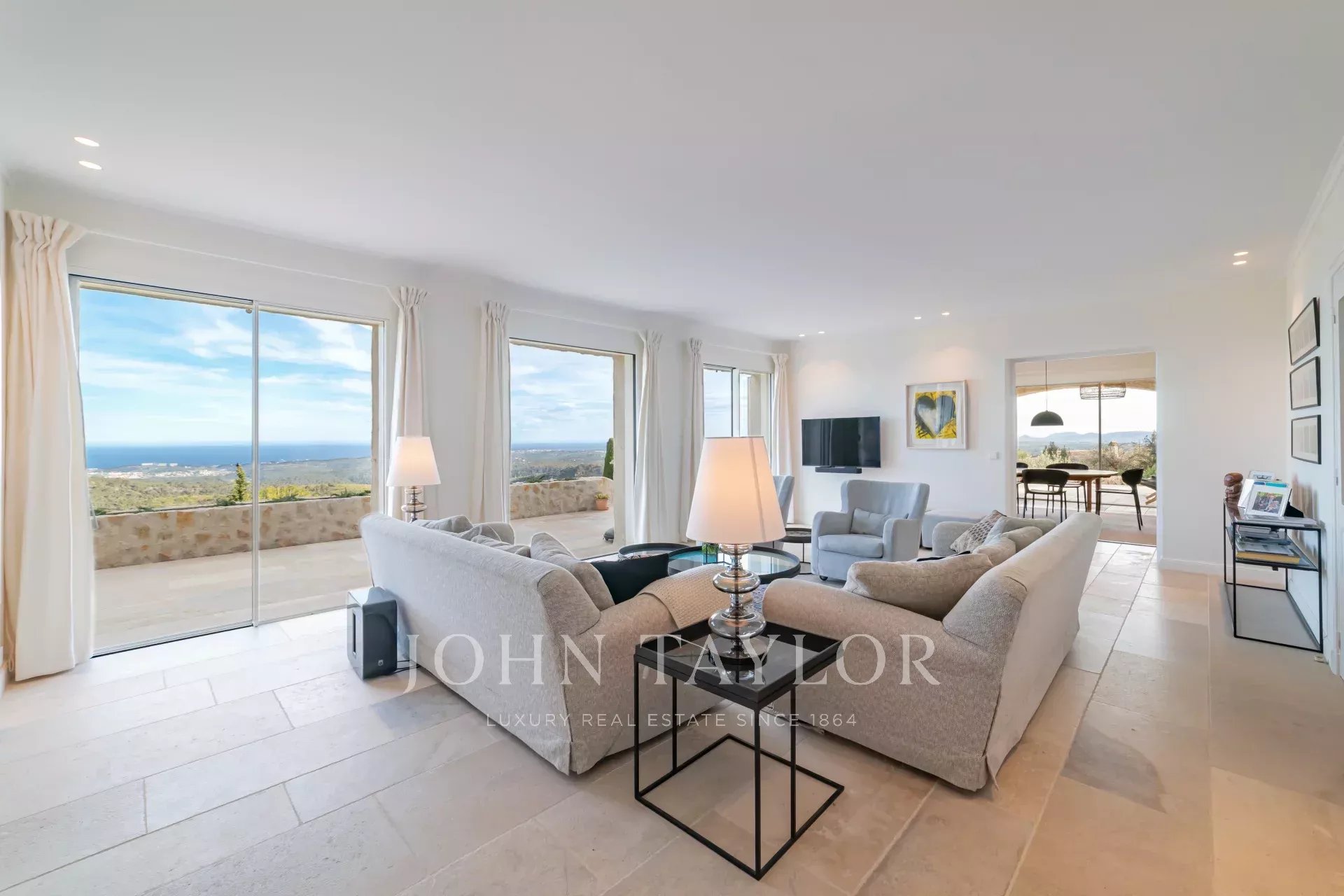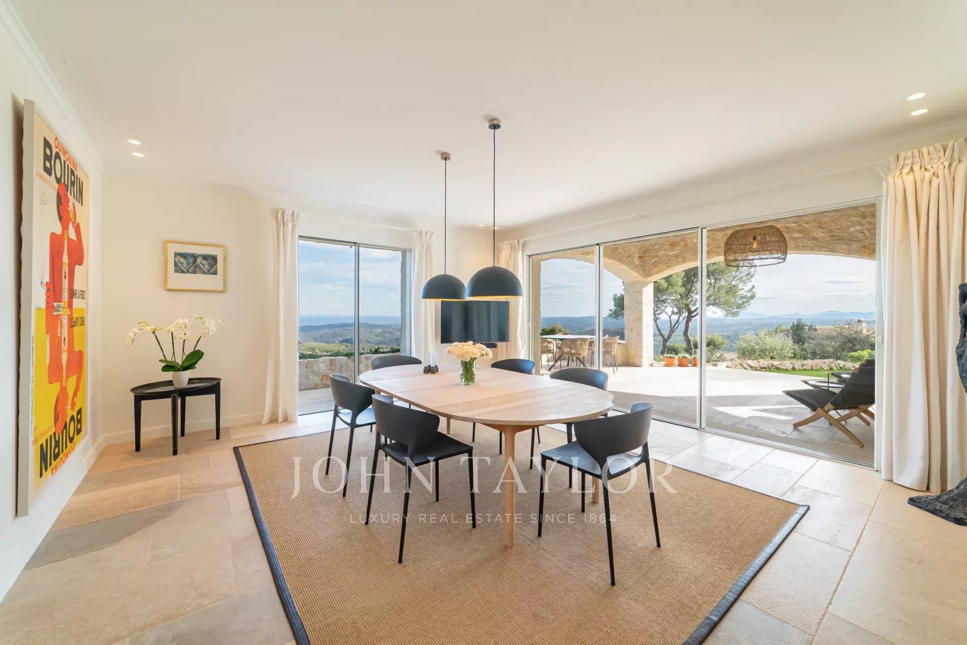 Em Tourrettes sur Loup, com vistas magníficas sobre o mar e a paisagem circundante, uma bela propriedade recentemente construída com 320 m² de área habitacional em 4.000 m² de terreno com piscina infinita.