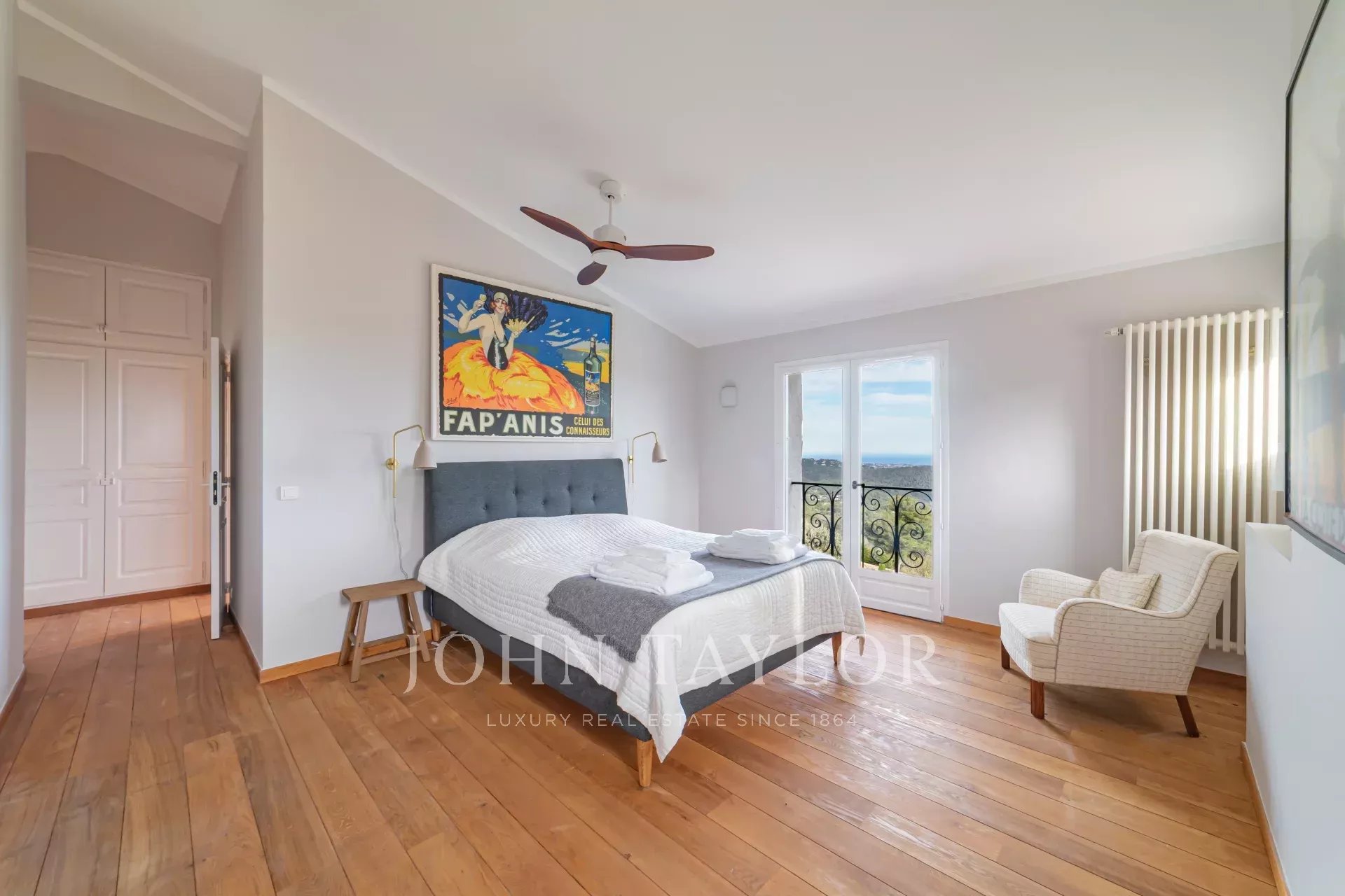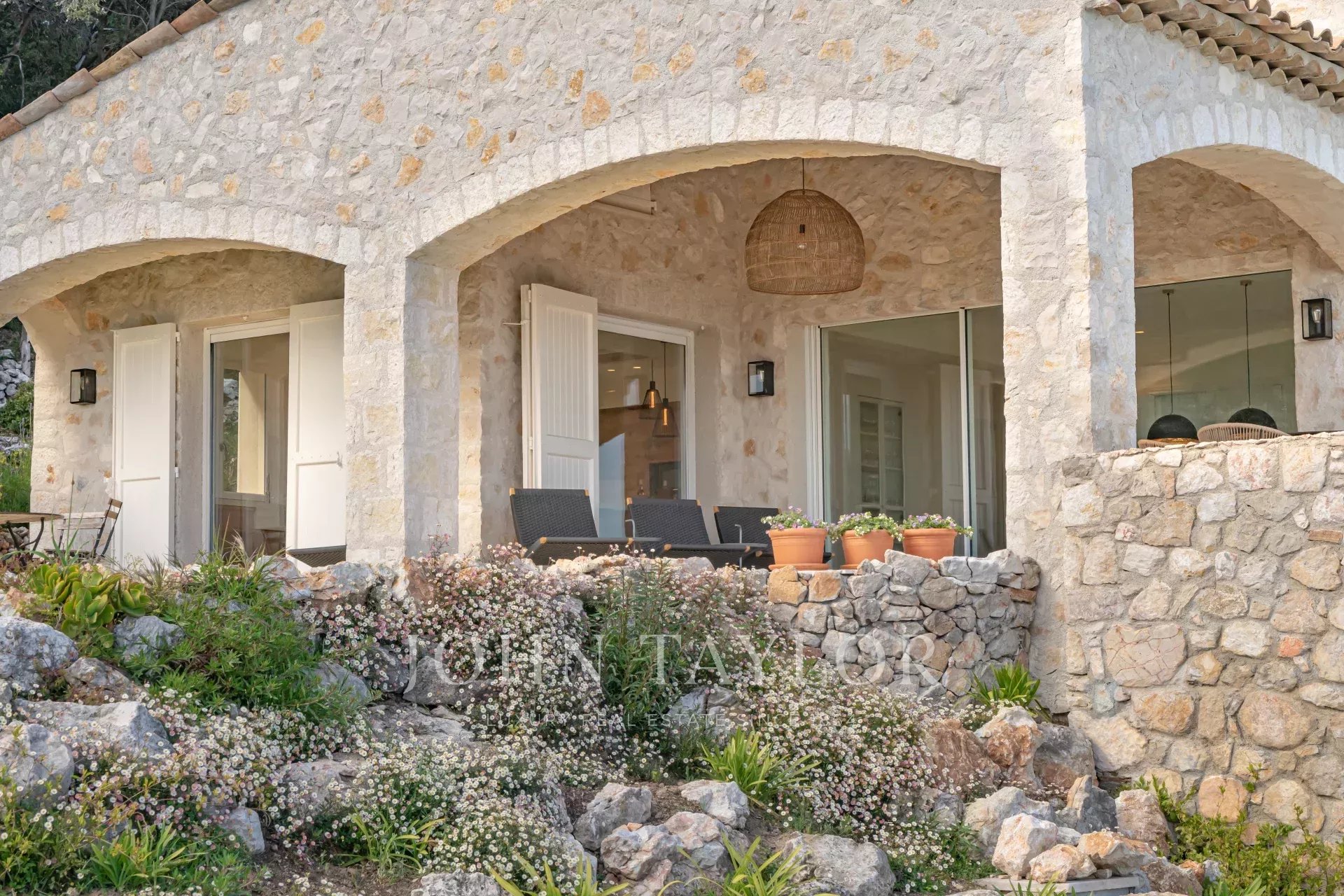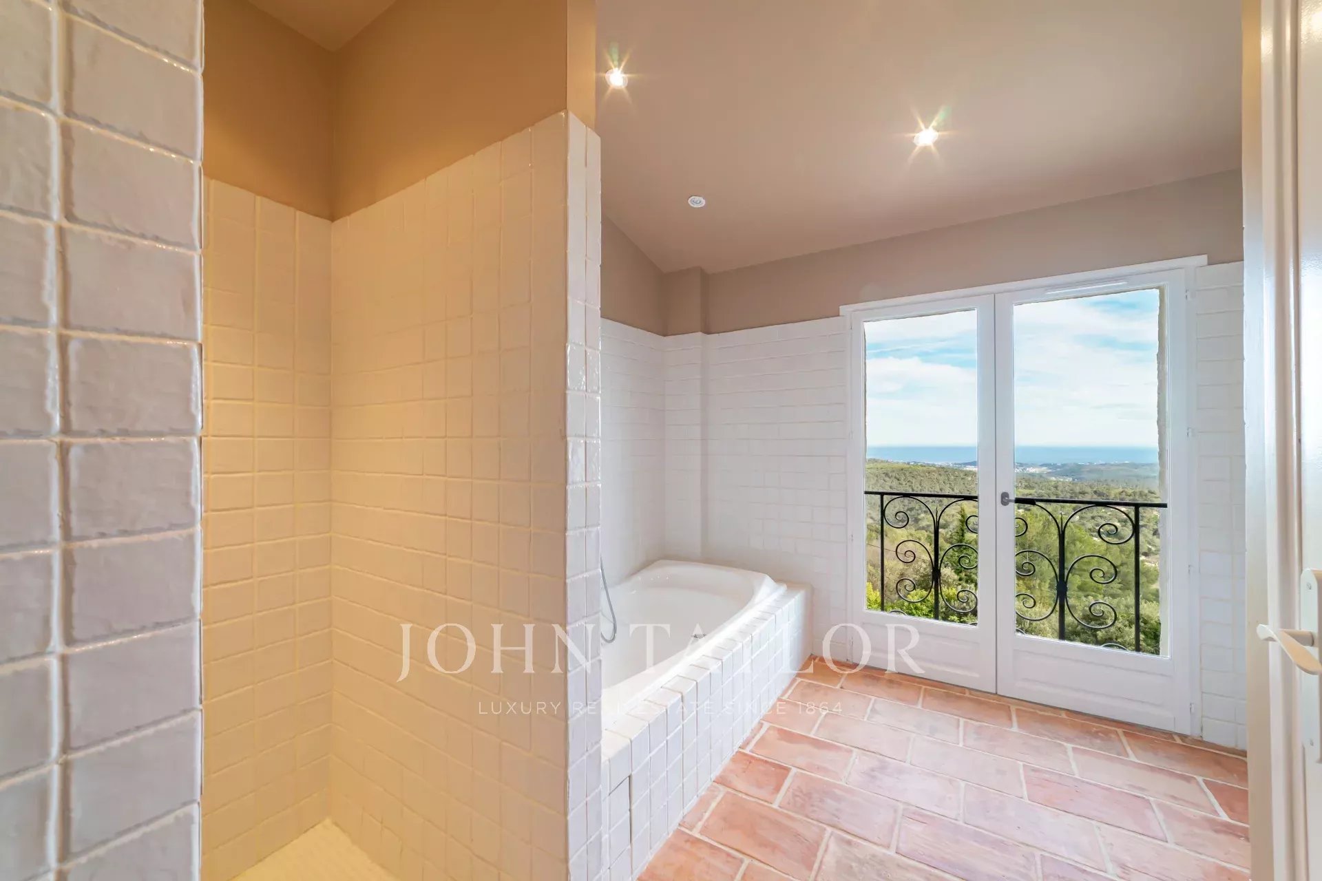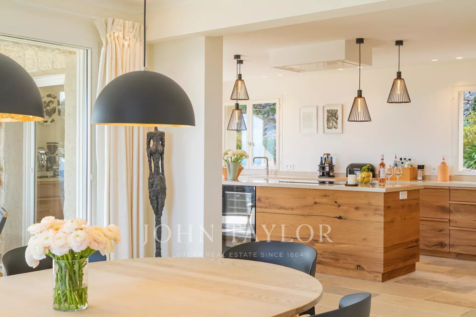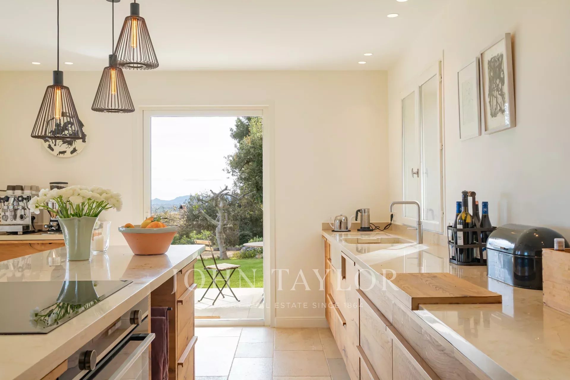 Em Tourrettes sur Loup, com vistas magníficas sobre o mar e a paisagem circundante, uma bela propriedade recentemente construída com 320 m² de área habitacional em 4.000 m² de terreno com piscina infinita.
