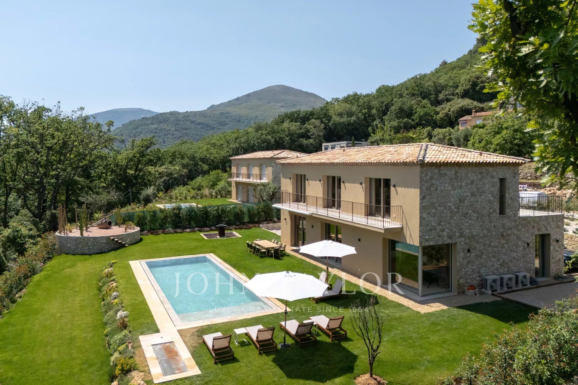 Recentemente renovada, esta propriedade combina design contemporâneo, materiais de qualidade e caraterísticas topo de gama, tudo a poucos minutos do centro de Vence e das suas comodidades.