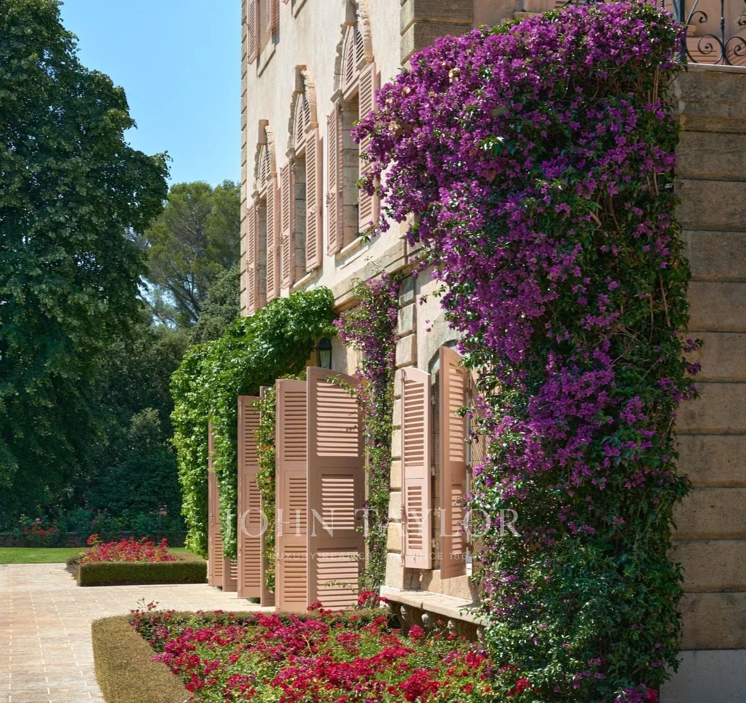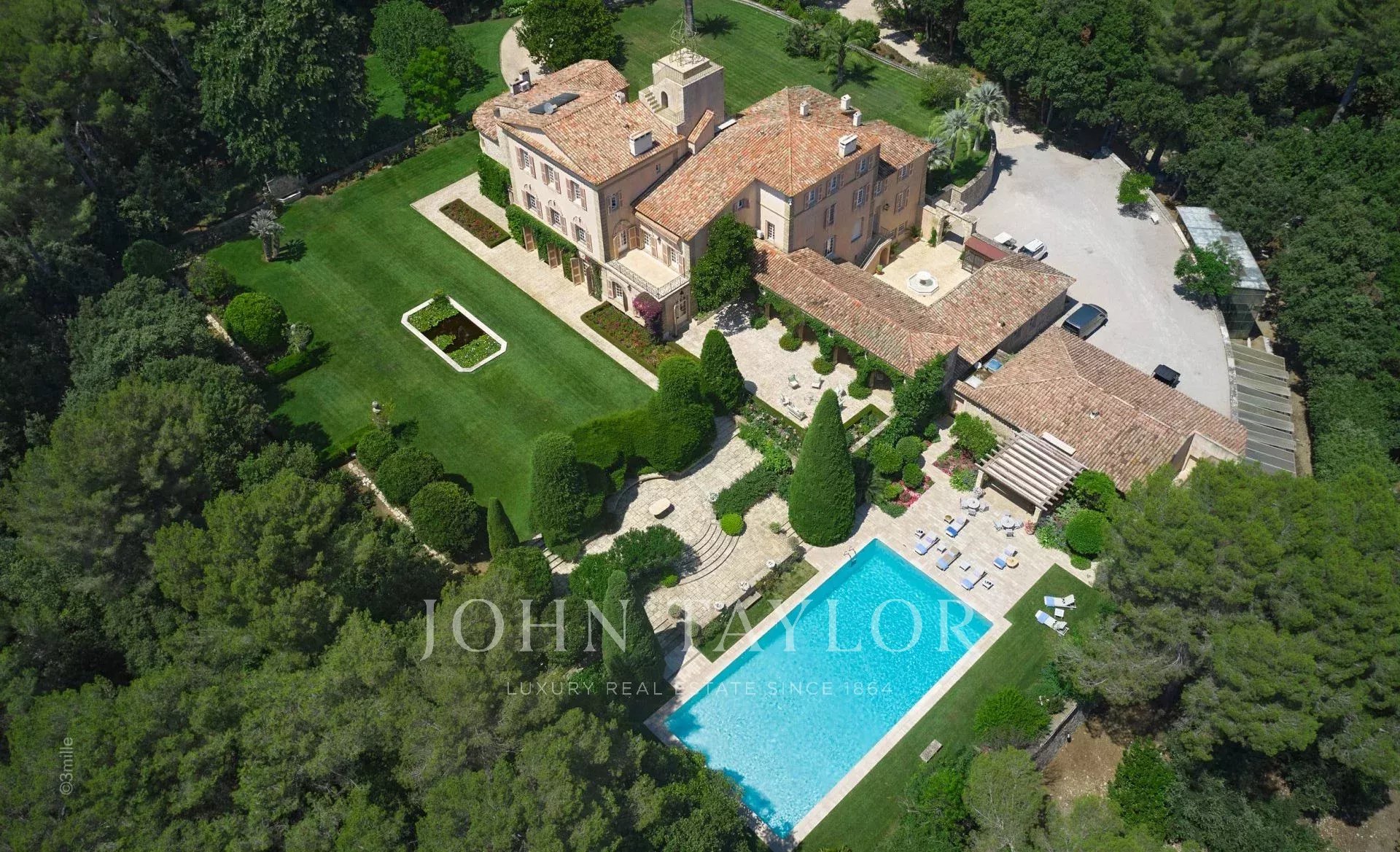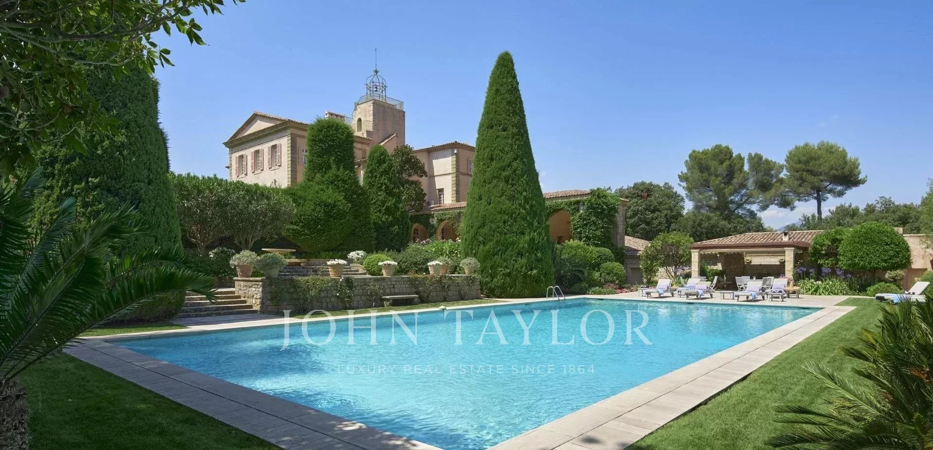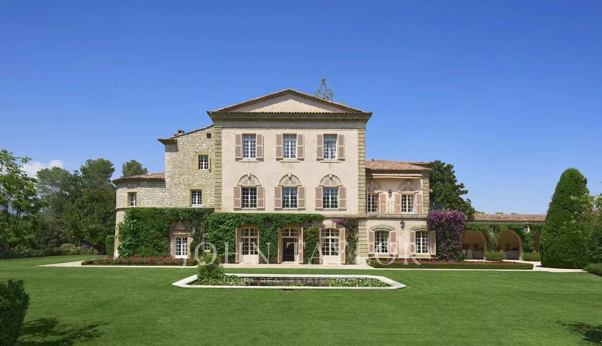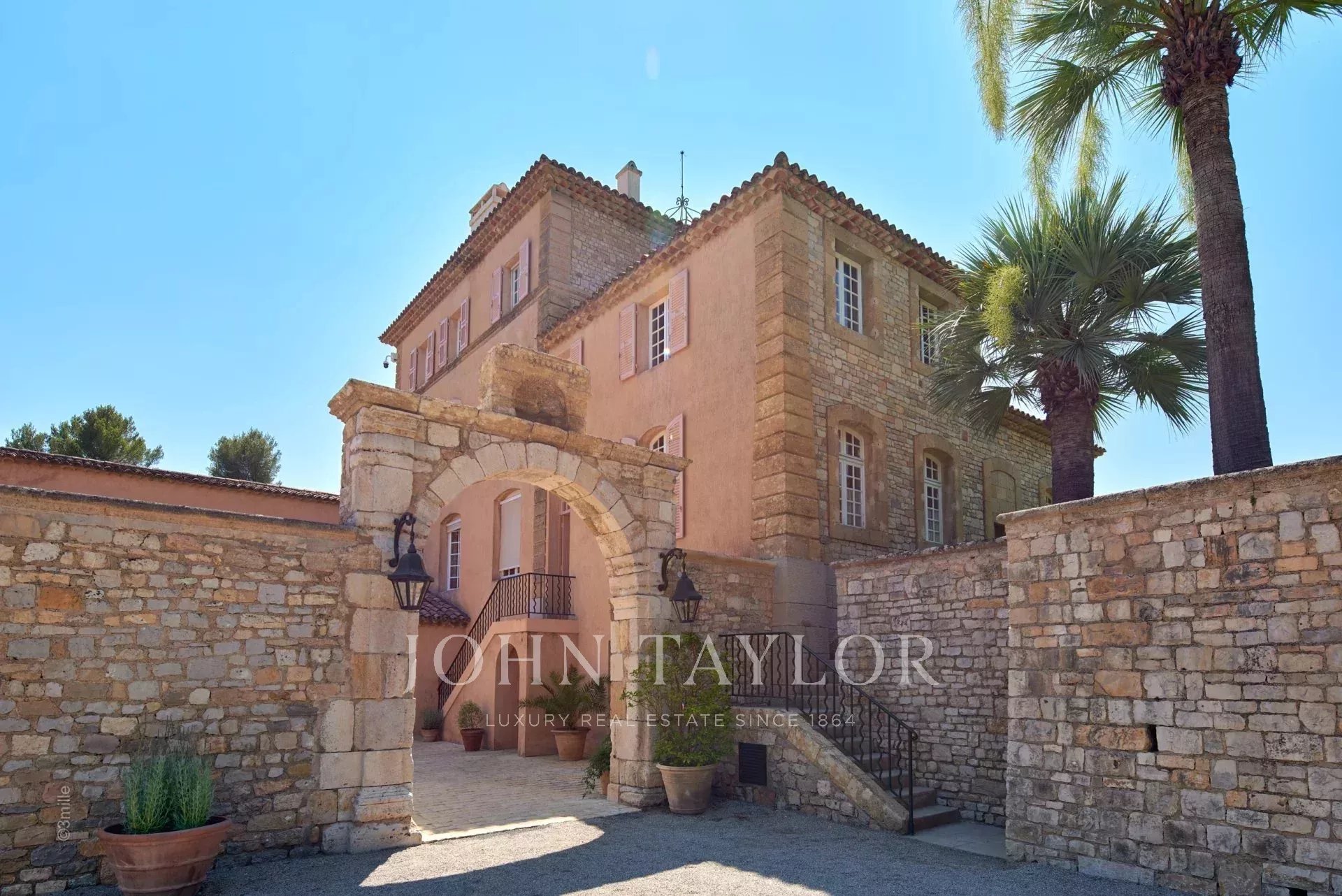 No topo da sua colina privada, com vistas desimpedidas até ao mar, este sumptuoso Château, construído em pedra talhada em 1920, foi palco das férias de verão de JFK em criança, quando o seu pai, Joseph Kennedy, era embaixador britânico em Londres entre 1938 e 1940. Idealmente localizada entre as aldeias de Valbonne e Mougins, a 20 minutos de Cannes e das suas praias. A propriedade beneficia de cerca de dezoito hectares de parque.