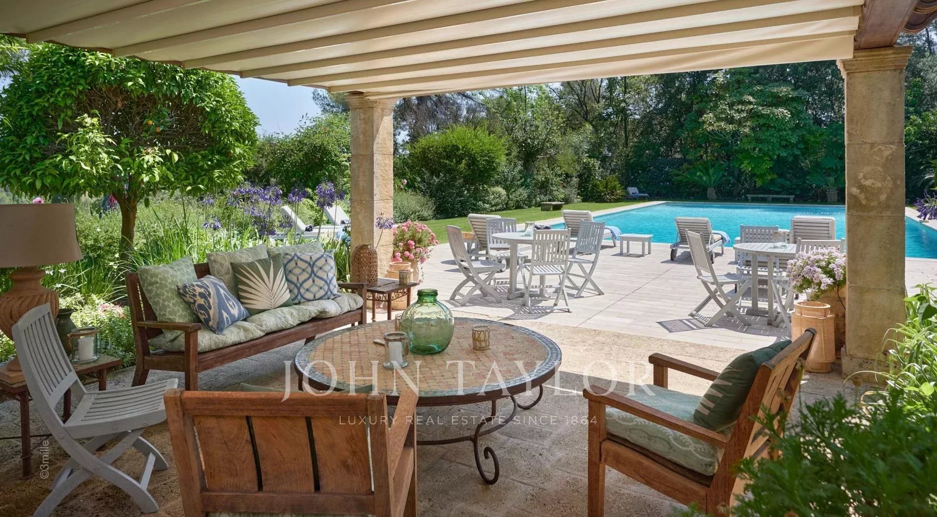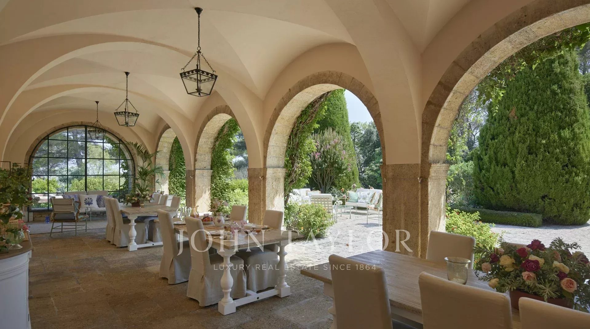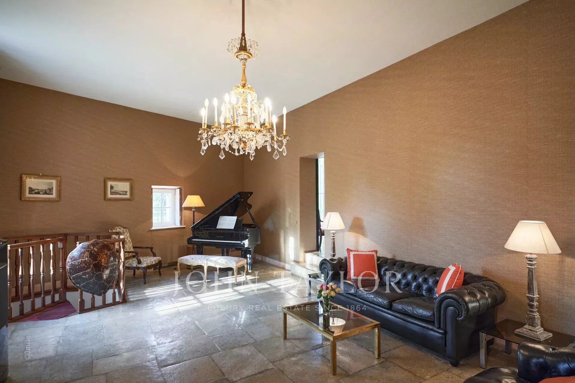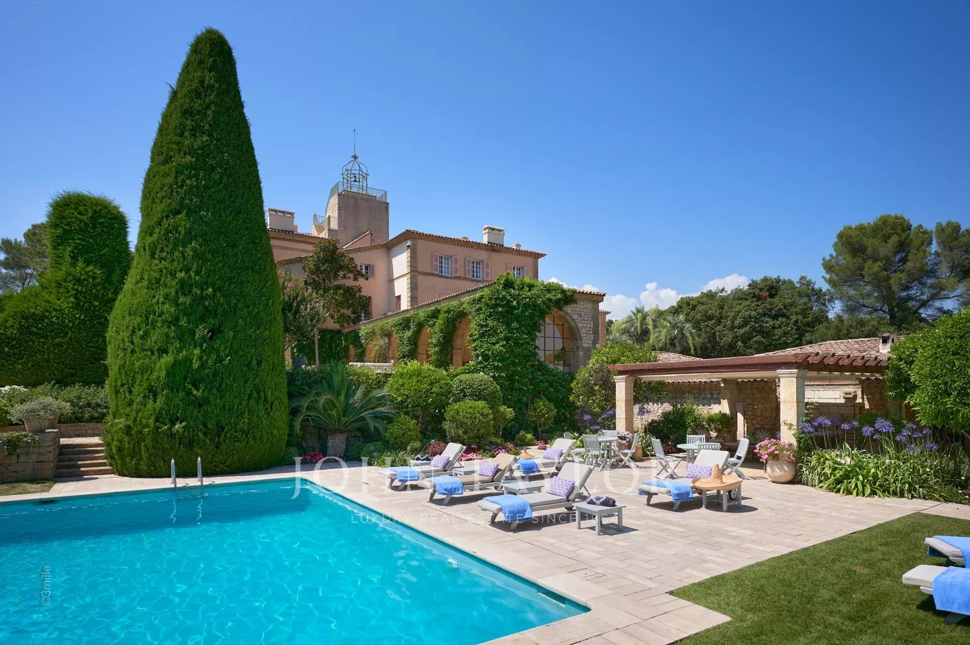 No topo da sua colina privada, com vistas desimpedidas até ao mar, este sumptuoso Château, construído em pedra talhada em 1920, foi palco das férias de verão de JFK em criança, quando o seu pai, Joseph Kennedy, era embaixador britânico em Londres entre 1938 e 1940. Idealmente localizada entre as aldeias de Valbonne e Mougins, a 20 minutos de Cannes e das suas praias. A propriedade beneficia de cerca de dezoito hectares de parque.