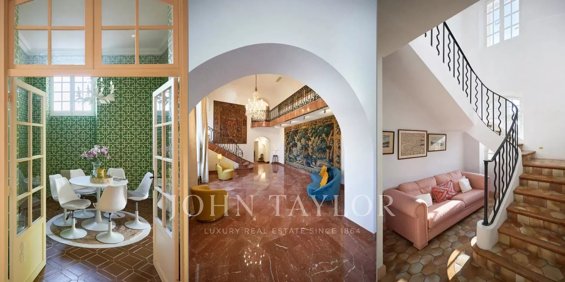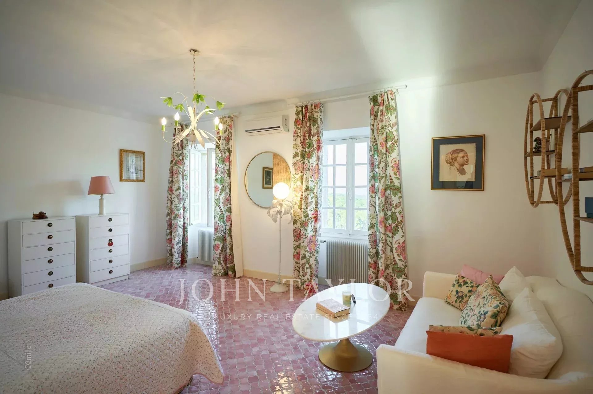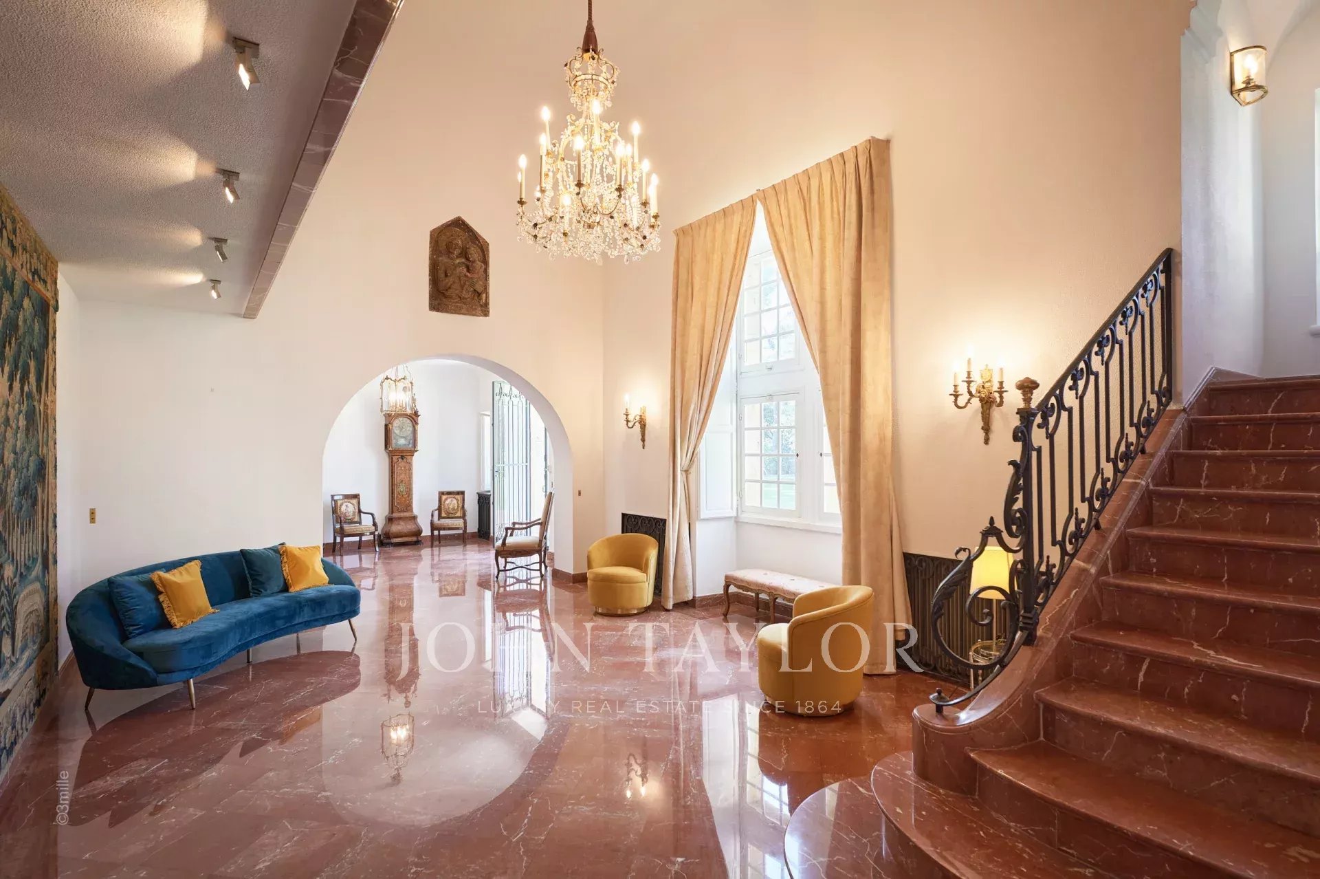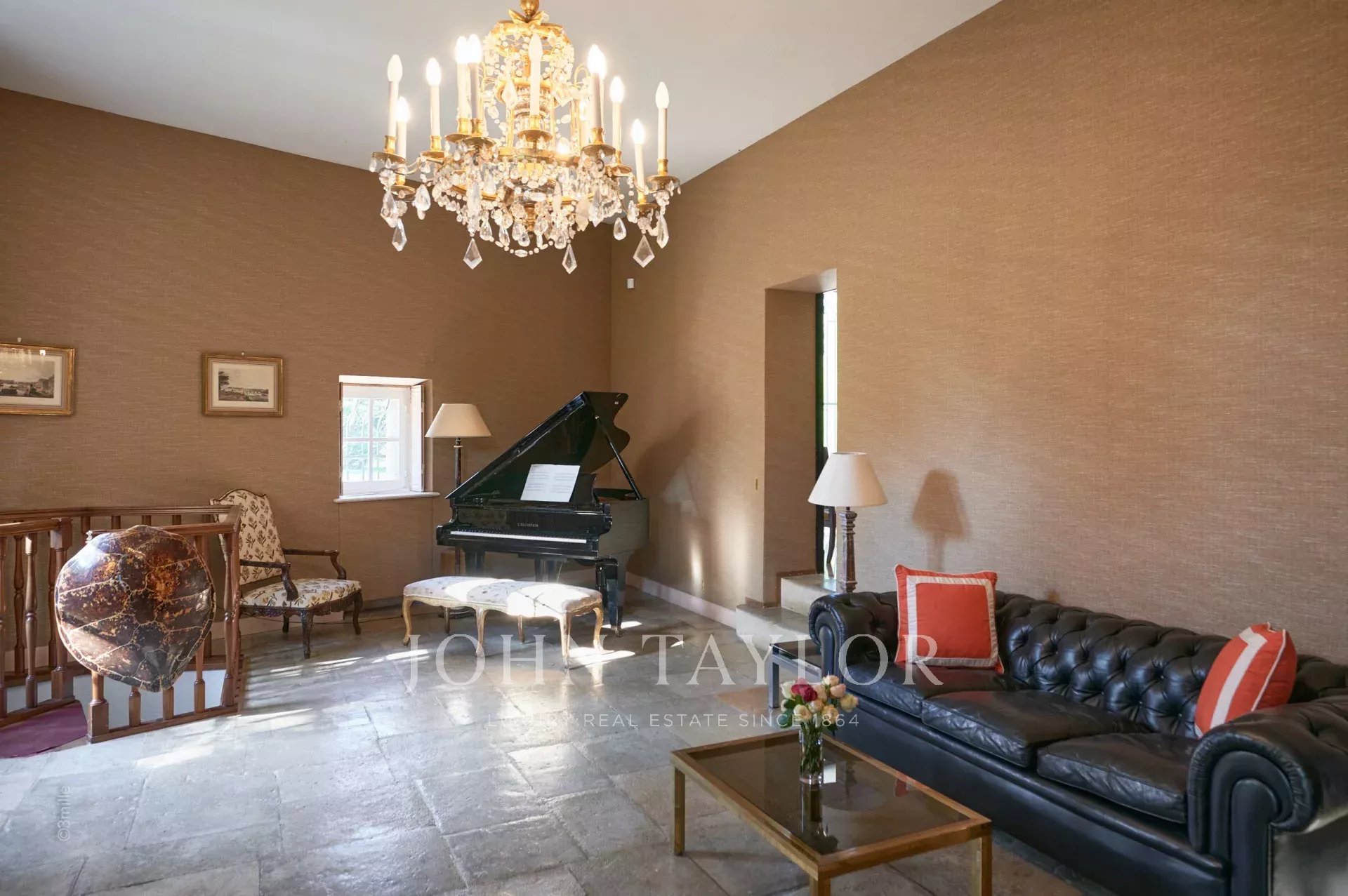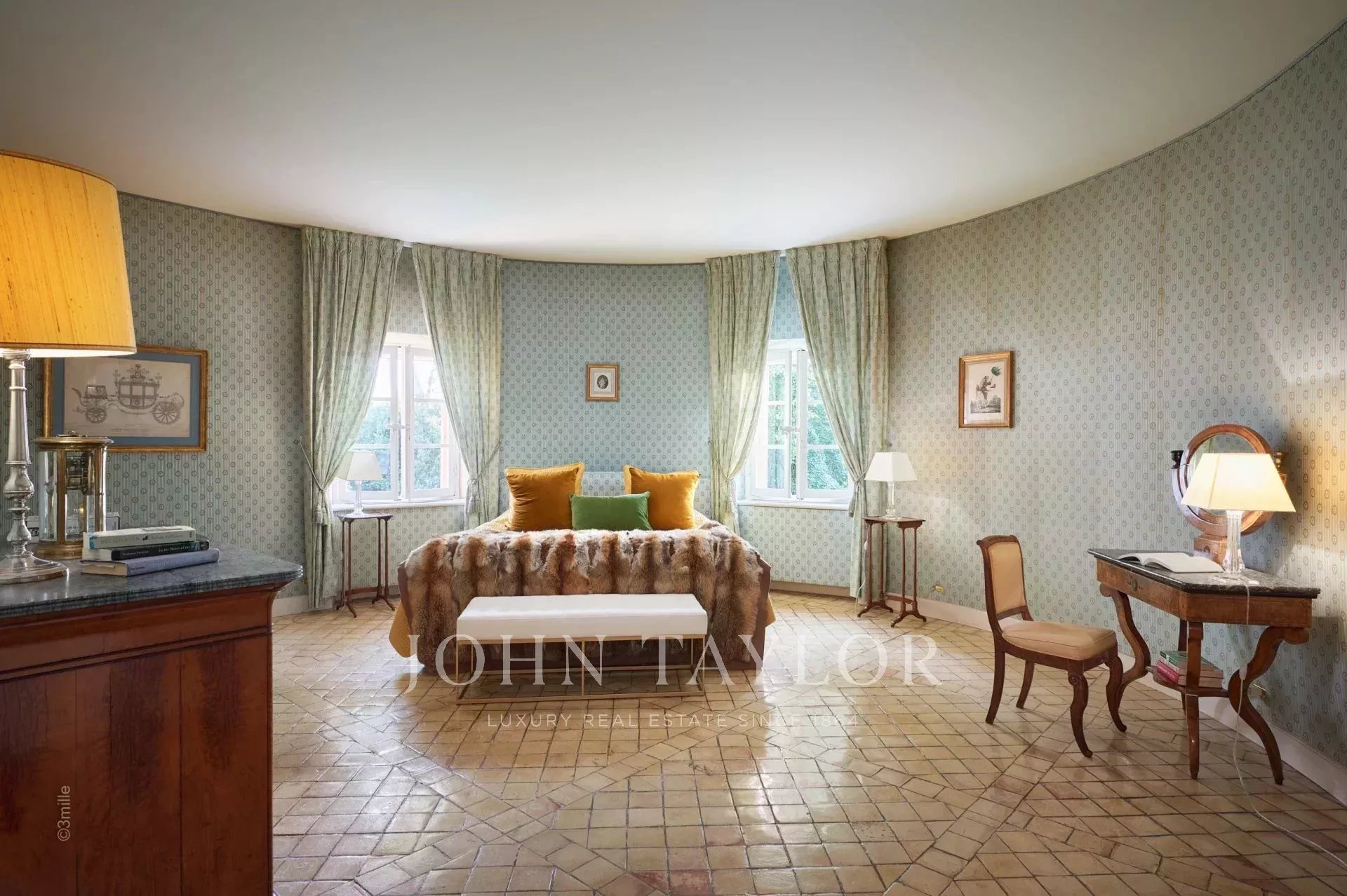 No topo da sua colina privada, com vistas desimpedidas até ao mar, este sumptuoso Château, construído em pedra talhada em 1920, foi palco das férias de verão de JFK em criança, quando o seu pai, Joseph Kennedy, era embaixador britânico em Londres entre 1938 e 1940. Idealmente localizada entre as aldeias de Valbonne e Mougins, a 20 minutos de Cannes e das suas praias. A propriedade beneficia de cerca de dezoito hectares de parque.