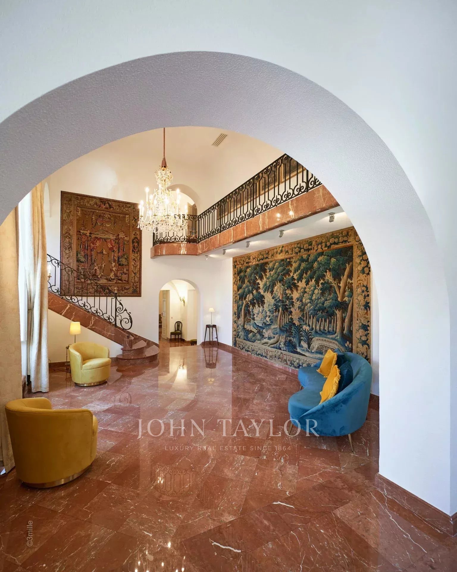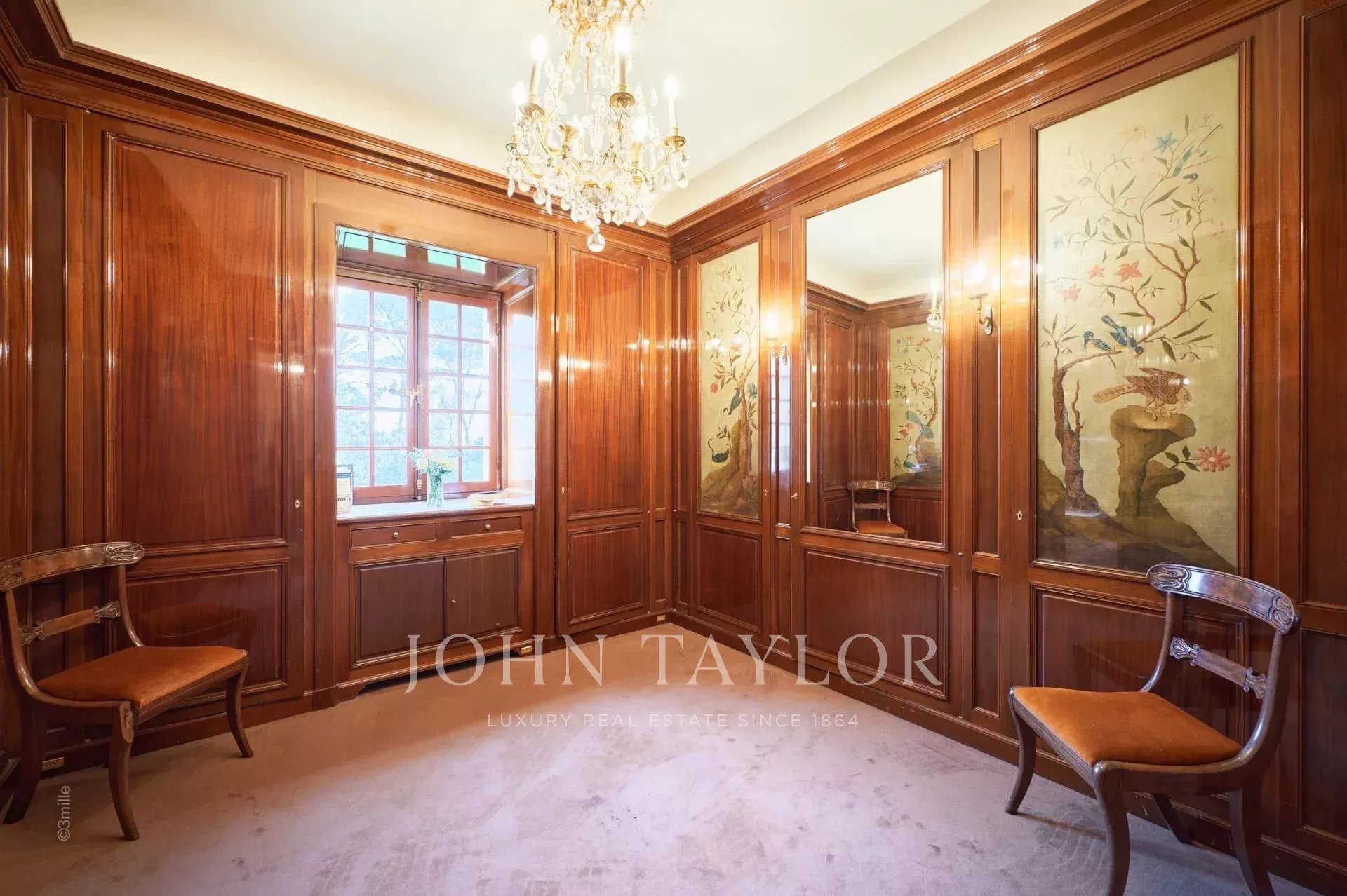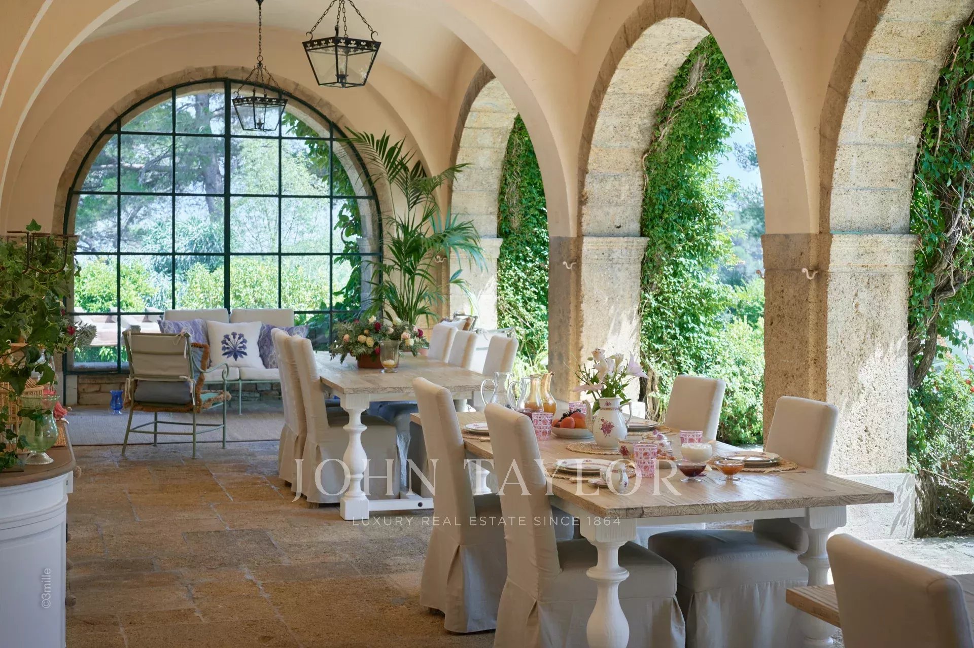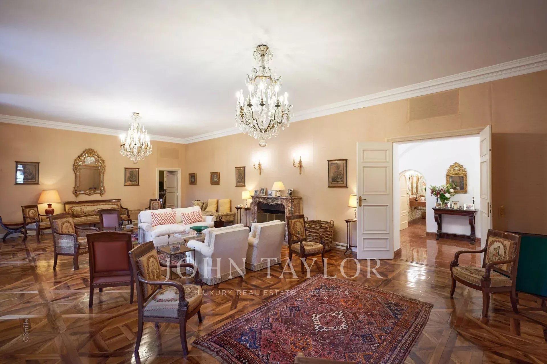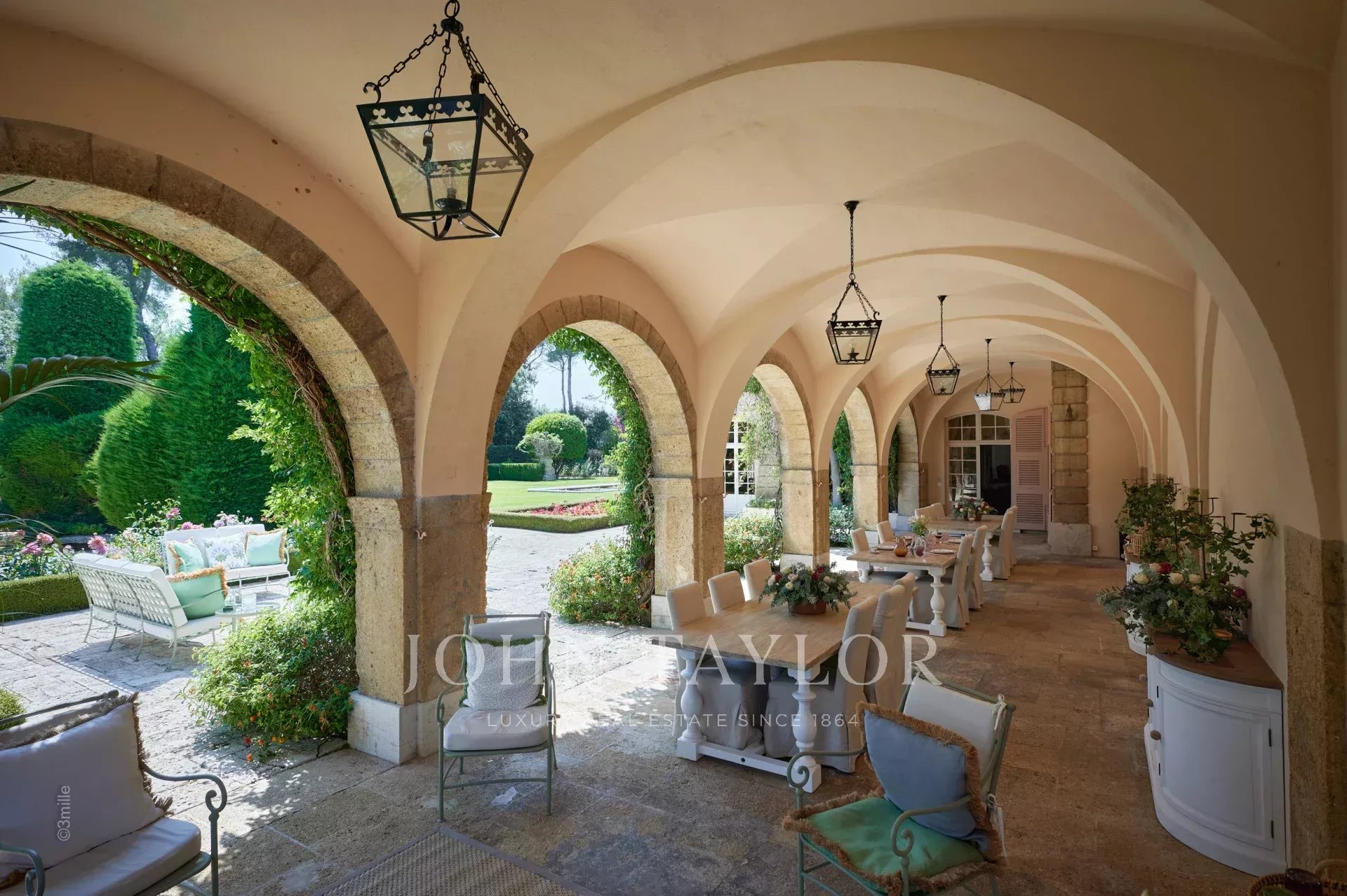 No topo da sua colina privada, com vistas desimpedidas até ao mar, este sumptuoso Château, construído em pedra talhada em 1920, foi palco das férias de verão de JFK em criança, quando o seu pai, Joseph Kennedy, era embaixador britânico em Londres entre 1938 e 1940. Idealmente localizada entre as aldeias de Valbonne e Mougins, a 20 minutos de Cannes e das suas praias. A propriedade beneficia de cerca de dezoito hectares de parque.