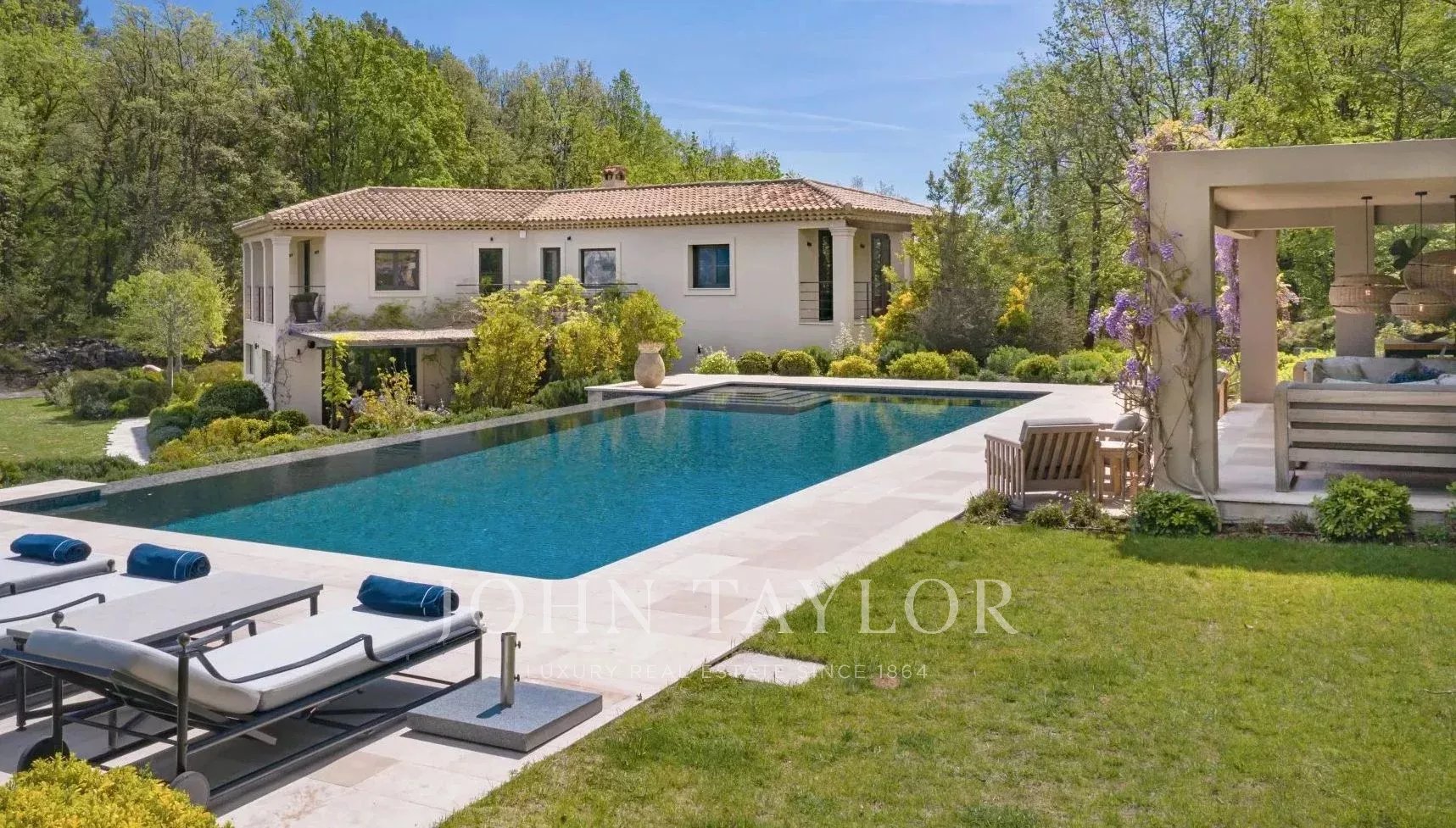 A propriedade está rodeada por 16 000 m² de belos jardins paisagísticos, embelezados por uma espetacular piscina infinita de 15 metros e uma acolhedora casa da piscina onde pode relaxar e apreciar a vista.
