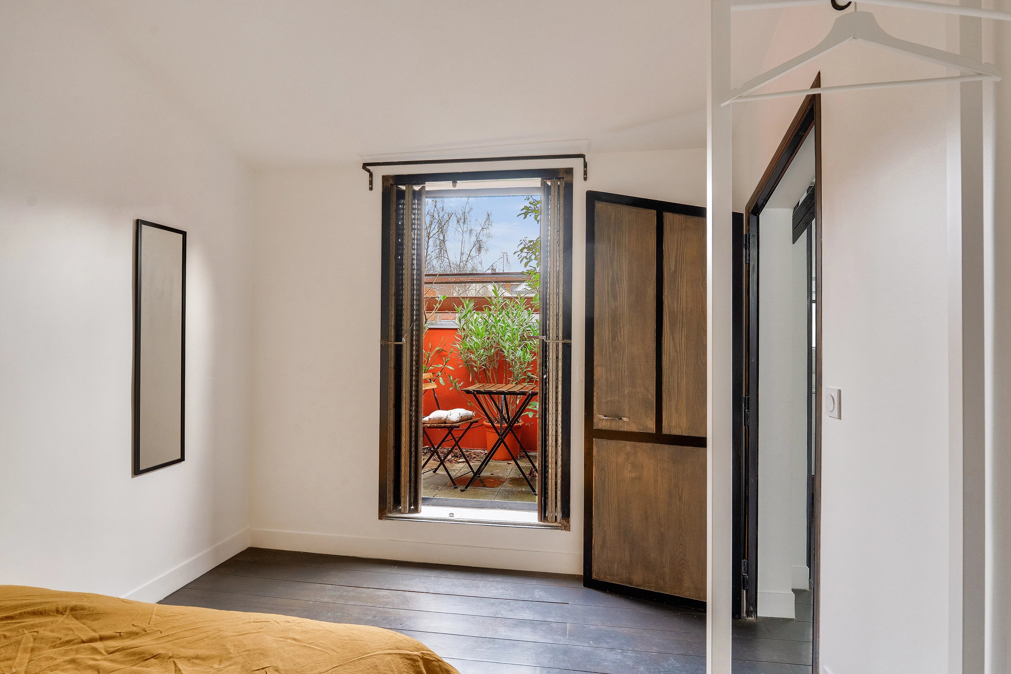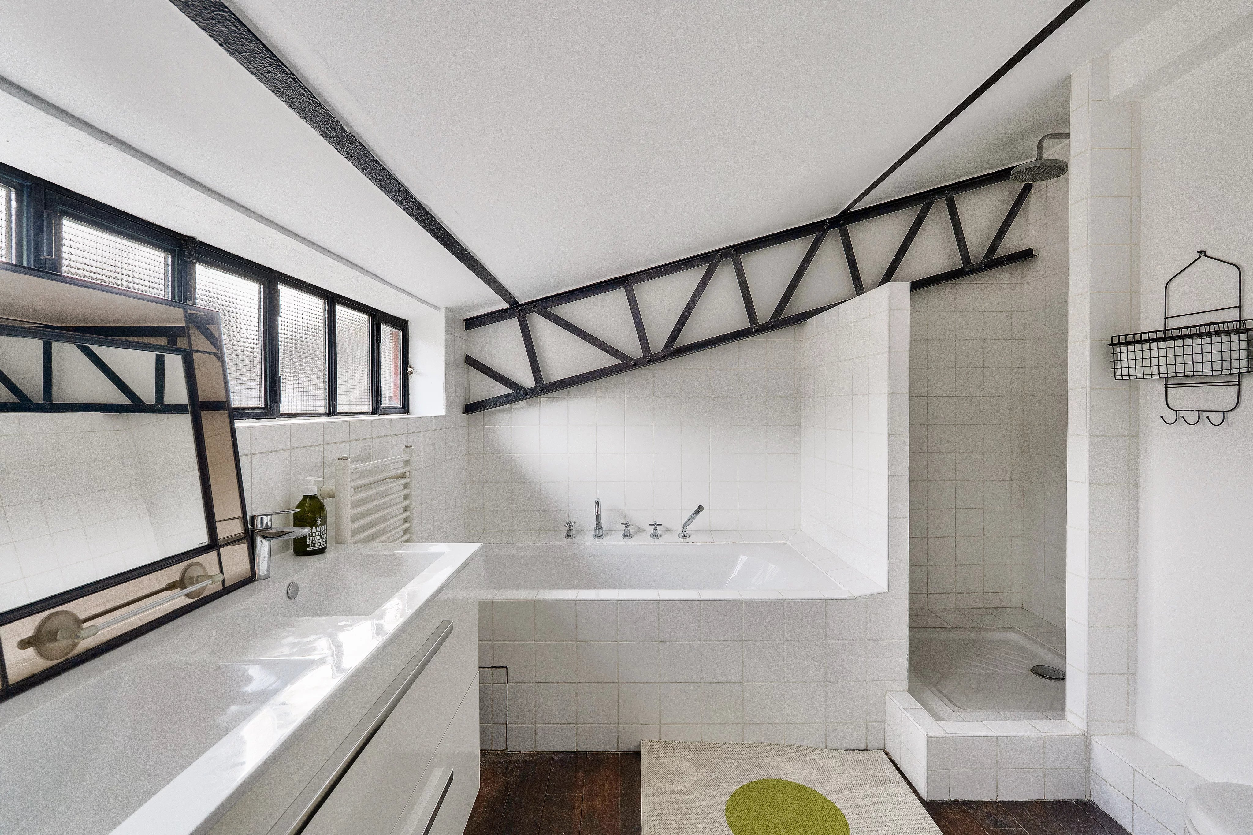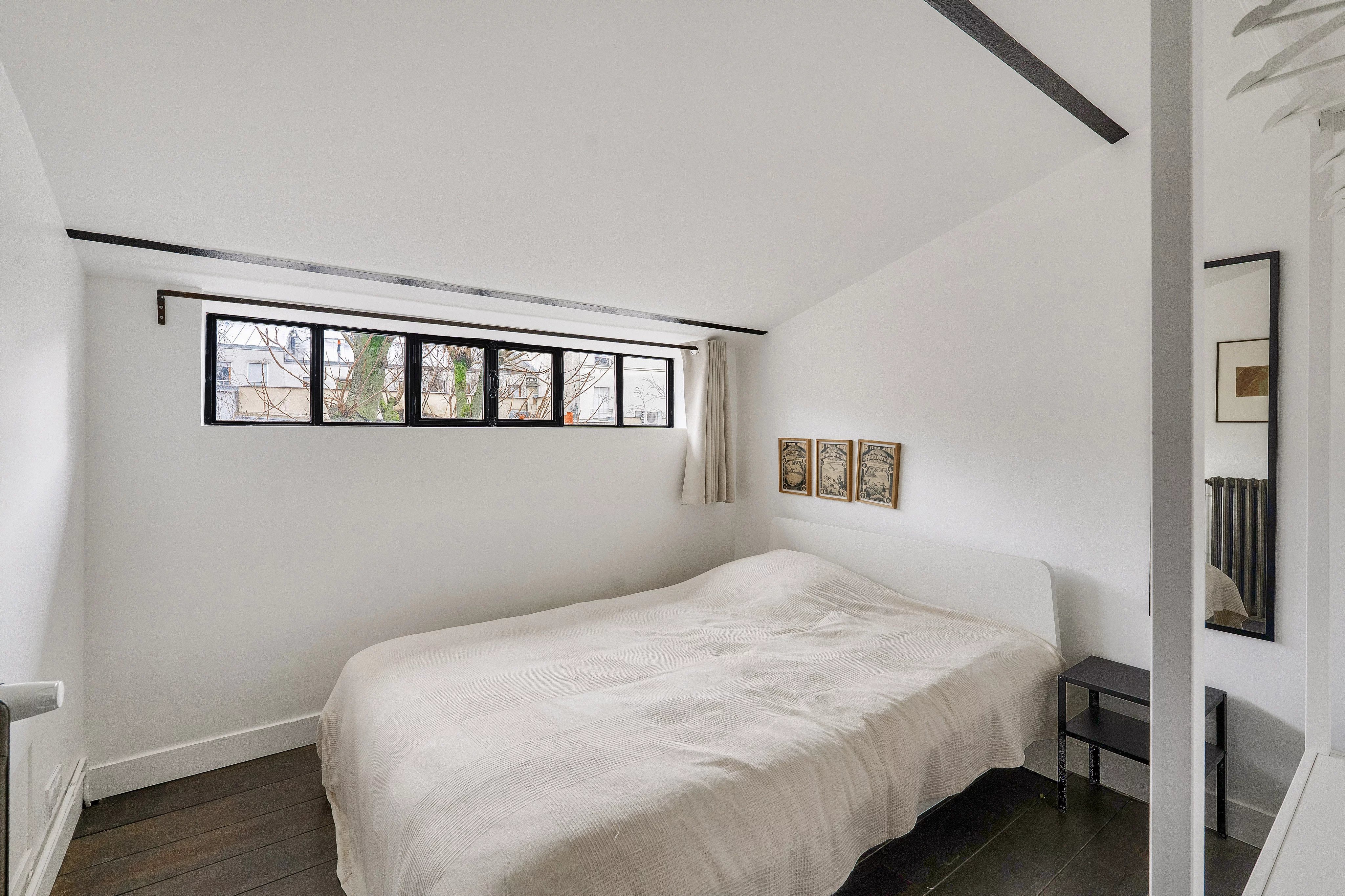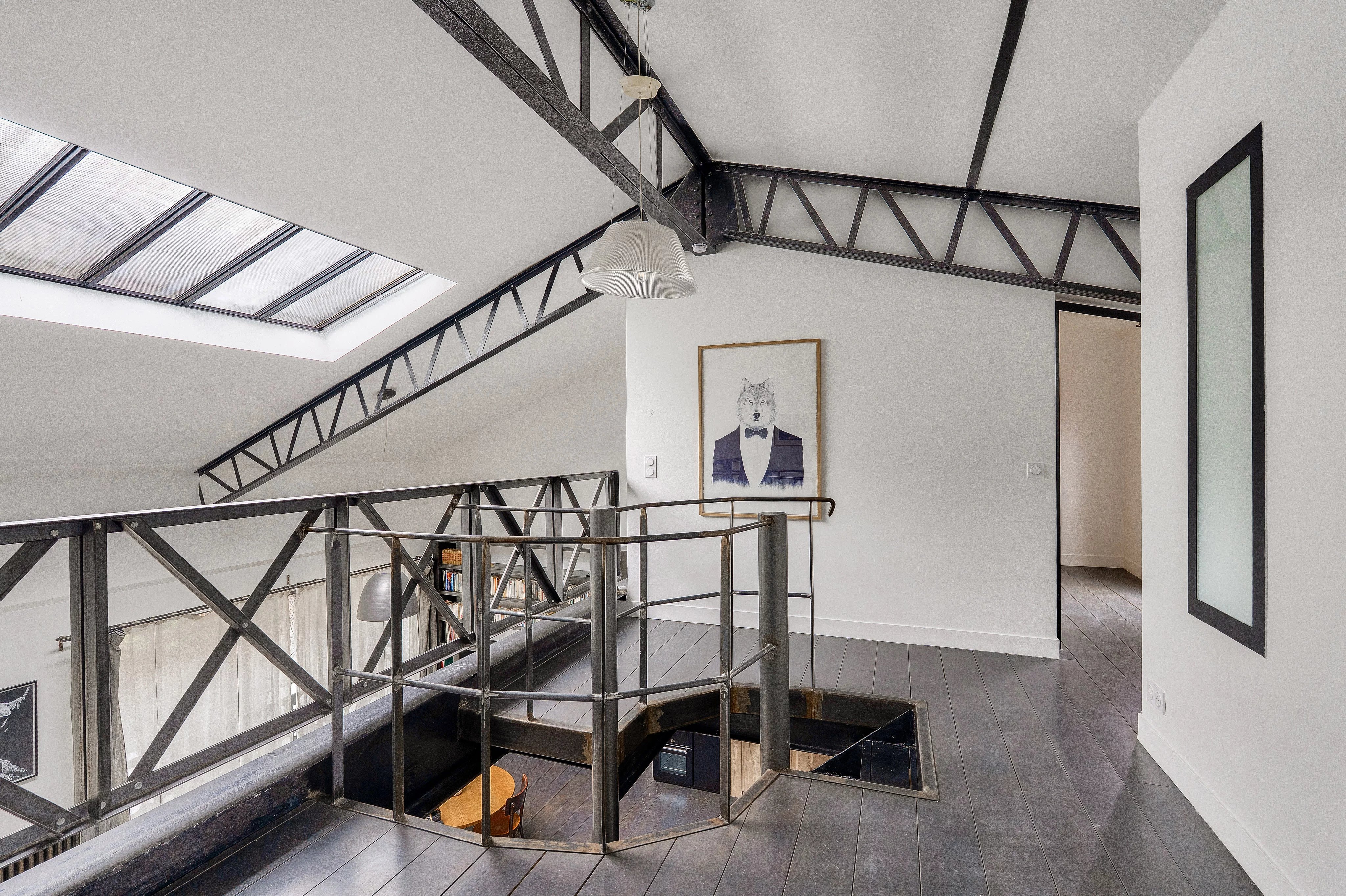 Paris 20º. Num condomínio pequeno e íntimo, um antigo cinema convertido em apartamento loft, apartamento duplex situado no 2ᵉ e último andar, com uma superfície de 133,23 m² Lei Carrez, composto por: