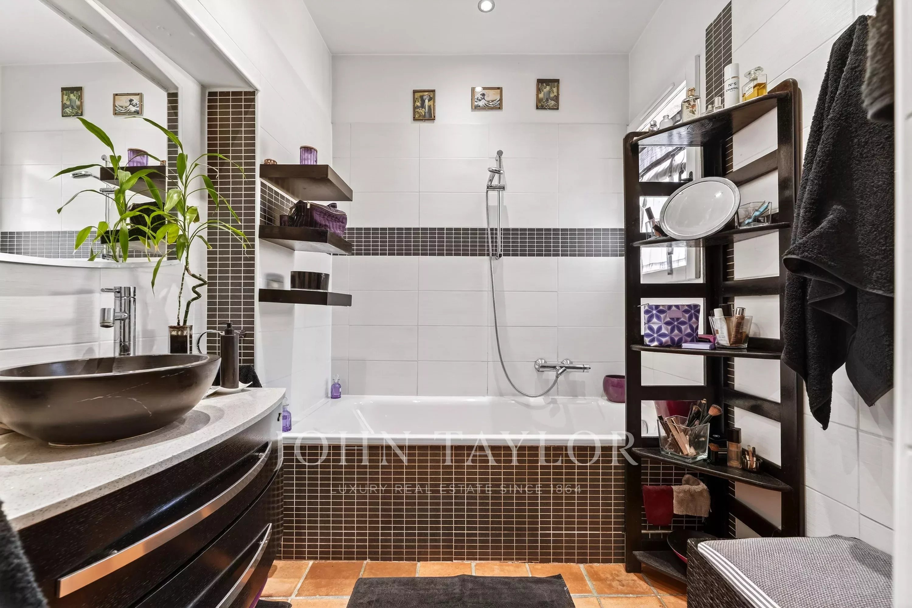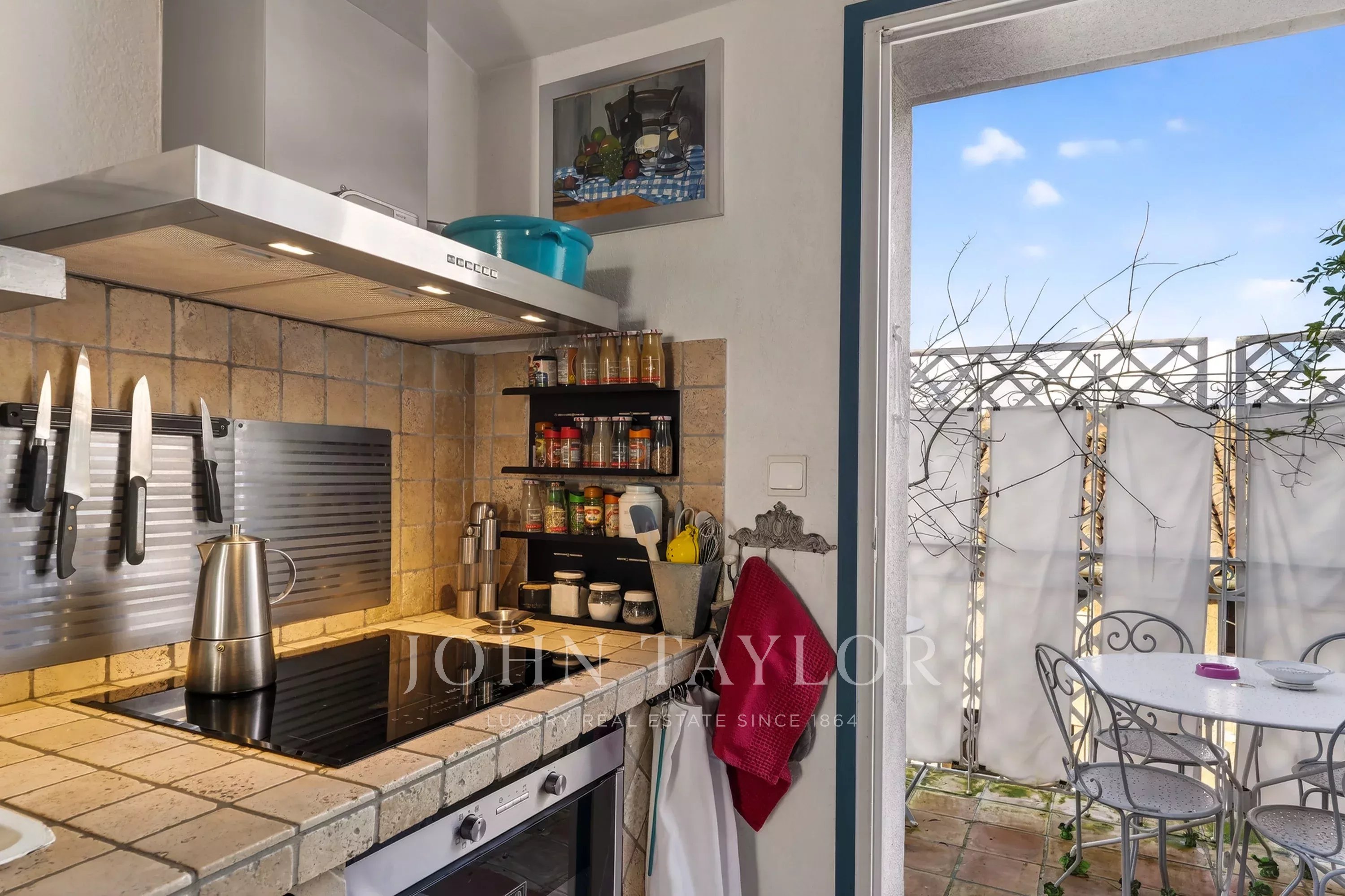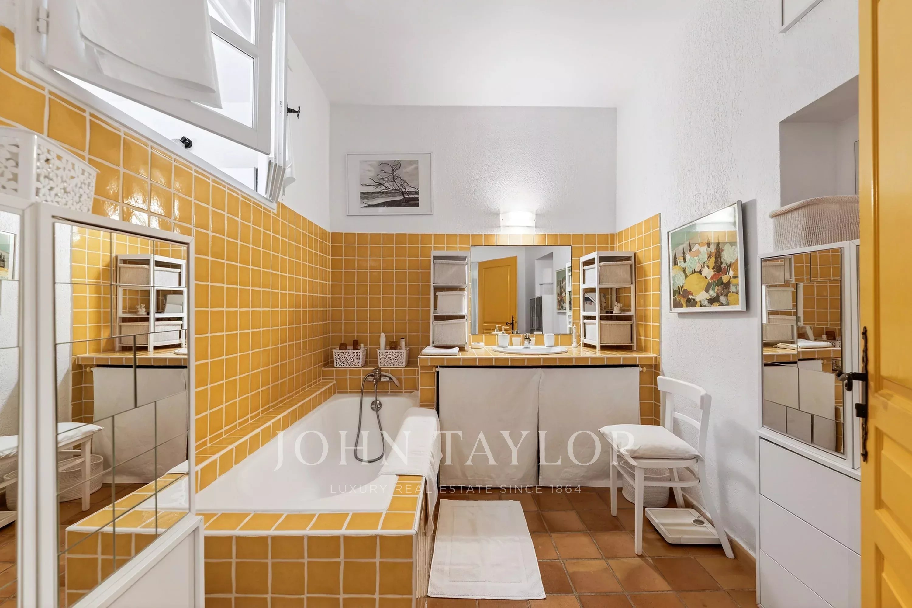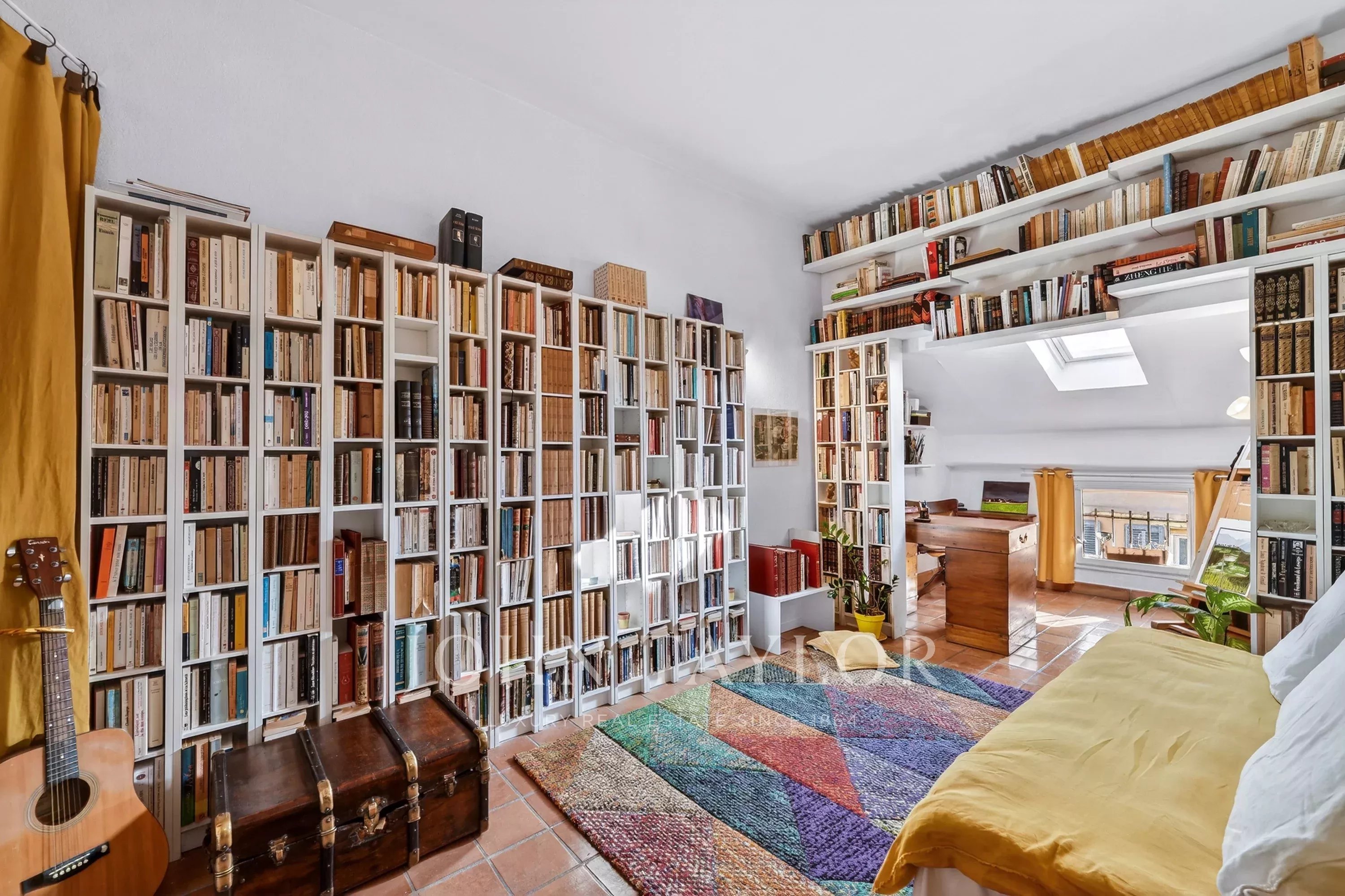 No piso superior, as áreas de receção excecionalmente iluminadas incluem uma sala de jantar virada a sul que se abre para uma varanda com vistas ininterruptas sobre os telhados de Aix, uma cozinha equipada que se estende para um terraço interior, bem como uma área de estudo e um espaço de armazenamento funcional.