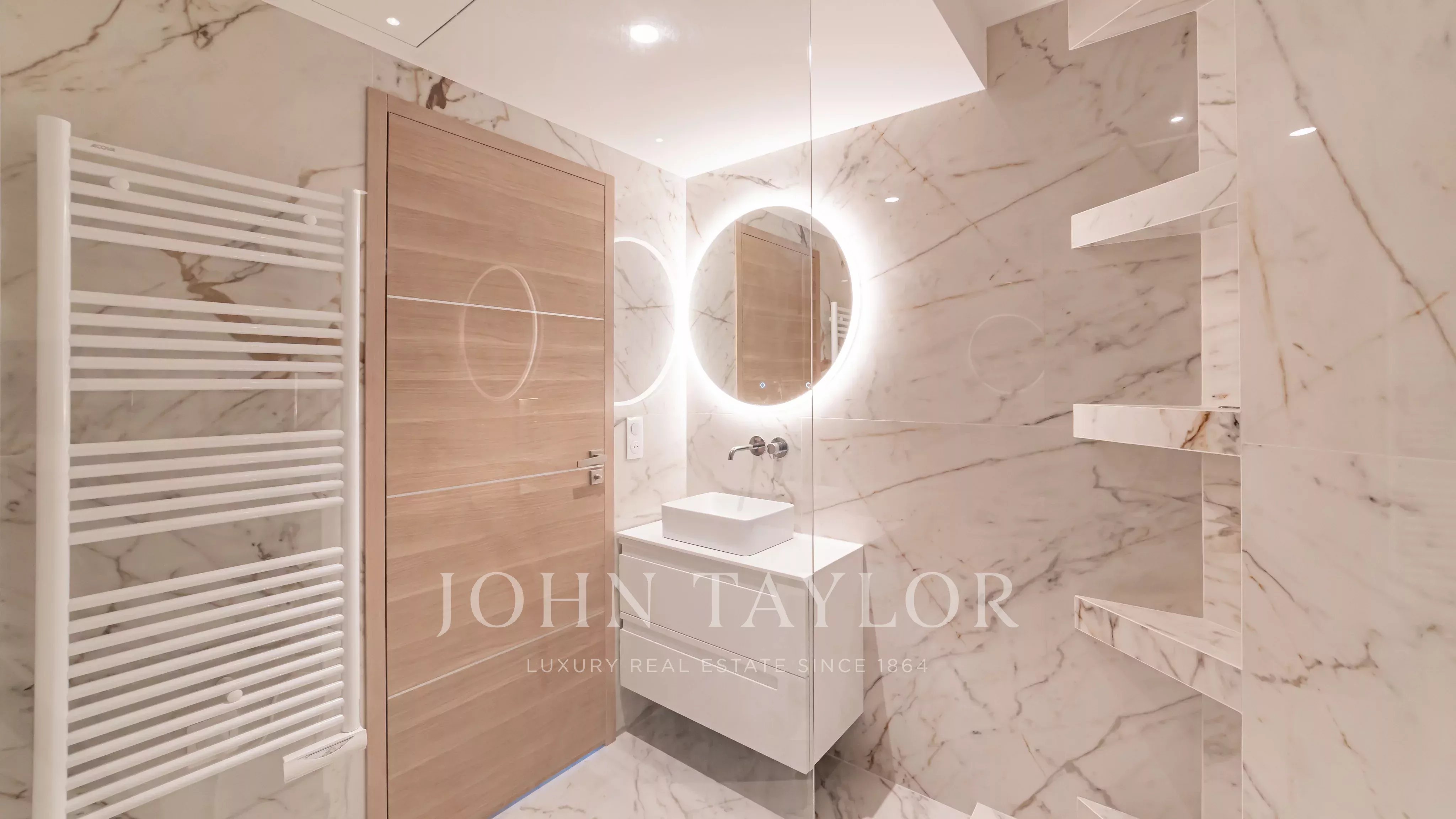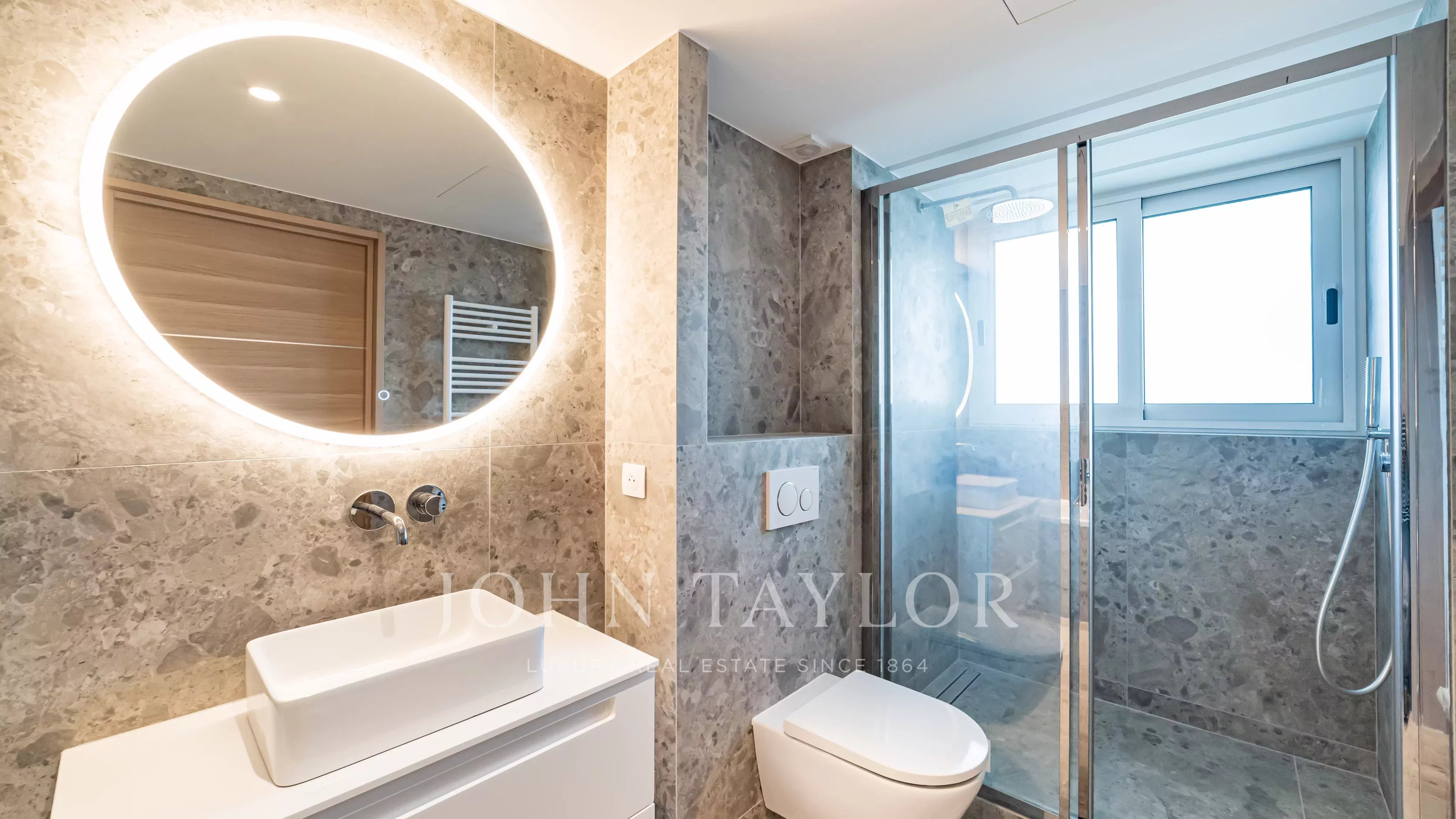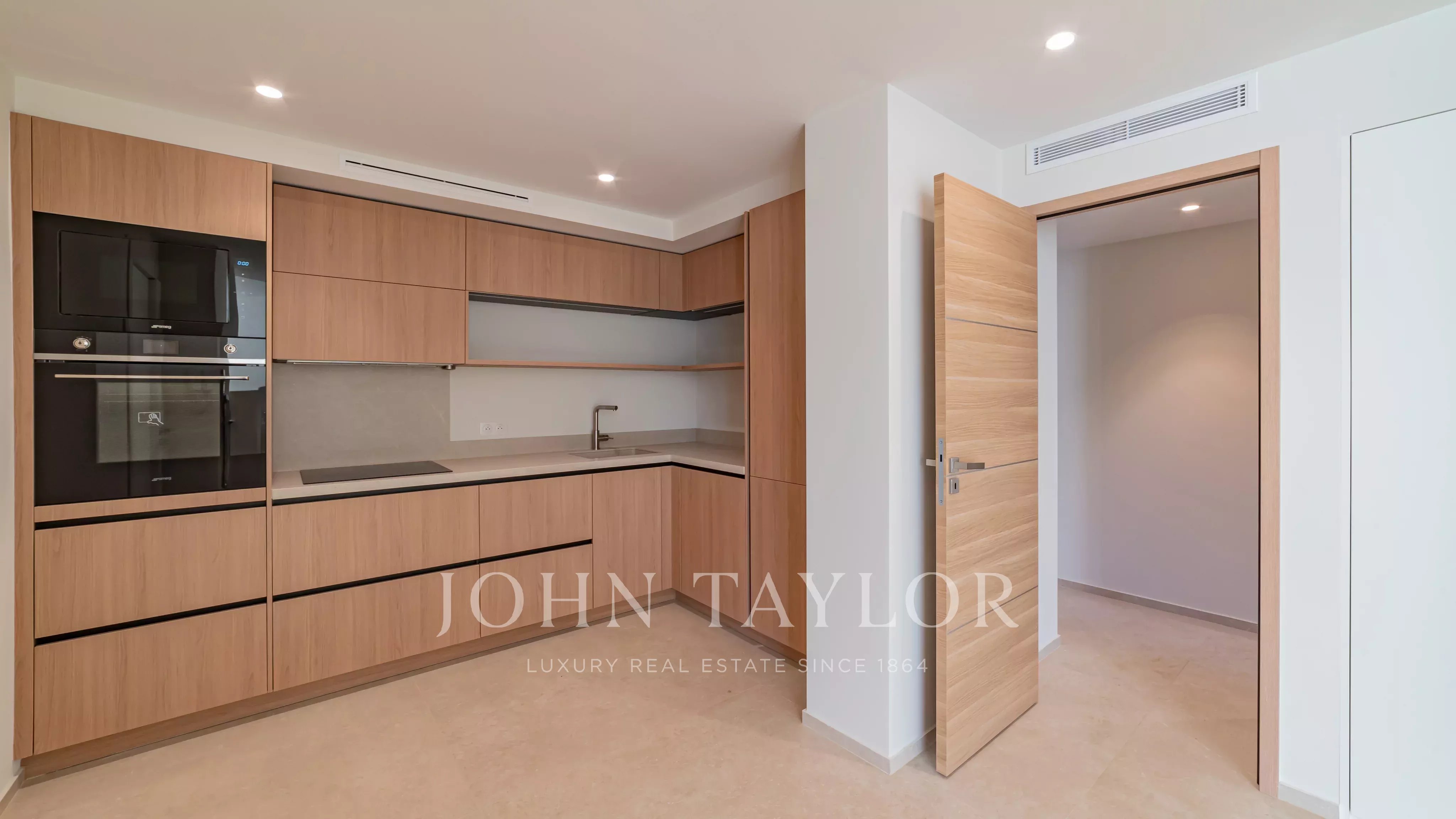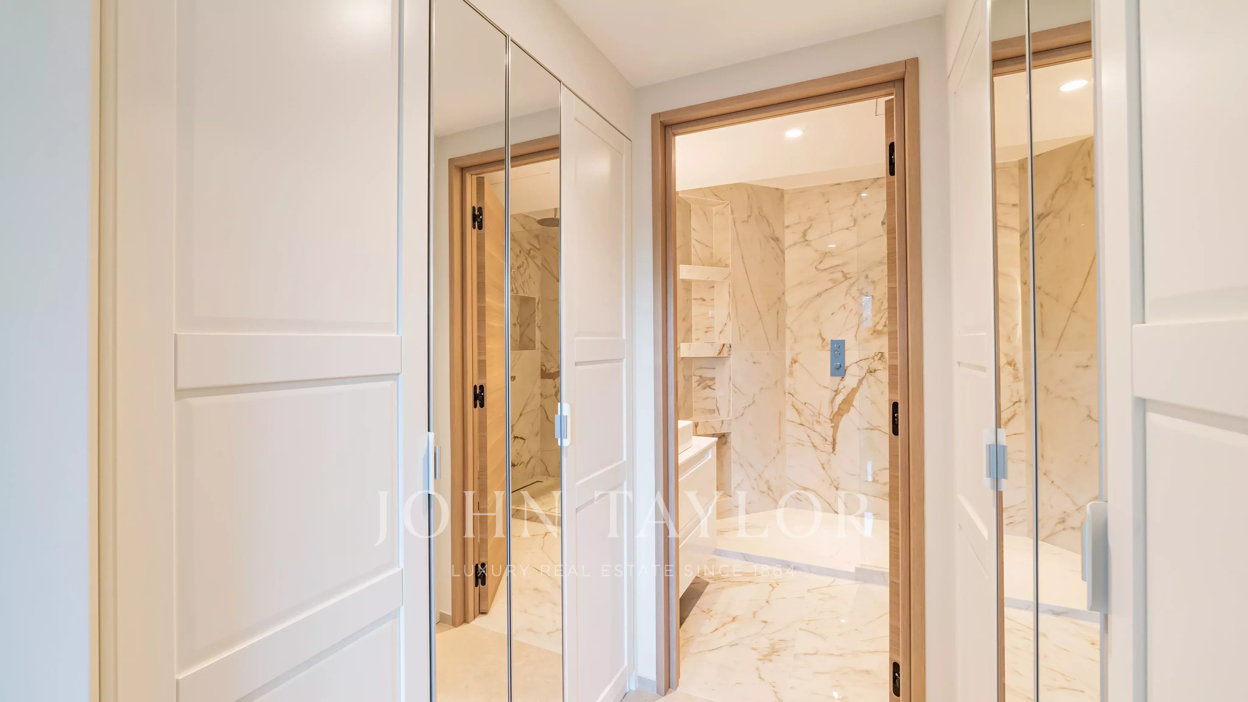 É composto por um hall de entrada, uma sala de estar com área de refeições que se abre para um terraço de 11,85 m², uma cozinha totalmente equipada e dois quartos, cada um com a sua própria casa de banho e quarto de vestir.
