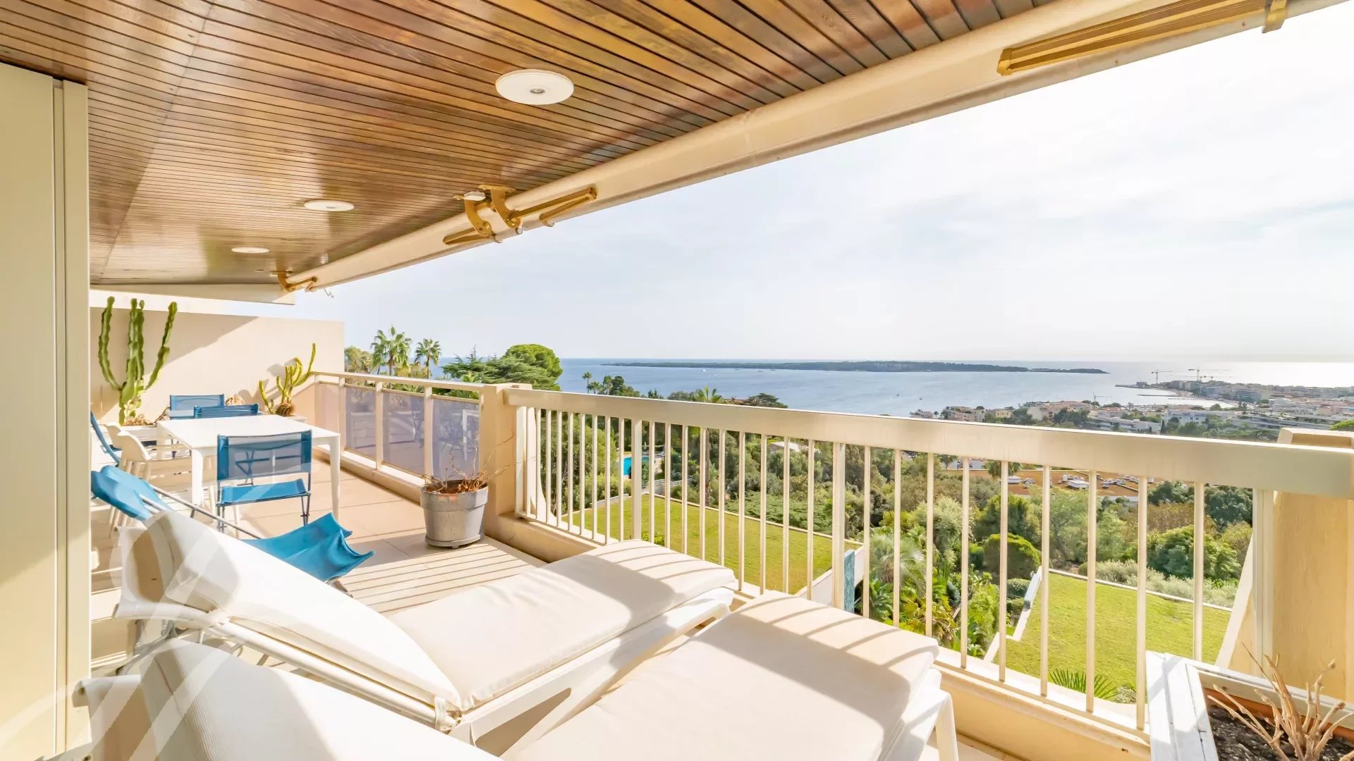 Situado numa residência de luxo no prestigiado bairro de Californie, este apartamento oferece vistas excepcionais para o mar, para as Ilhas Lérins e para a Baía de Cannes.