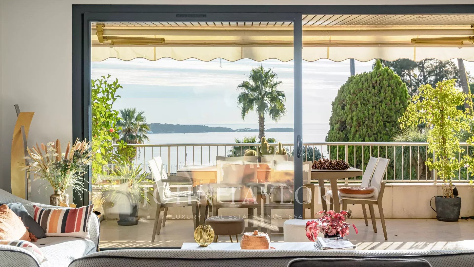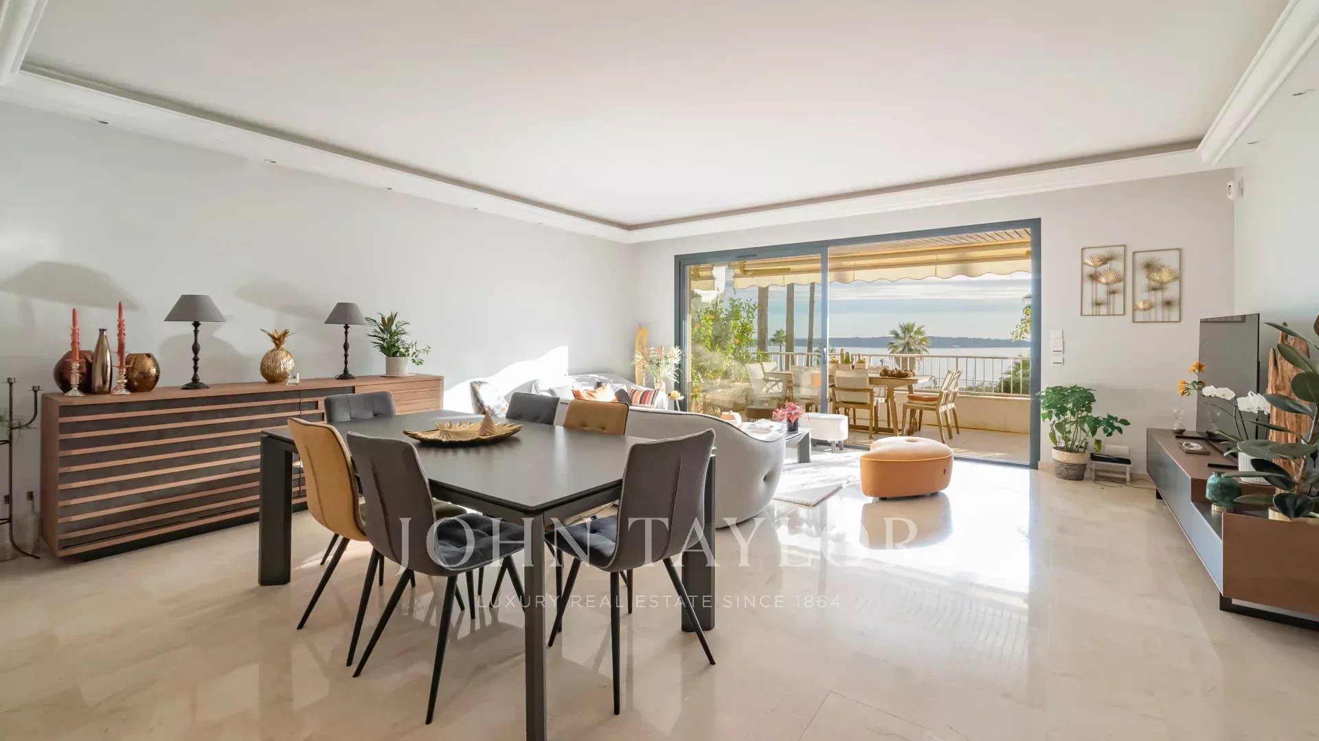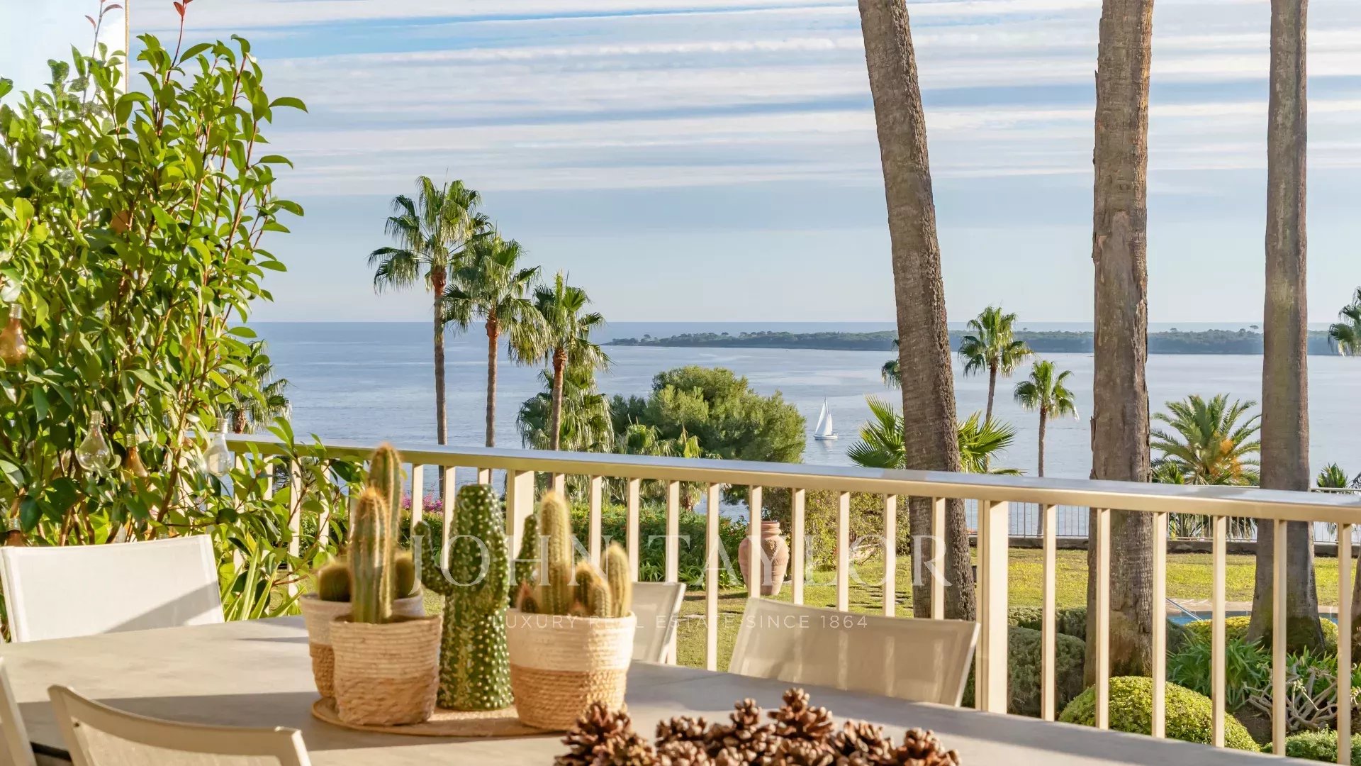 Numa residência de luxo, um atraente apartamento de canto de 127 m² com um grande terraço e uma vista panorâmica única sobre o mar e as ilhas Lérins.