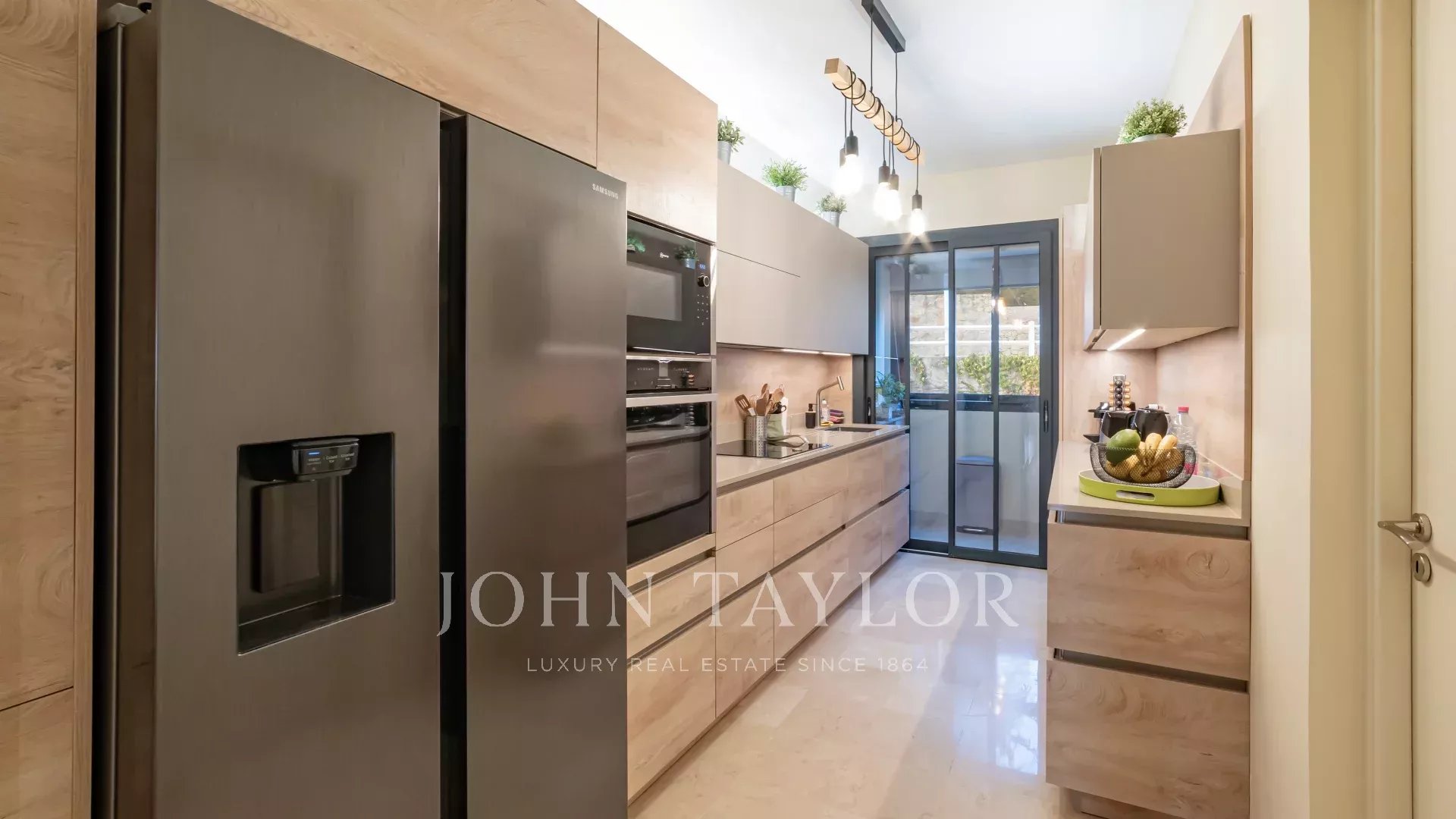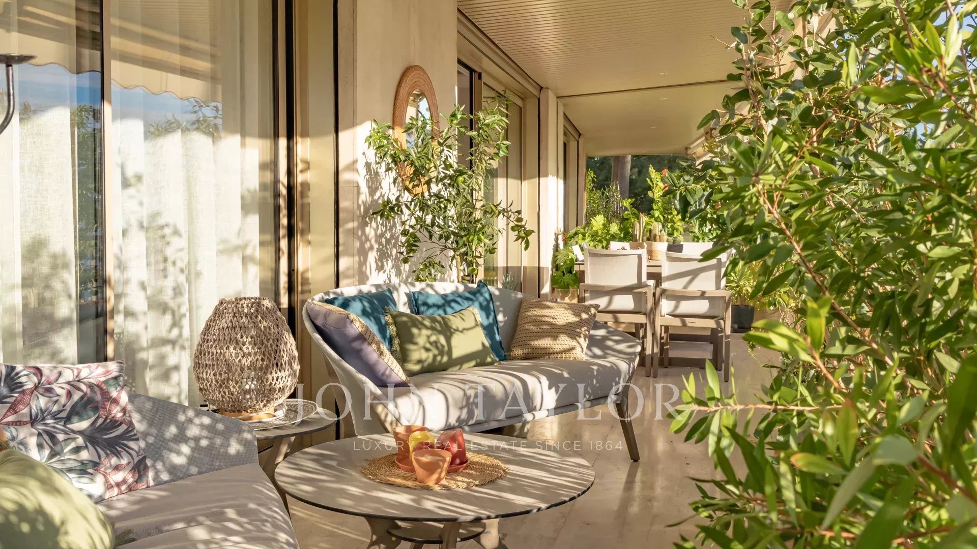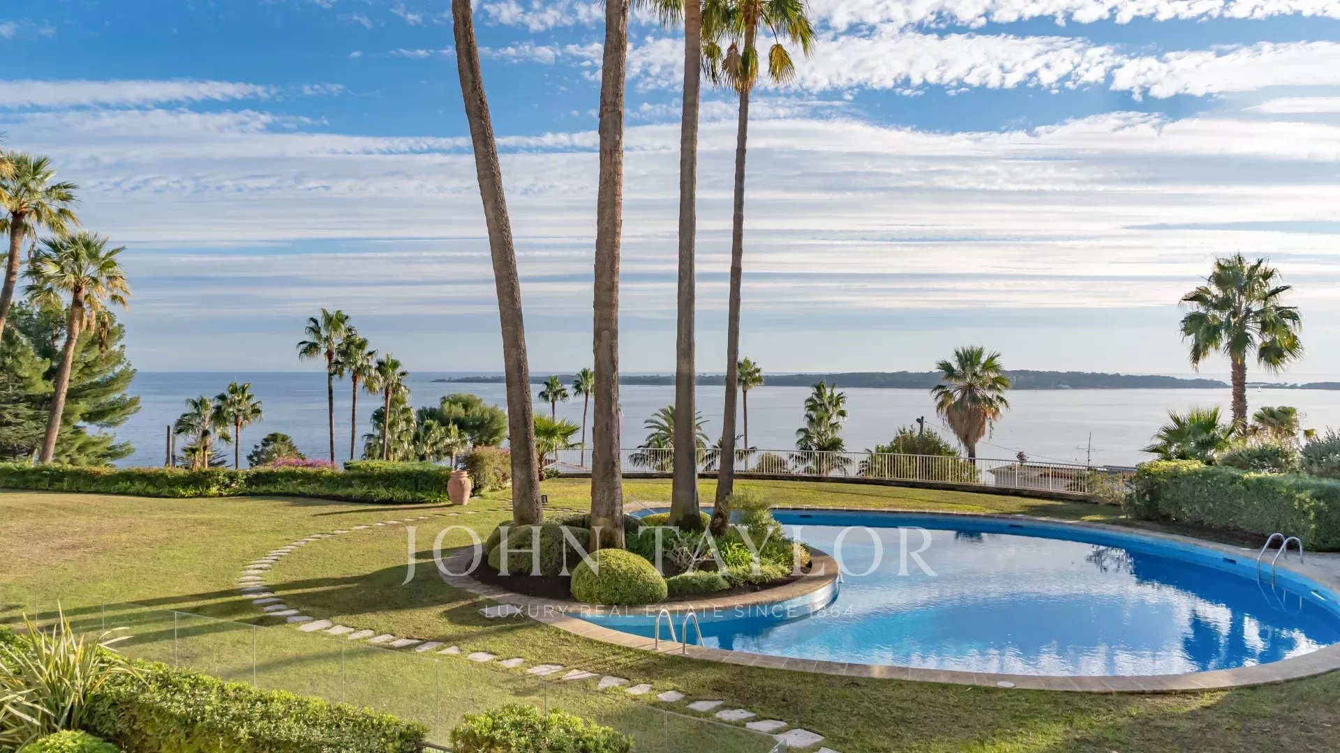 Numa residência de luxo, um atraente apartamento de canto de 127 m² com um grande terraço e uma vista panorâmica única sobre o mar e as ilhas Lérins.