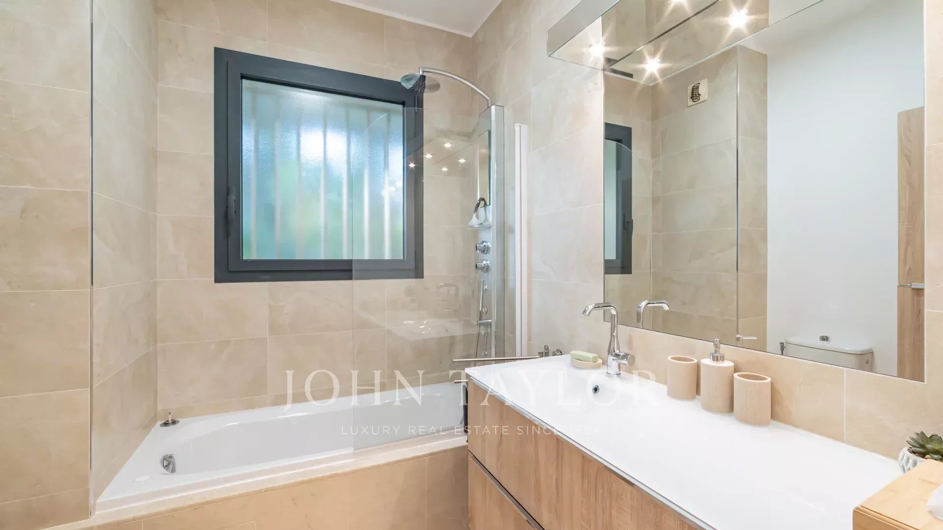 O apartamento virado a sul é composto por um hall de entrada, uma bela área de receção que se abre para o terraço com vista para o mar, uma cozinha separada equipada, um quarto principal com casa de banho privativa e quarto de vestir que se abre para o terraço com vista para o mar, e mais dois quartos com casas de banho privativas.