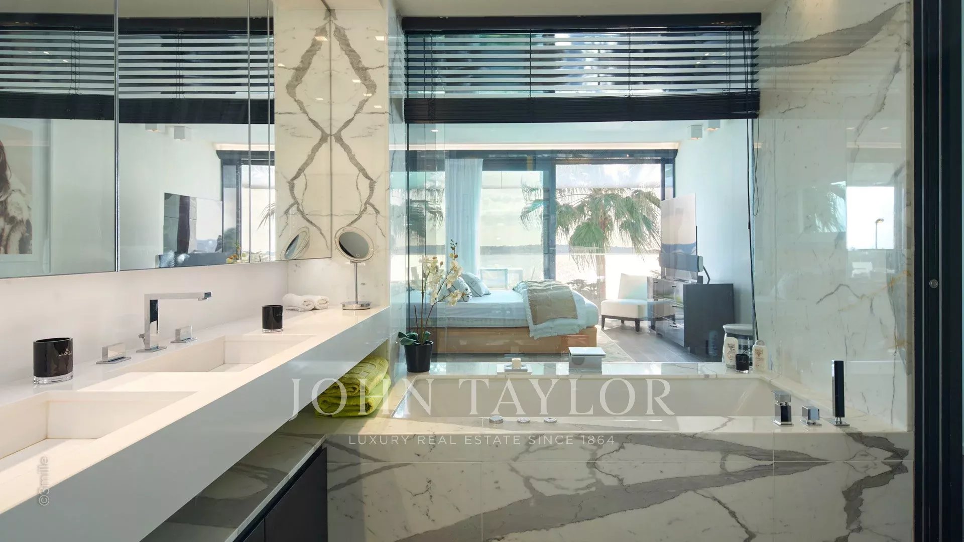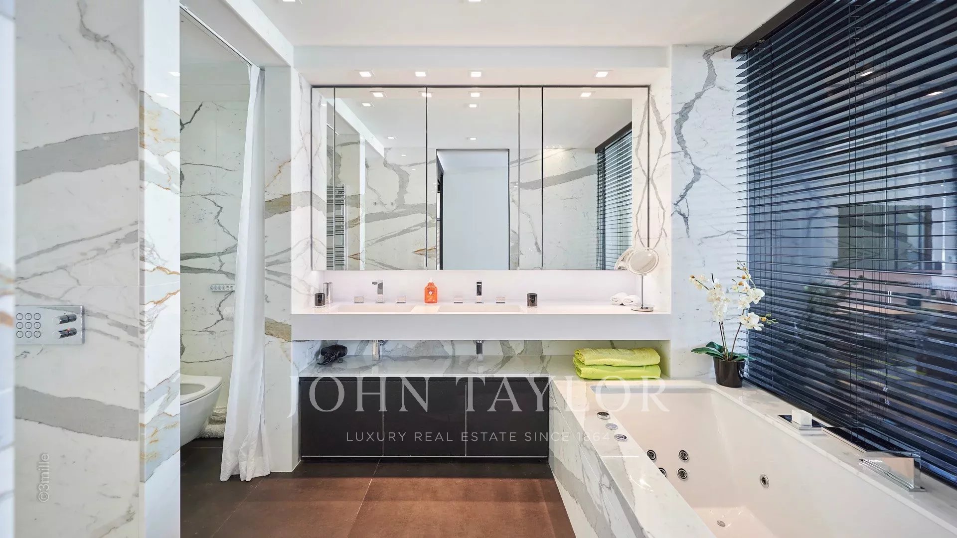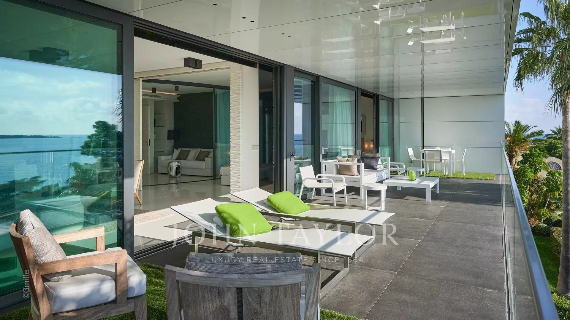Situado numa nova residência de luxo, este magnífico apartamento de 144 m² beneficia de um grande e profundo terraço de 54 m². Virado para sul, oferece vistas panorâmicas sobre o mar e as ilhas Lérins.