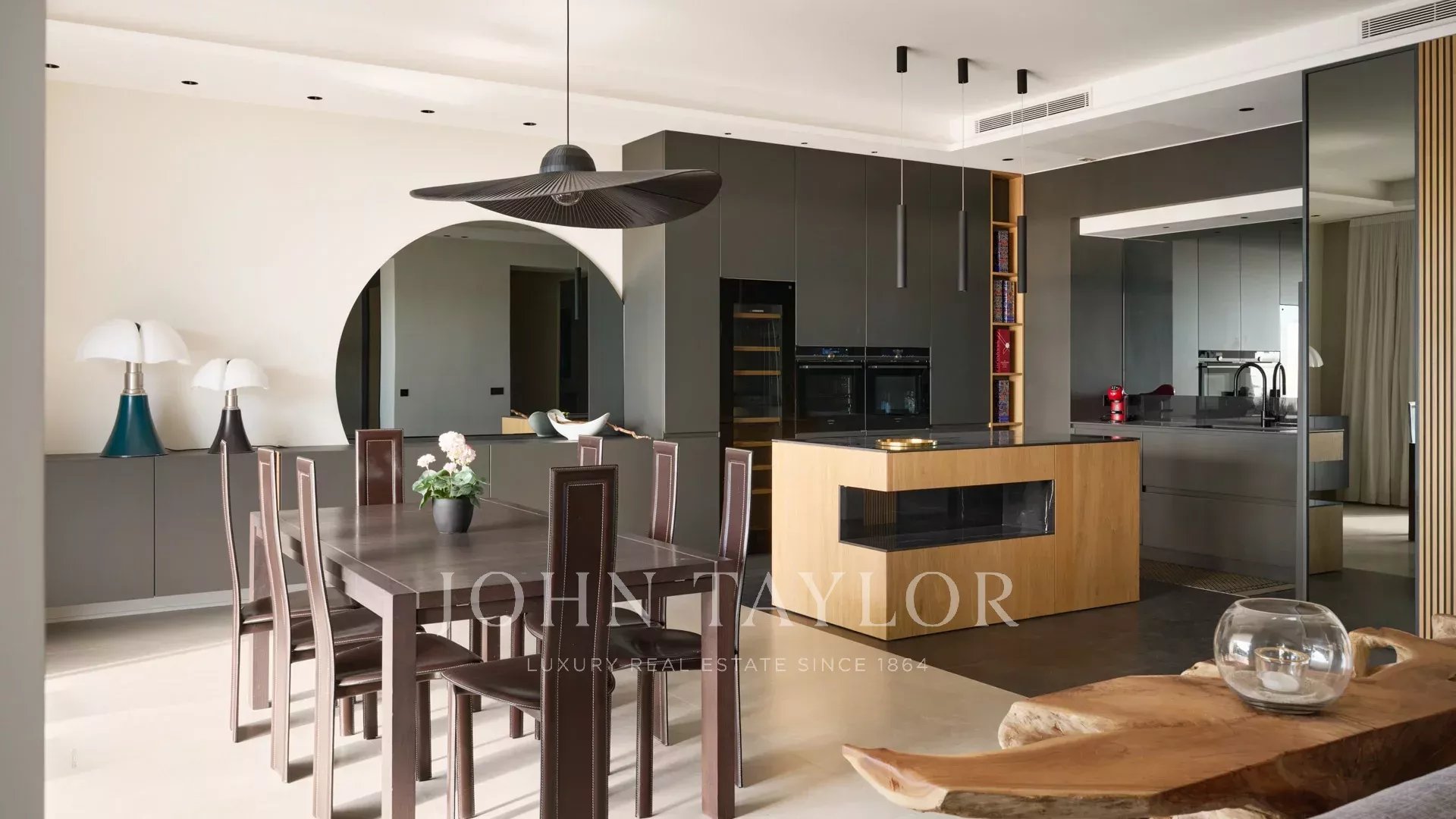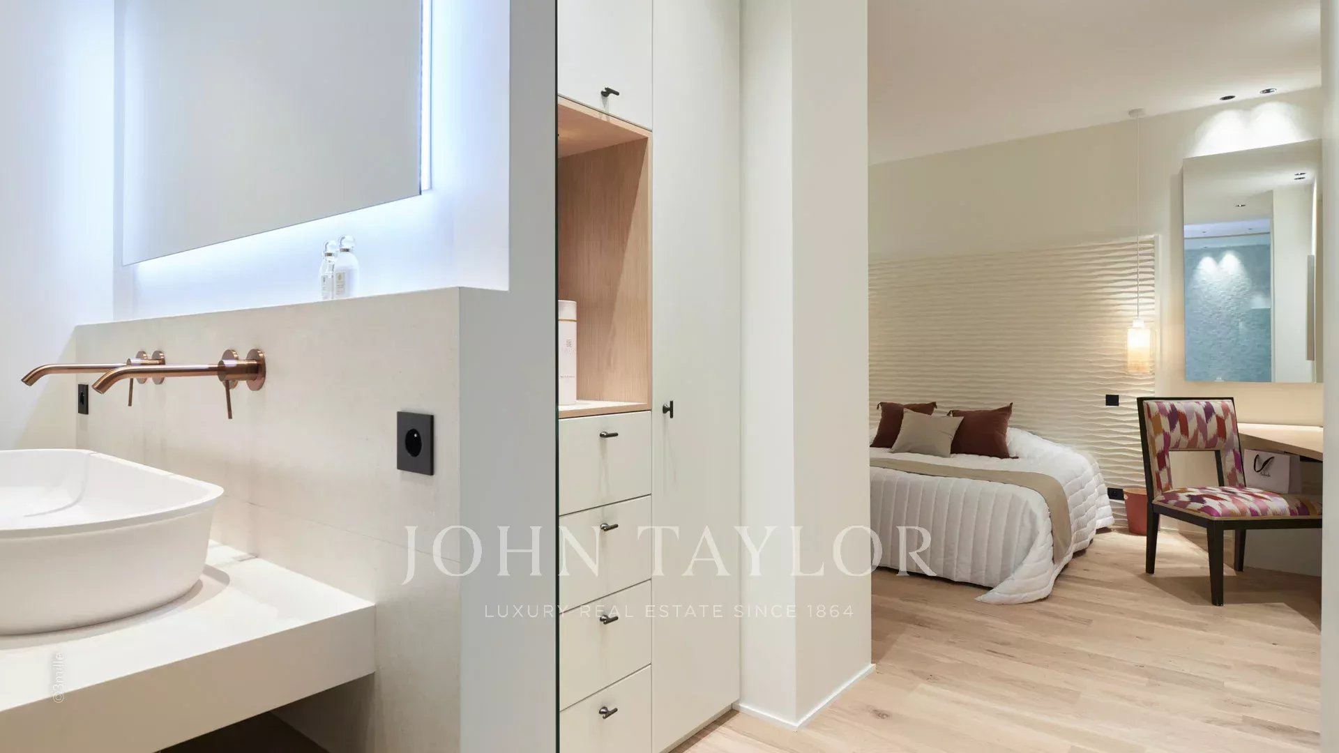 No centro da Croisette, perto do Carlton, das praias e das lojas de luxo, este belo apartamento de 196 m² abre-se para um terraço de 42 m² com vistas panorâmicas para o mar.