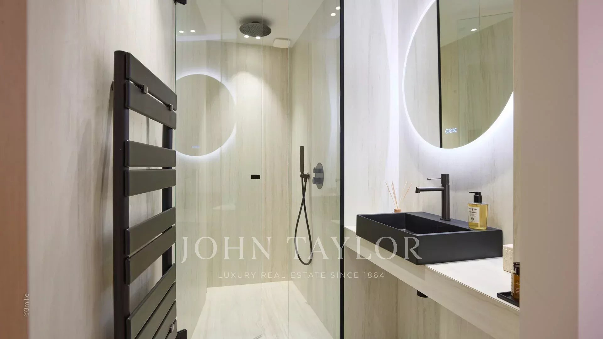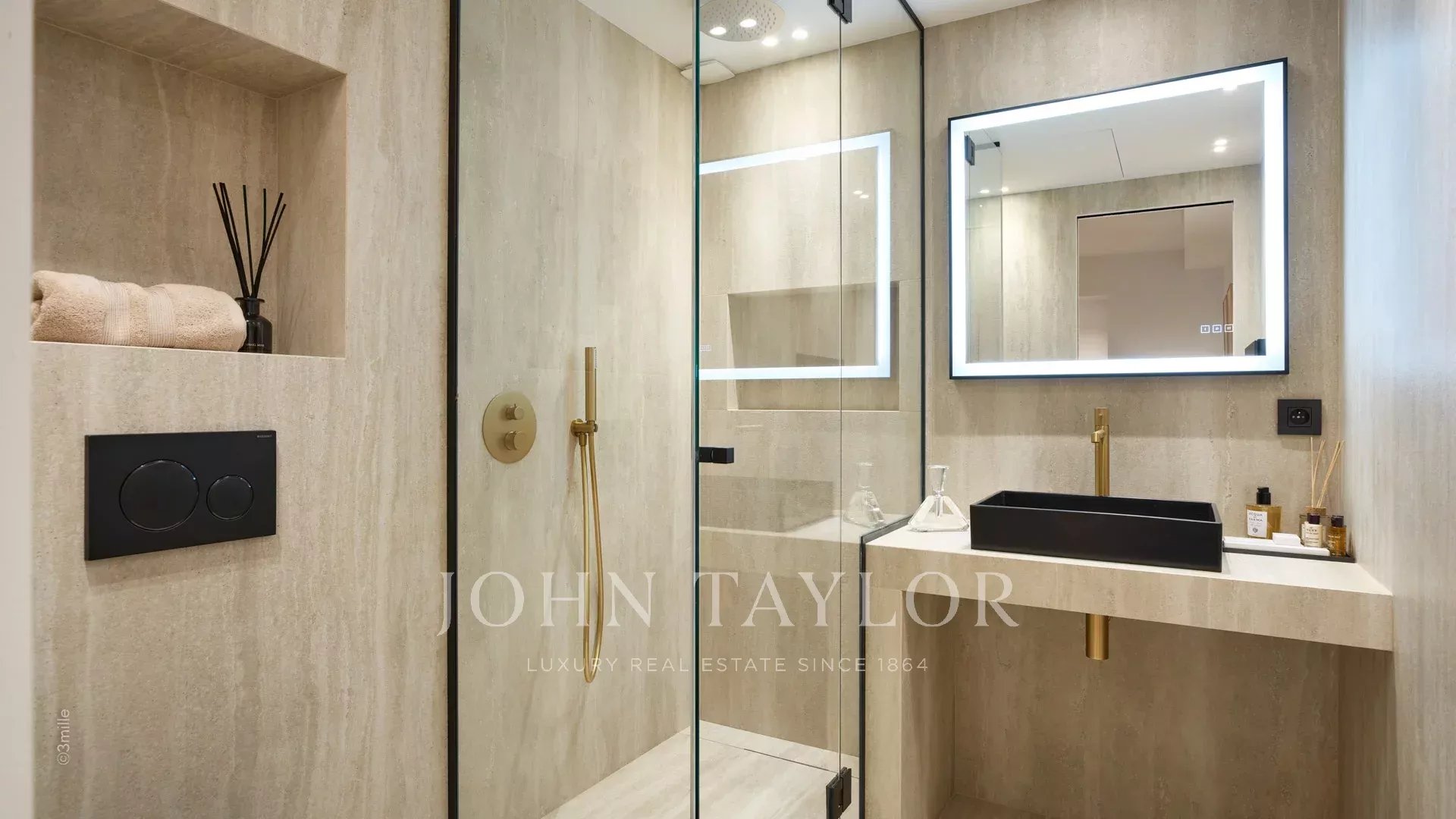 O apartamento é composto por uma sala de estar com cozinha, dois quartos em suite e um terraço de 10 m².