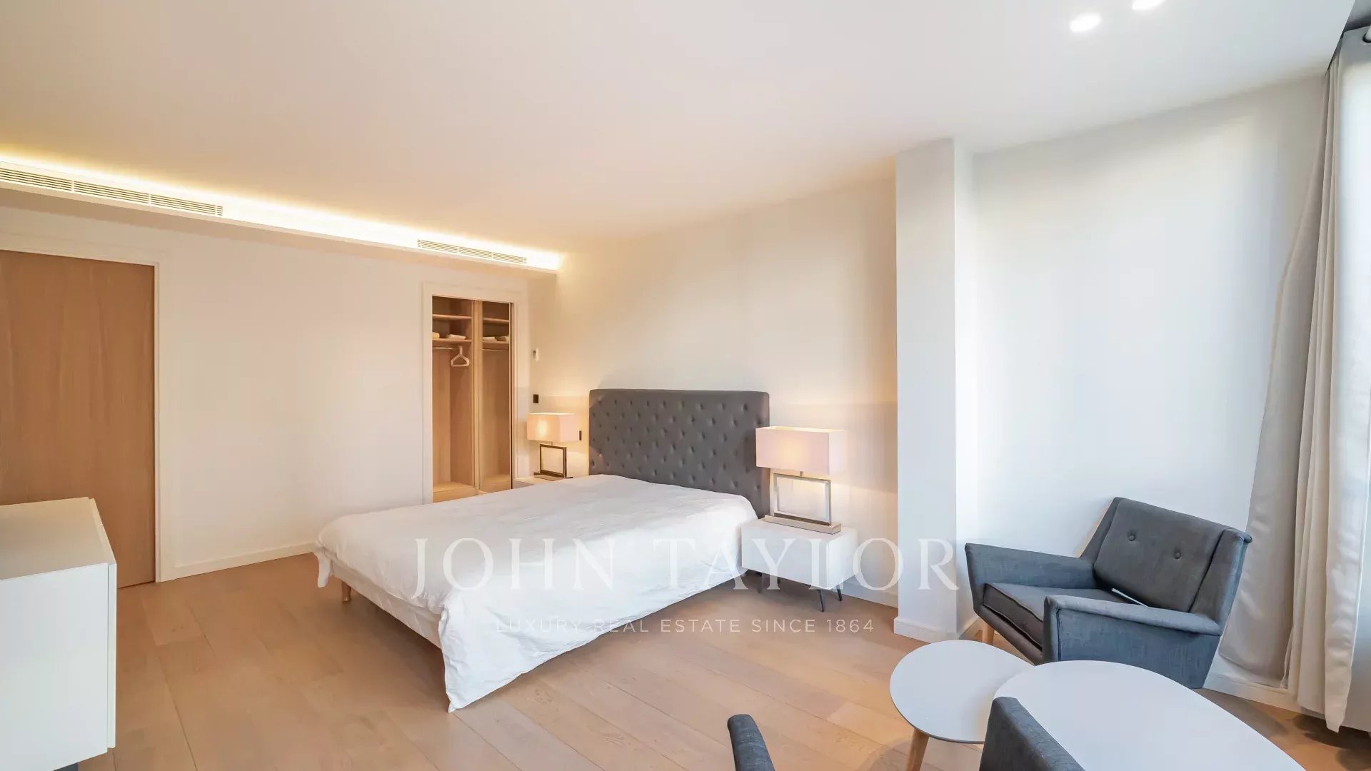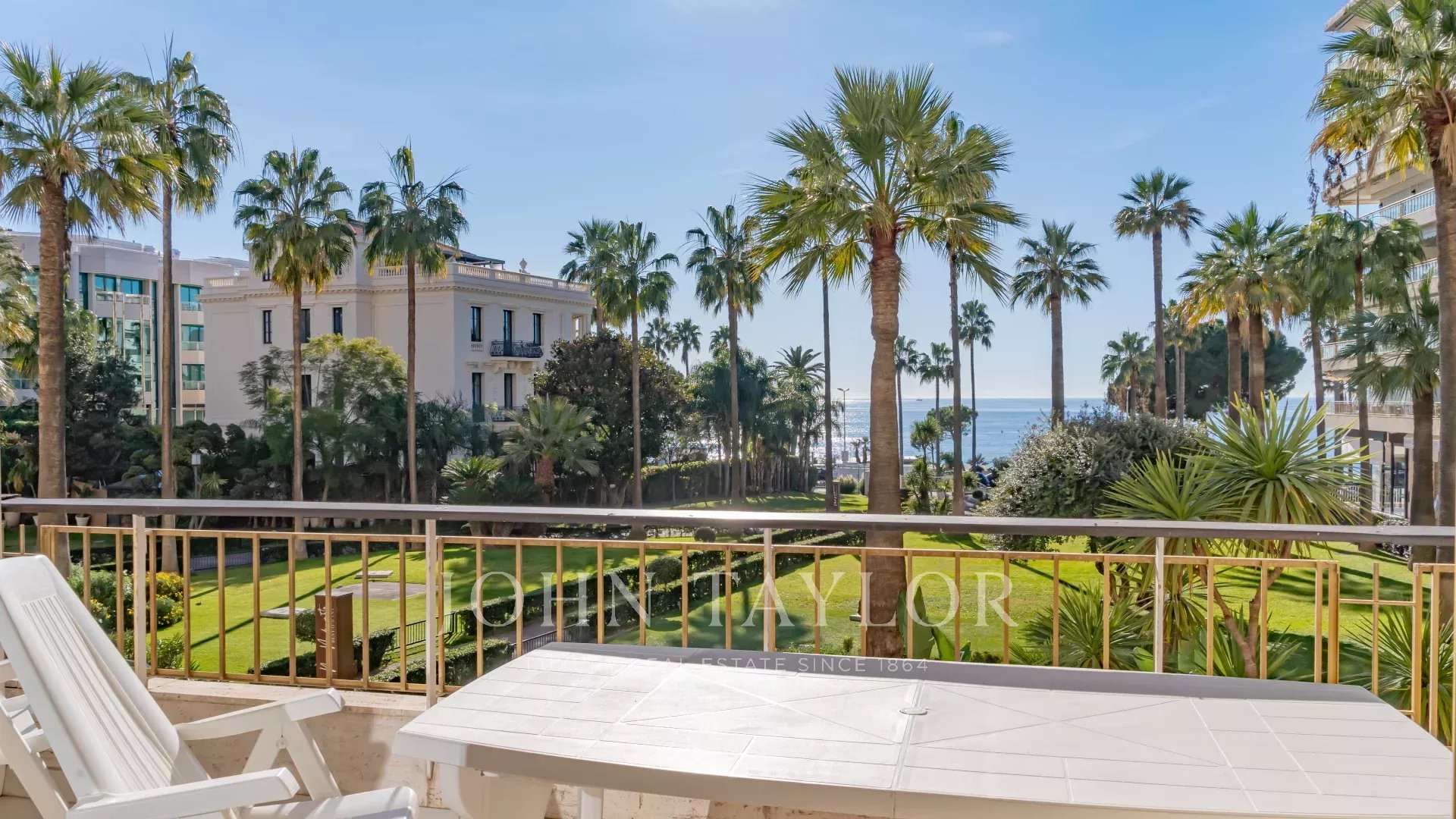 Situado numa residência de luxo na Croisette, este belo apartamento com 4 quartos oferece vistas deslumbrantes sobre o parque e o mar.