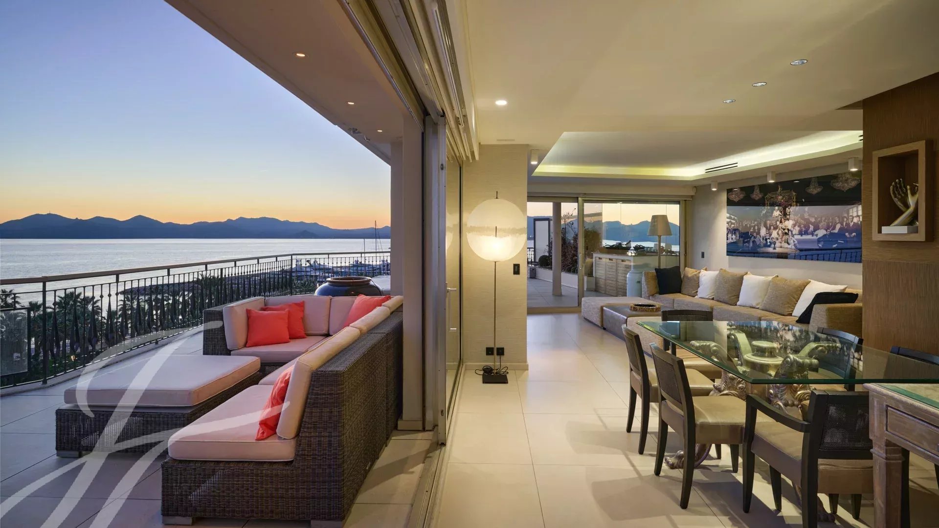 É composto por uma vasta sala de estar/jantar com uma área de bar e duas adegas, que se abre para um espetacular terraço de 156 m² com vistas deslumbrantes sobre Port Canto, Palm Beach, a Baía de Cannes e as Ilhas Lérins. A cozinha fechada, totalmente equipada, tem acesso a um segundo terraço. O apartamento tem quatro quartos, incluindo um quarto principal com casa de banho privativa e duche, e acesso ao terraço com vista para o mar. Um outro quarto com casa de banho privativa e dois outros quartos que partilham uma casa de banho.