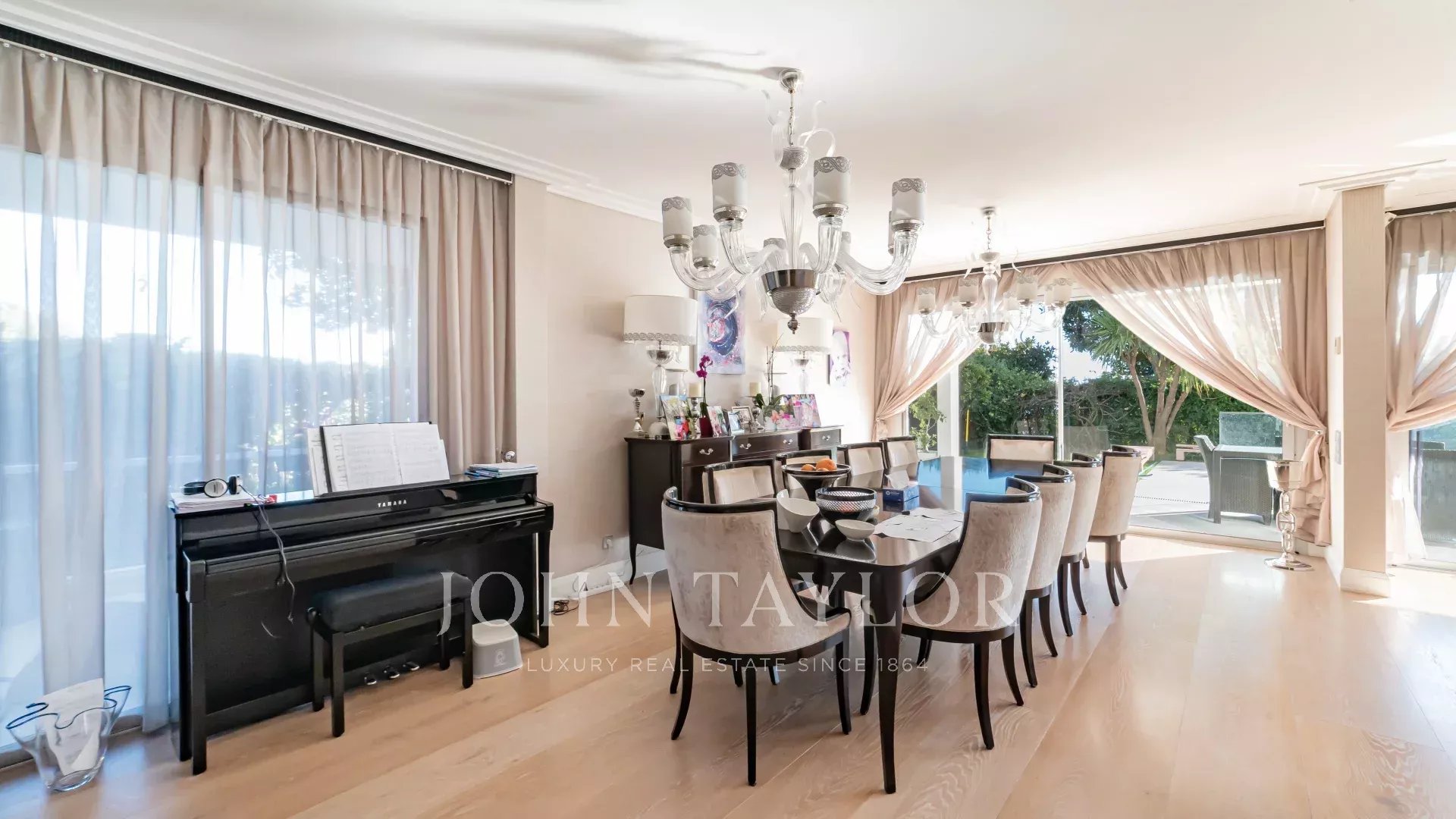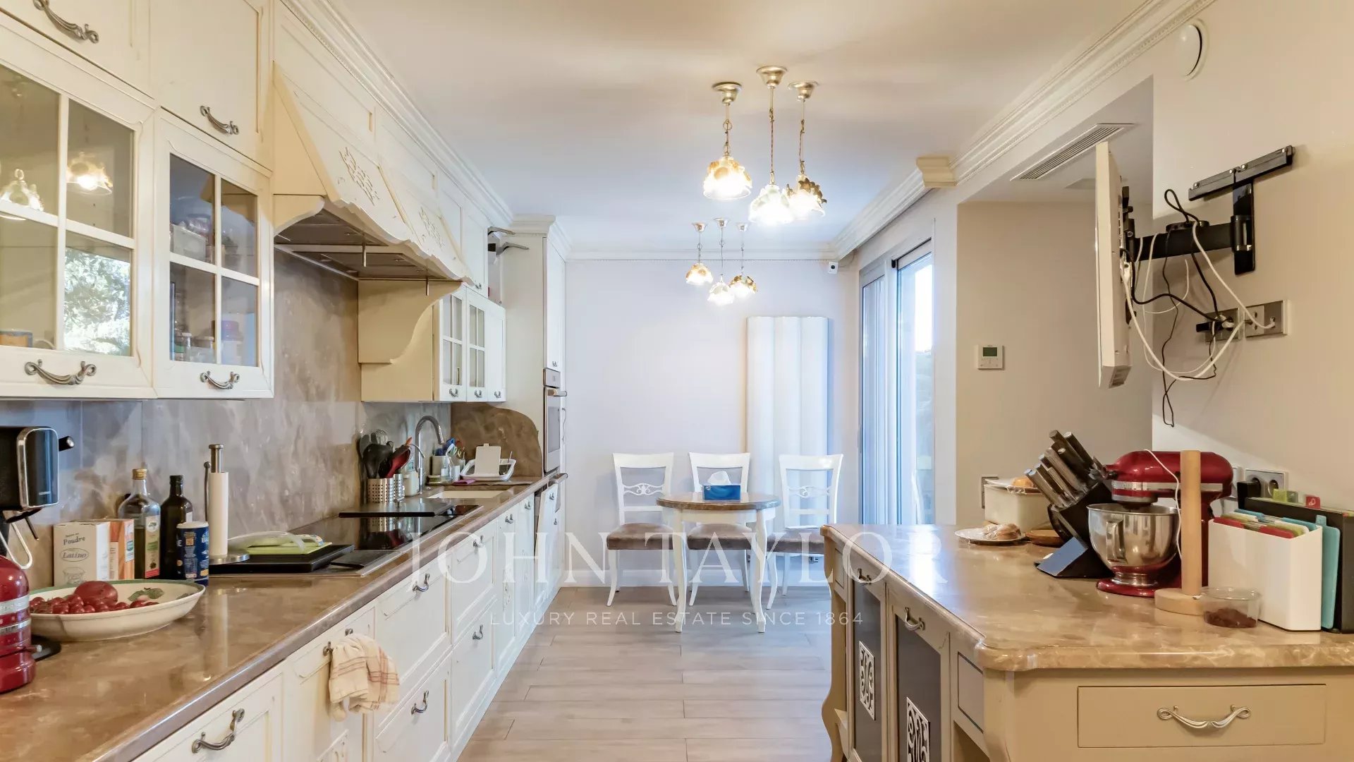 - Rés do chão: hall de entrada, dois quartos com casa de banho privativa, sala de estar, sala de jantar, sala de estar, cozinha equipada, casa de banho social, quarto 3 com casa de banho, quarto 4 com casa de banho privativa e quarto de vestir.