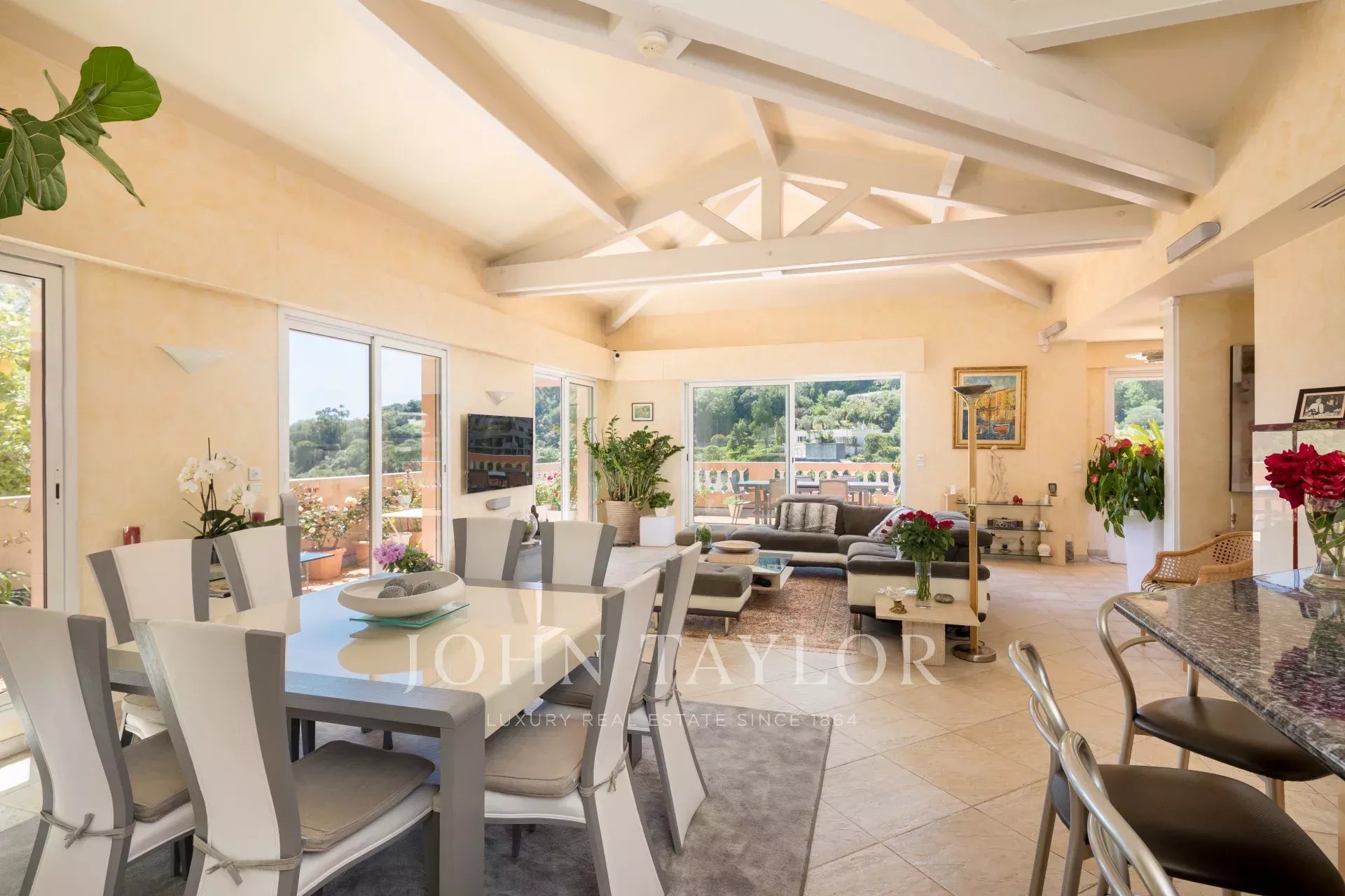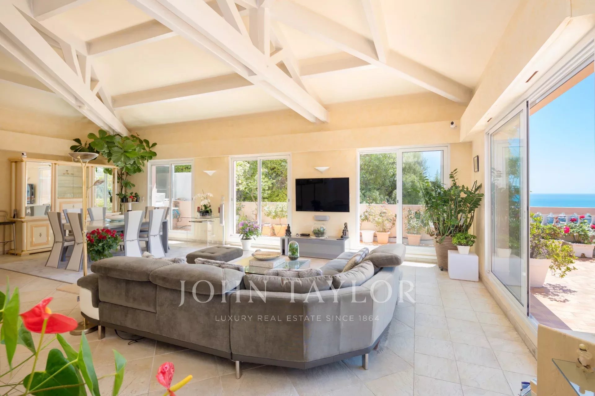 Ocupando todo o último andar de uma residência perfeitamente conservada à escala humana, com exposição sul/oeste e totalmente climatizada, este soberbo apartamento/villa no último andar de 174,13 m2 Carrez, servido diretamente por um elevador, oferece um vasto terraço circular com uma bela vista panorâmica sobre o mar, parte da cidade e as colinas.