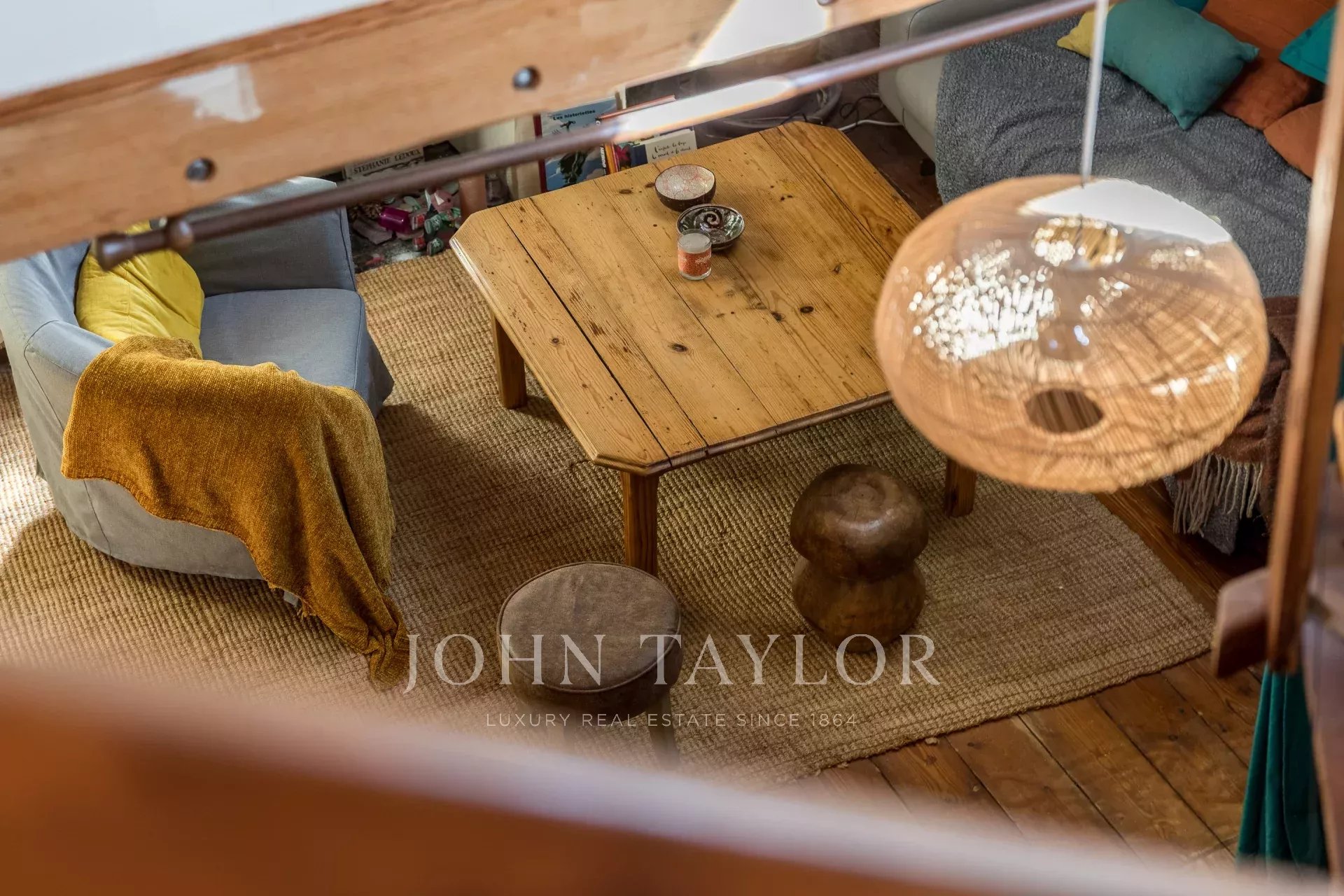 Grande hall de entrada, cozinha equipada com sala de jantar, sala acolhedora, dois belos quartos, grande casa de banho com banheira, quarto de vestir, escritório em mezanino, muito espaço de arrumação optimizado, adega e sala de bicicletas.