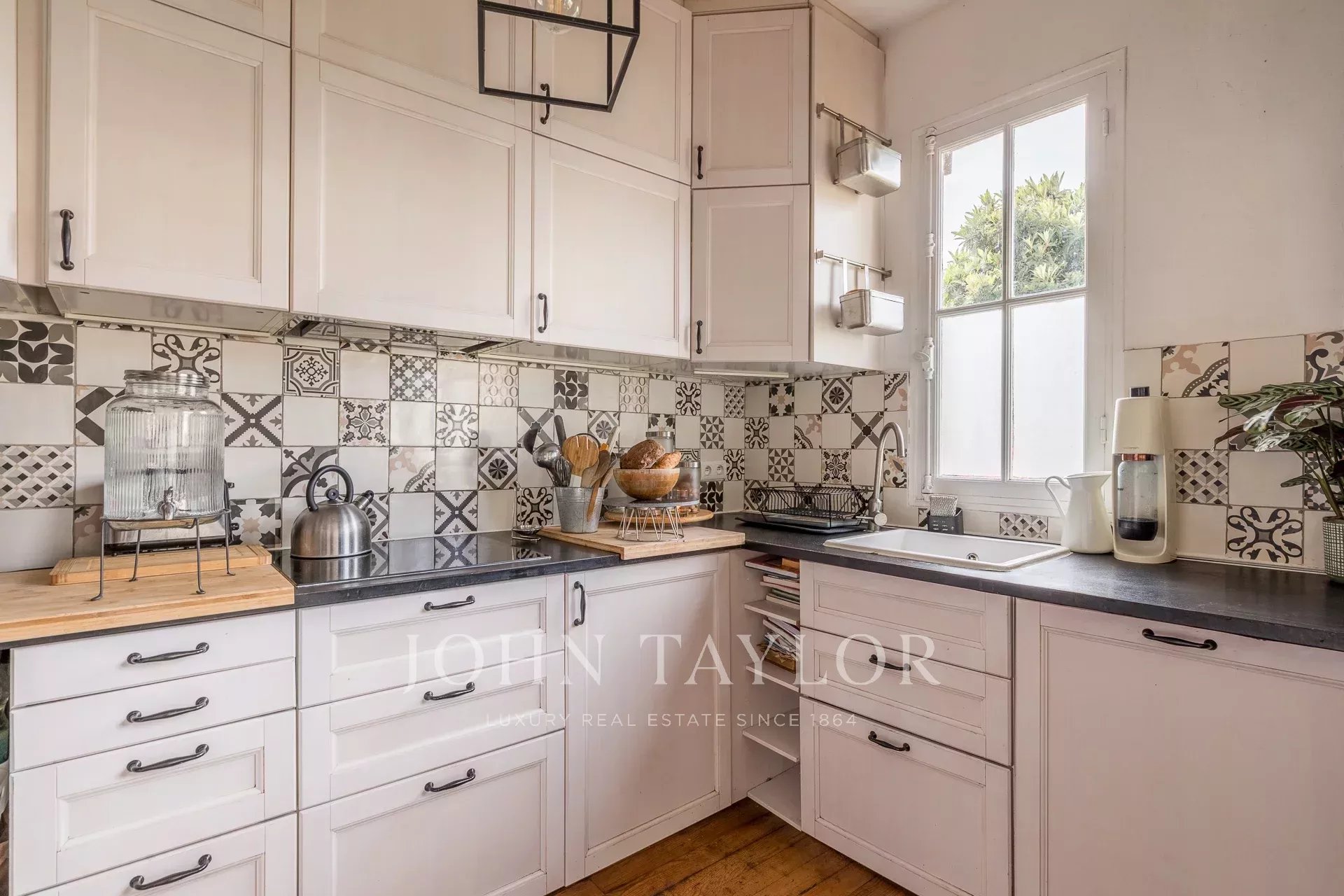No bairro Barrière Judaïque, muito procurado, este apartamento muito charmoso e tranquilo de 130 m² em dois níveis oferece o conforto e o espírito de uma casa. Pequena copropriedade de dois lotes.