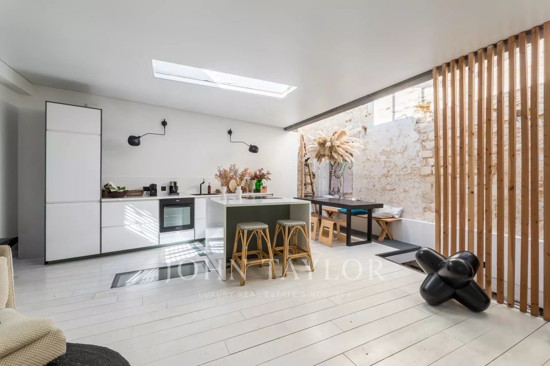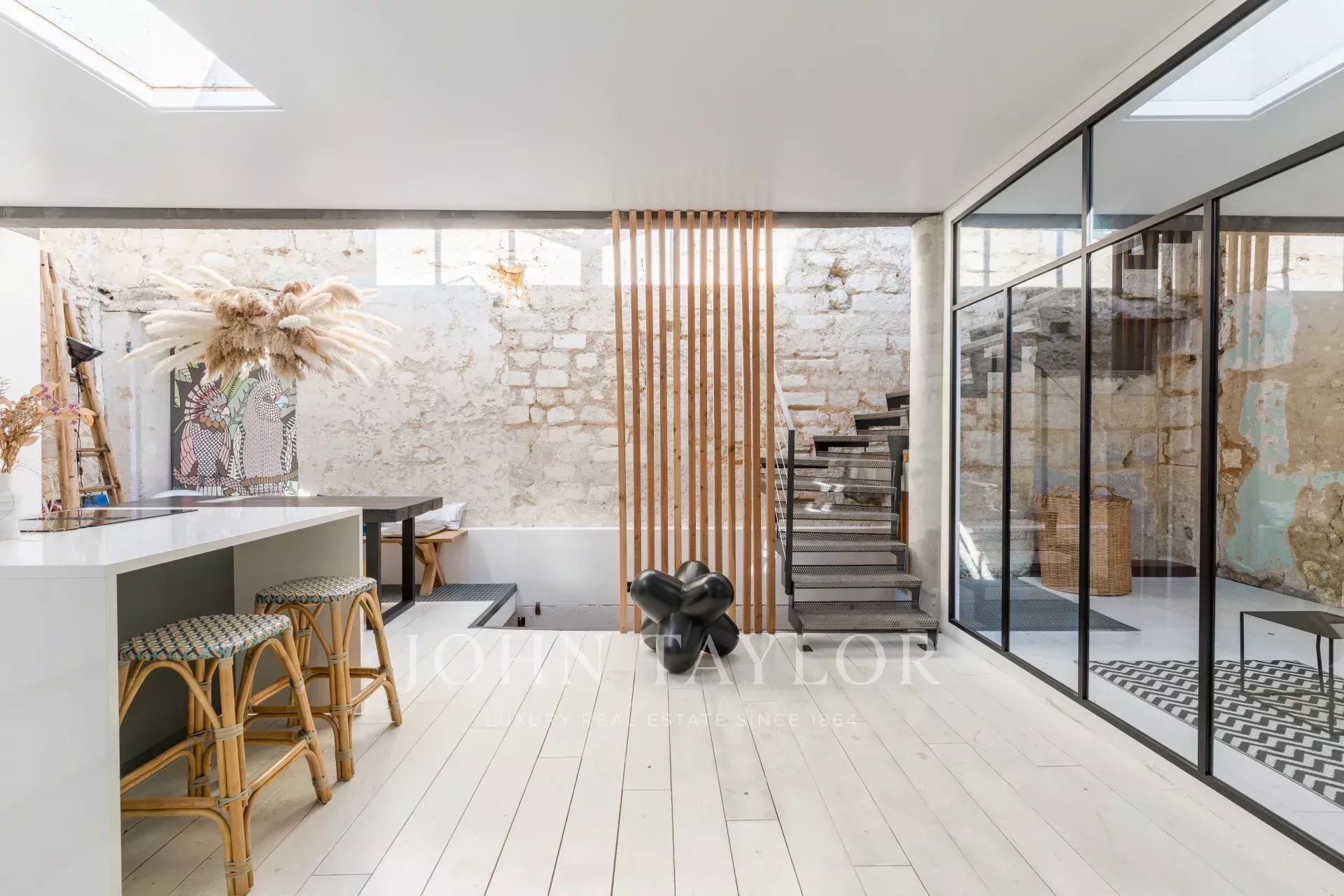 Este encantador triplex de 106 m² está localizado no coração do charmoso bairro de Chartrons, em Bordeaux. Com 4 quartos bem distribuídos, esta propriedade oferece um espaço de vida elegante e funcional. A combinação de pedra aparente e design contemporâneo cria uma atmosfera única, ideal para quem aprecia arquitetura e conforto.