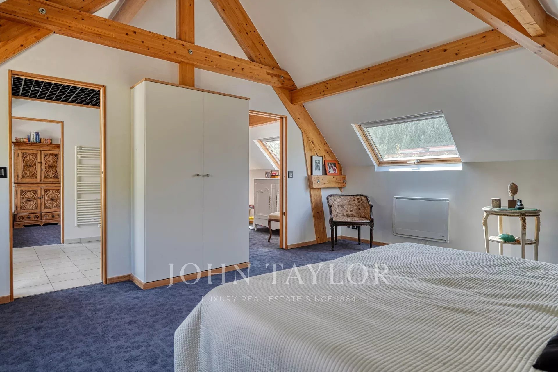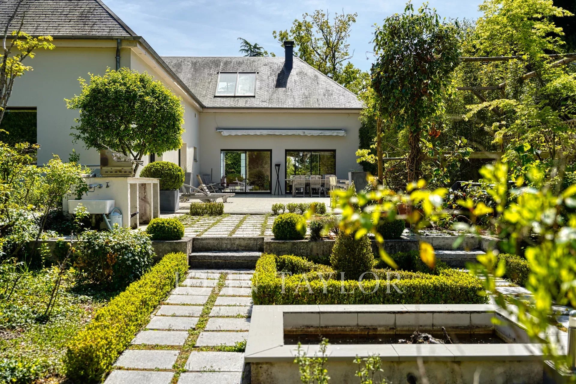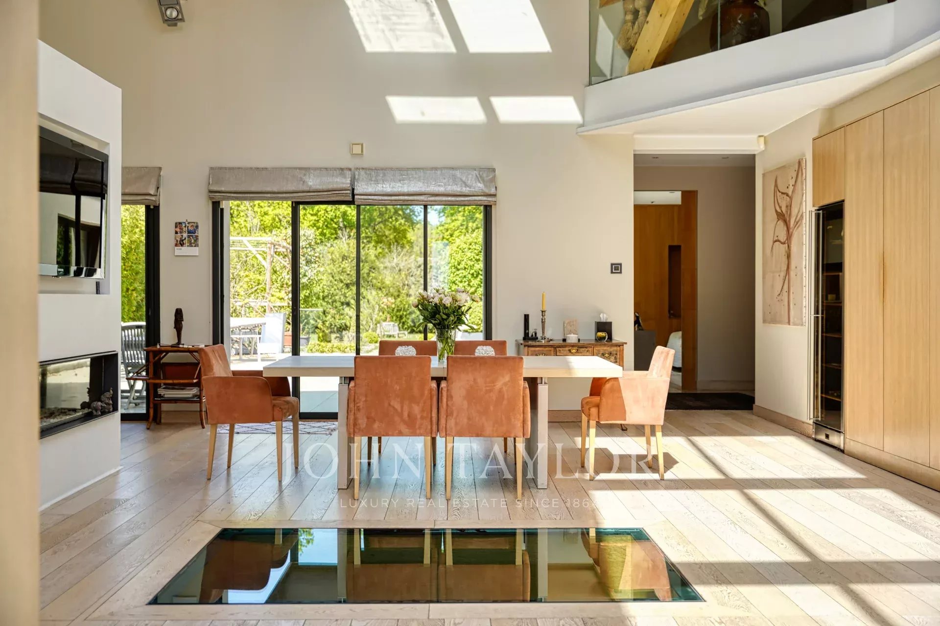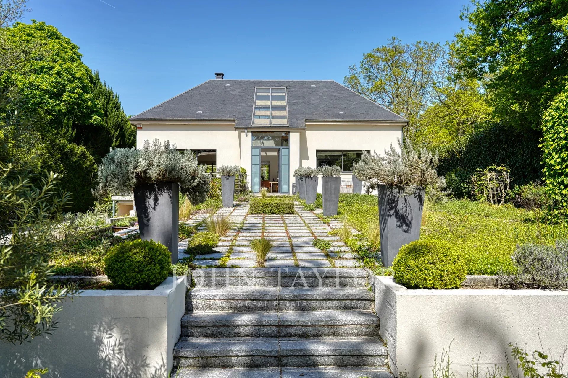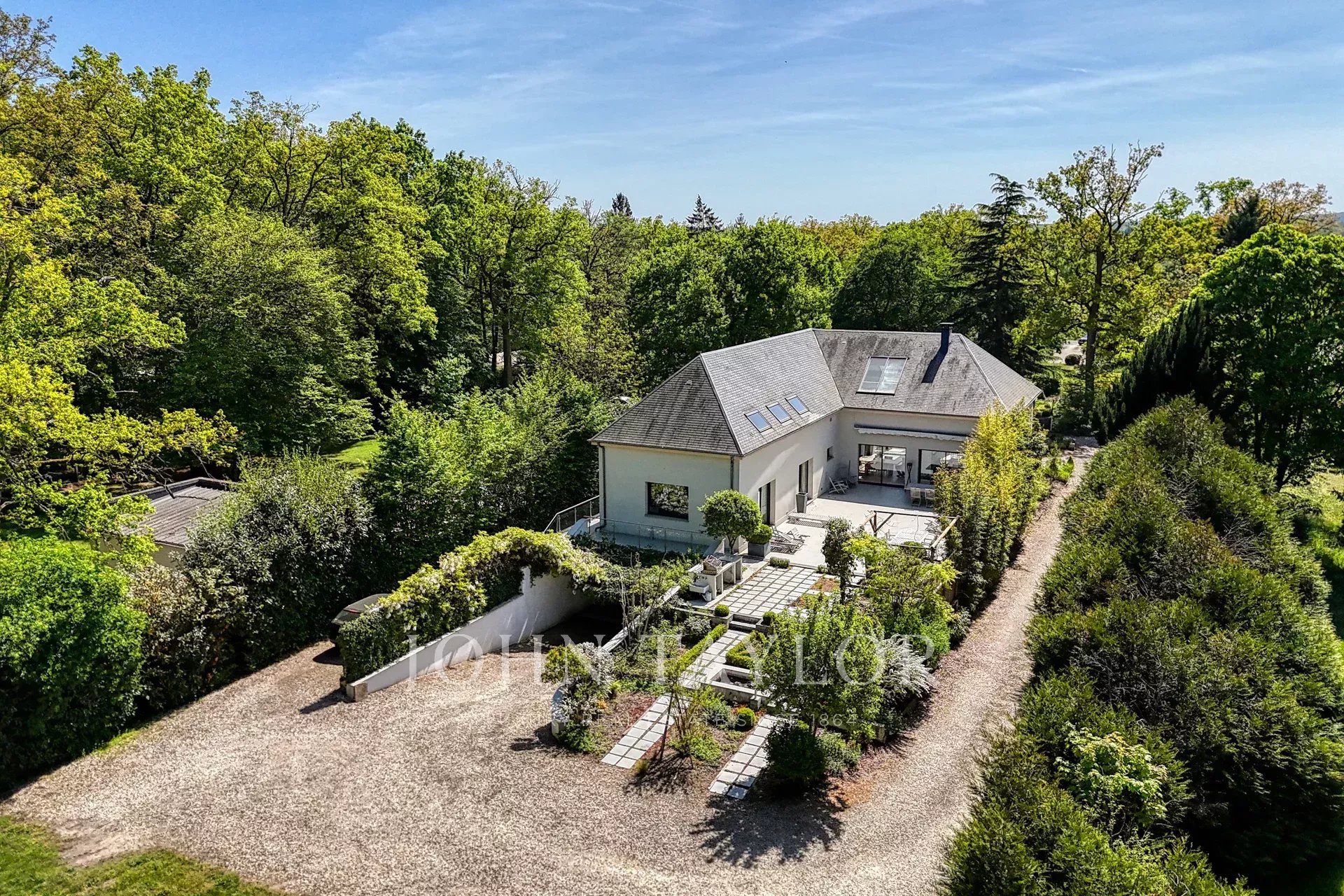 A apenas 45 minutos de Paris e 25 minutos do CDG, dentro do domínio privado e golfístico do Lys, esta casa de arquitetura do início dos anos 2000 se insere em um ambiente preservado, à sombra dos olhares.