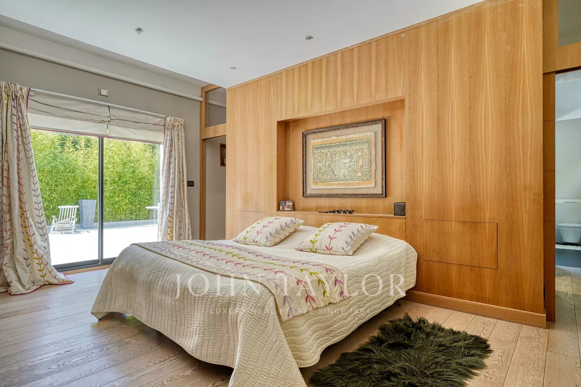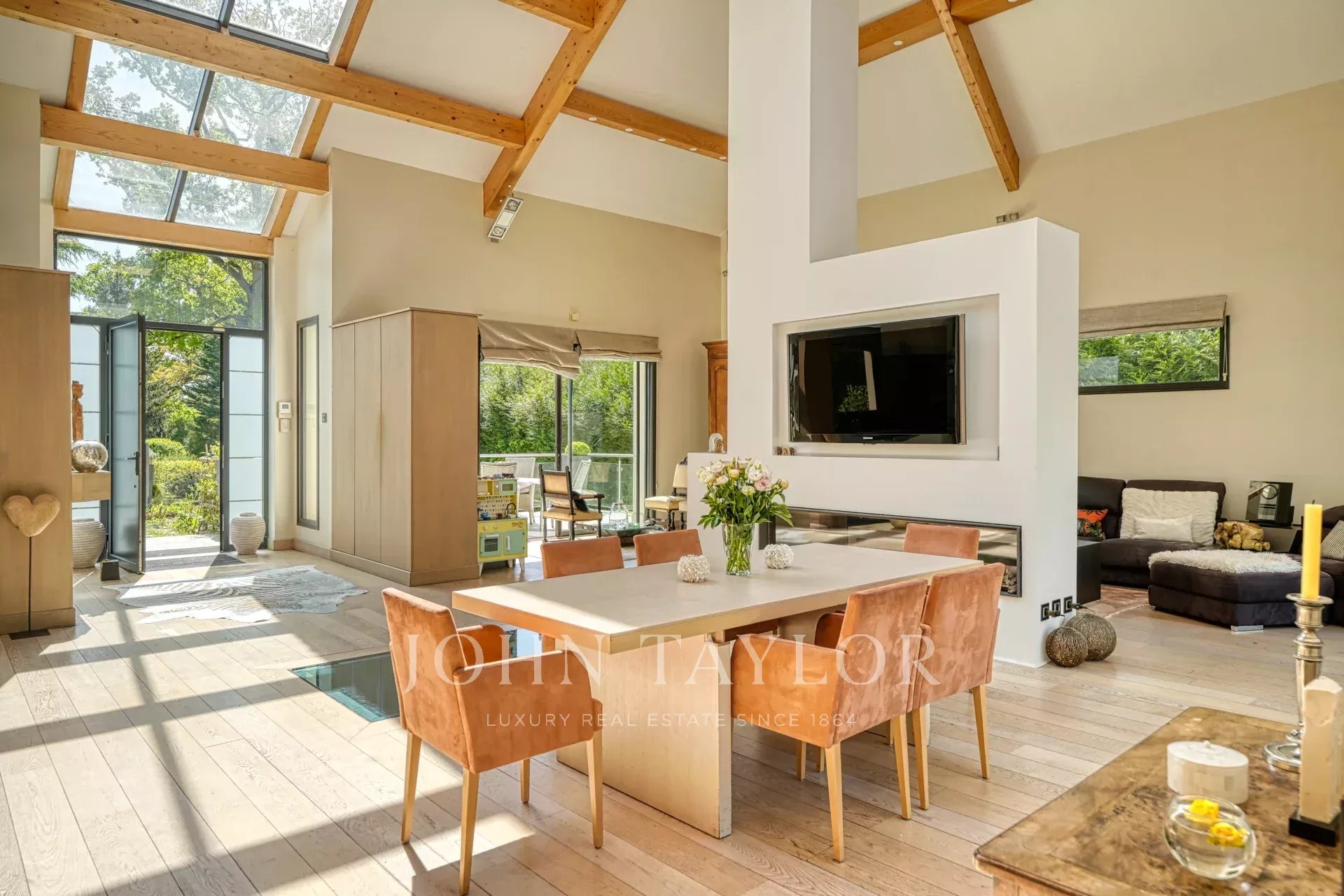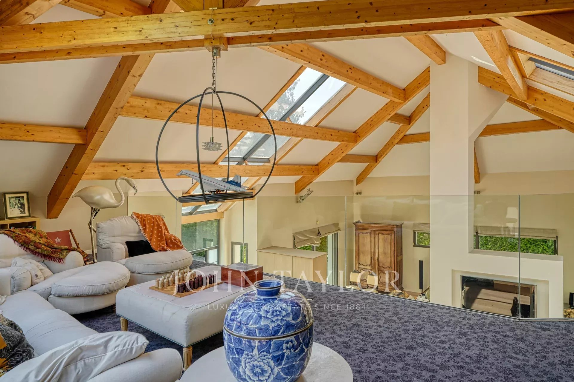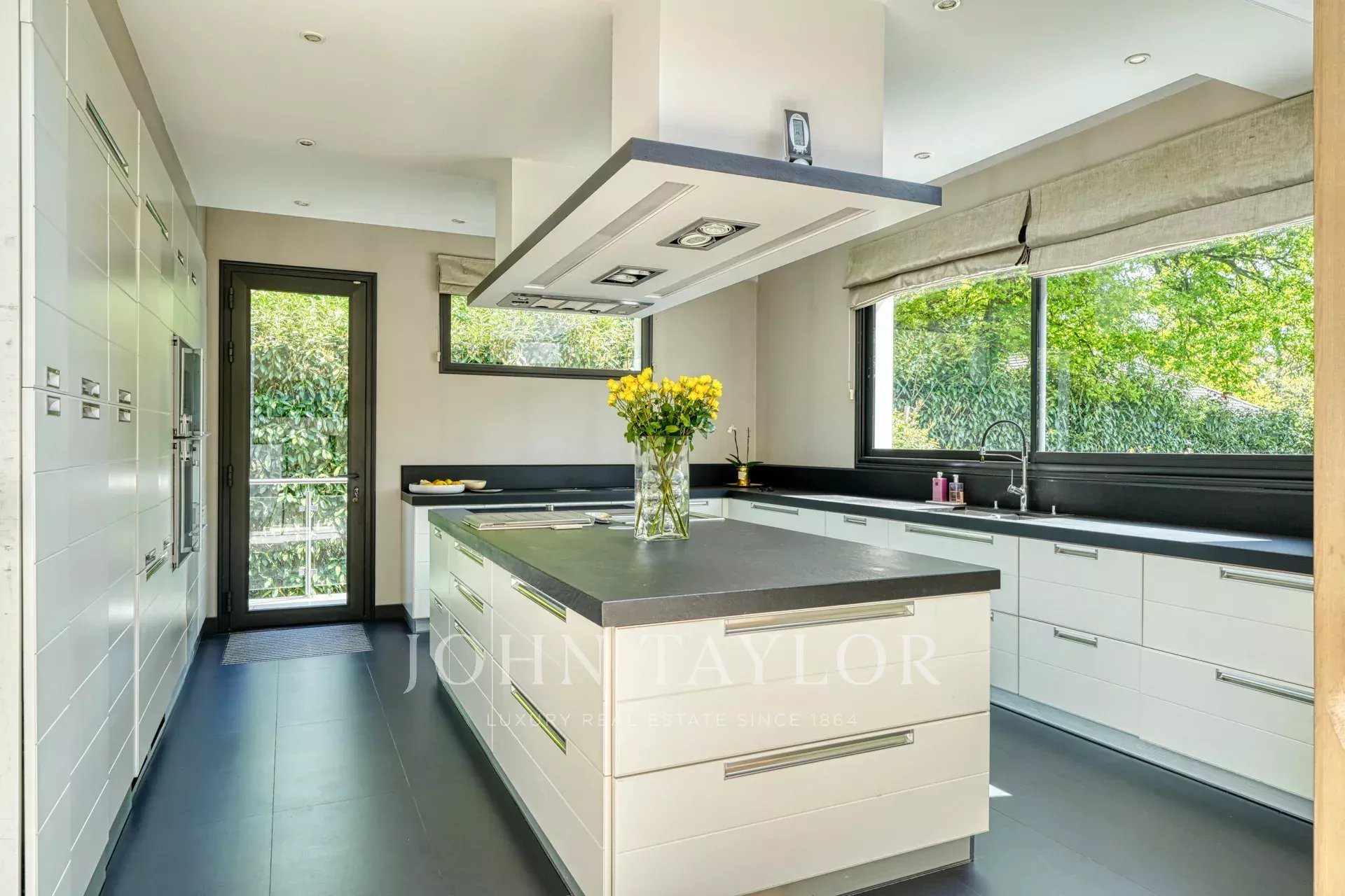 A apenas 45 minutos de Paris e 25 minutos do CDG, dentro do domínio privado e golfístico do Lys, esta casa de arquitetura do início dos anos 2000 se insere em um ambiente preservado, à sombra dos olhares.