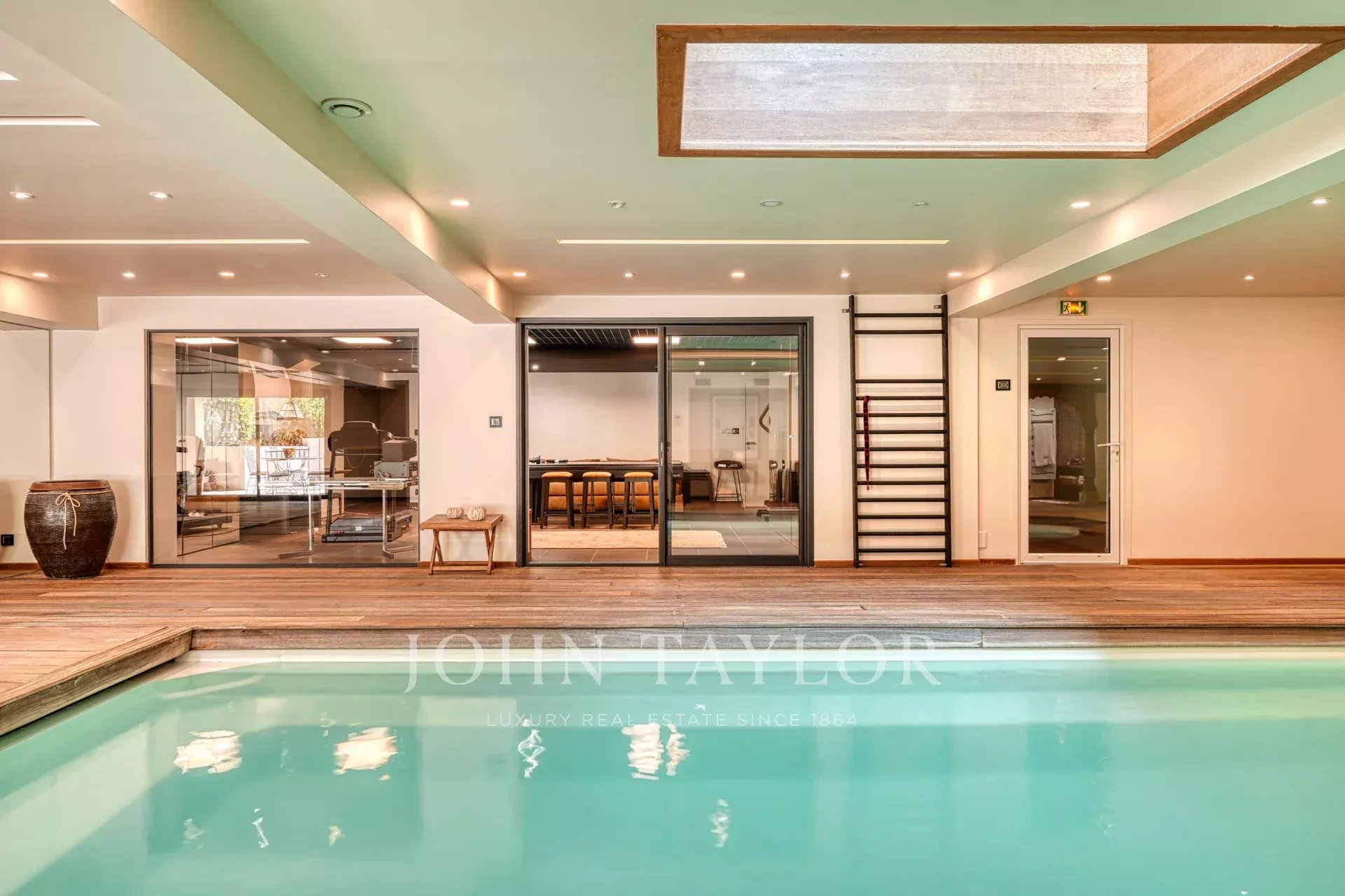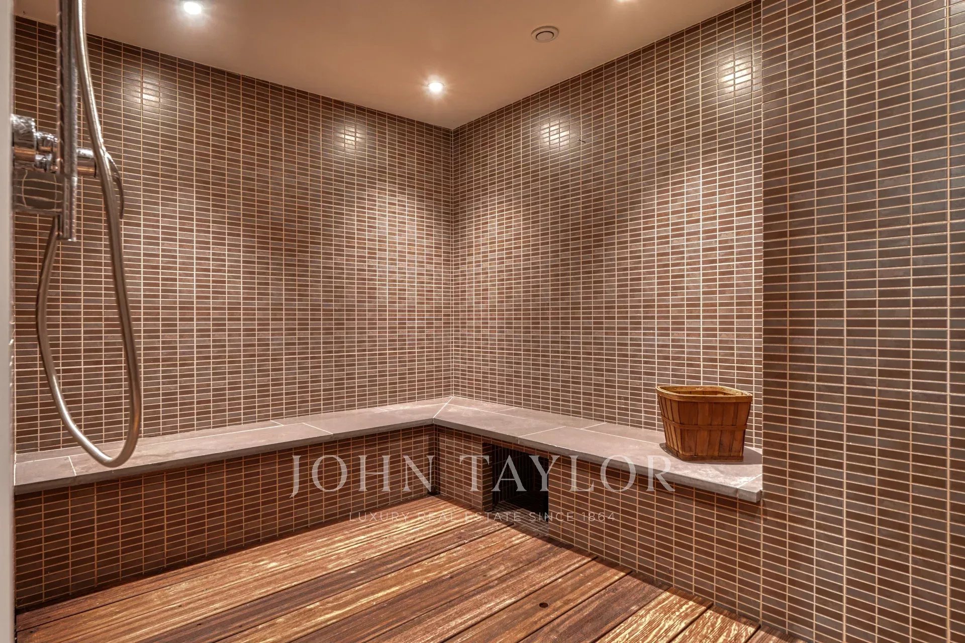 O piso do jardim hospeda um espaço dedicado ao bem-estar e lazer: piscina interior, hammam, academia e sala de cinema, bem como uma garagem para dois veículos.
