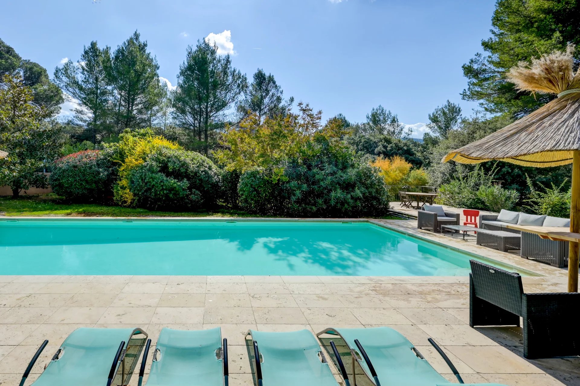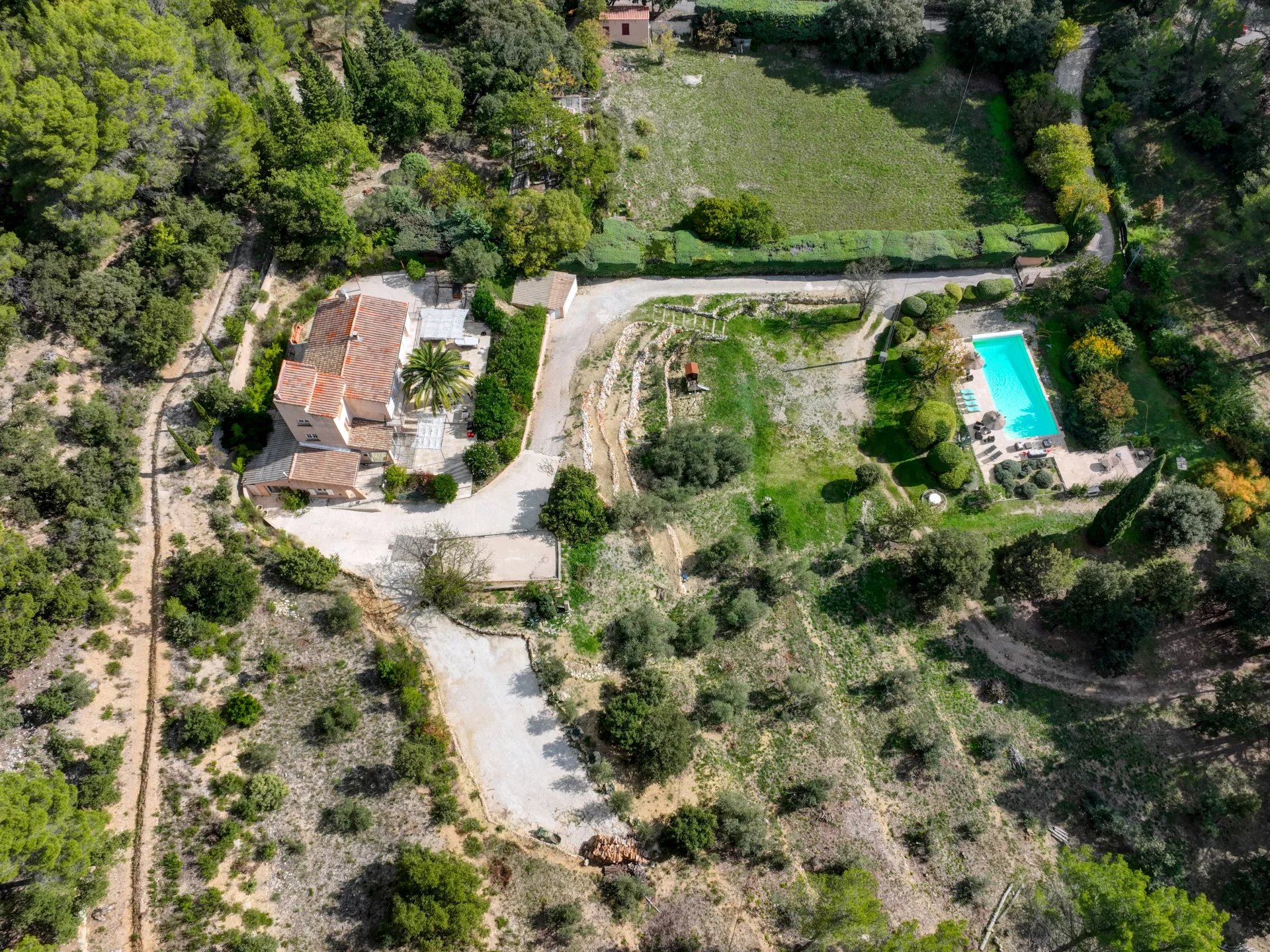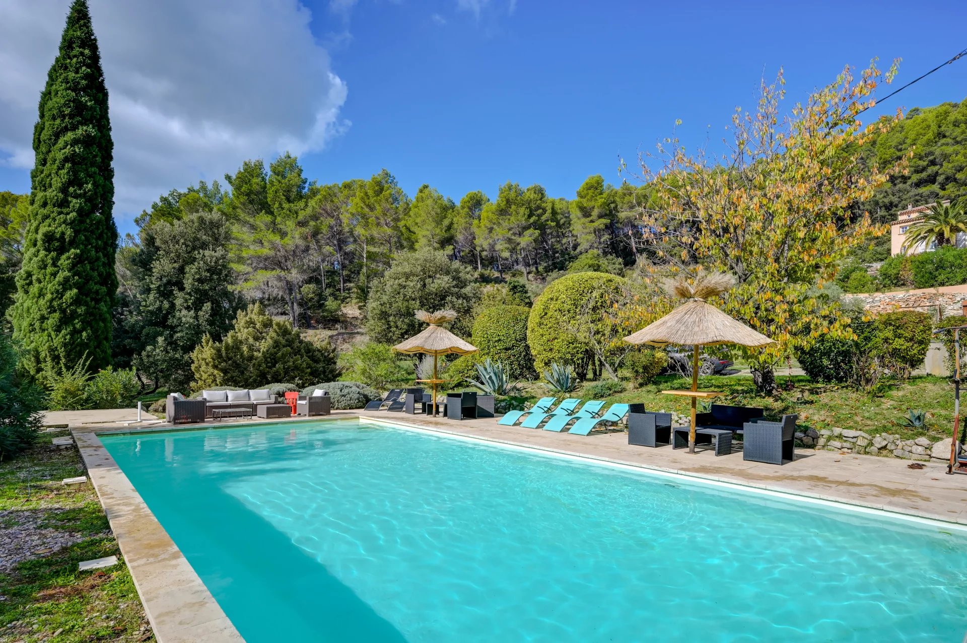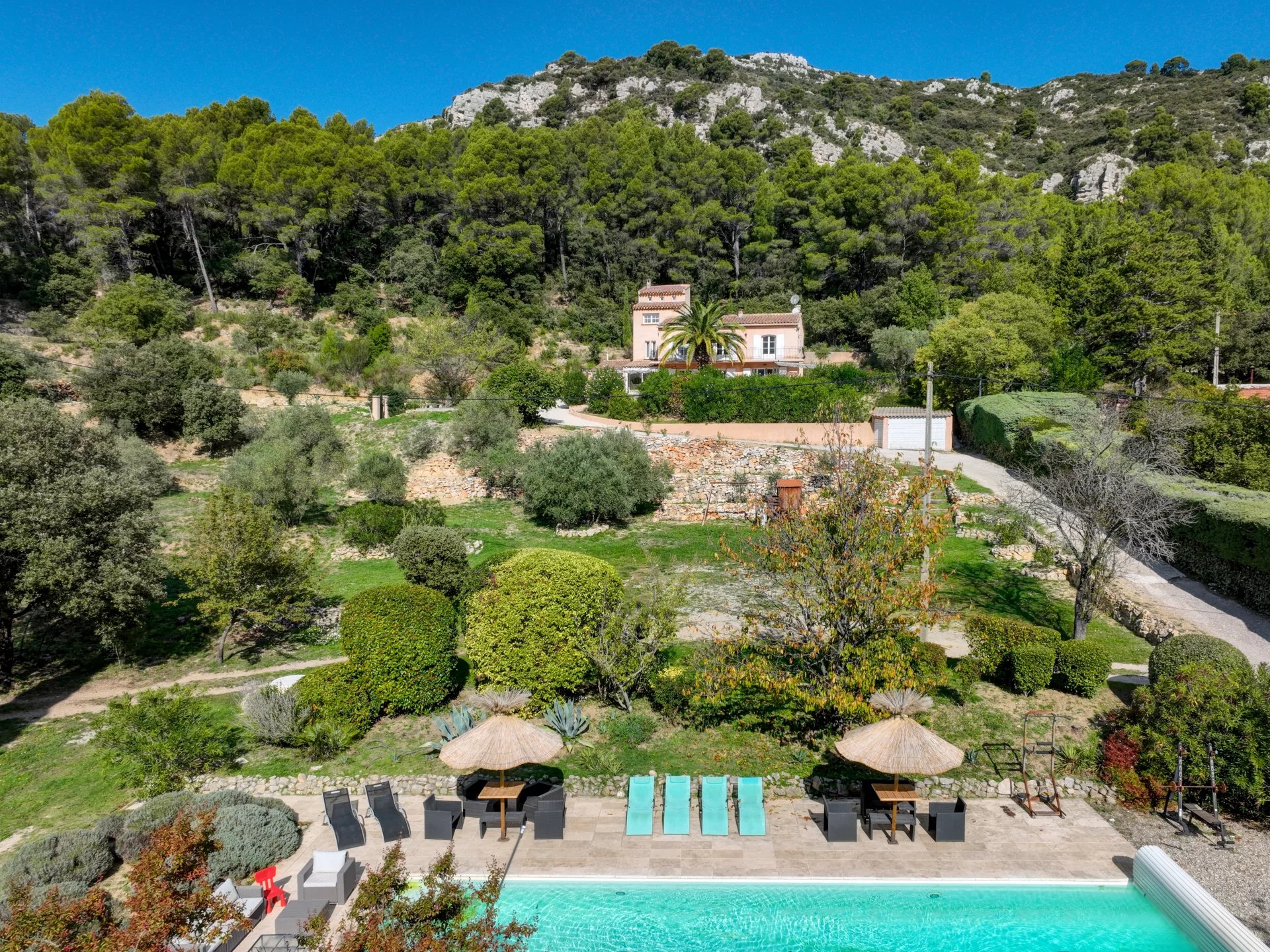 Completamente renovada em 2014, esta casa de 222 m² está situada em 16.500 m² de terreno ajardinado, rodeada por terraços provençais, pinheiros e natureza intocada.
