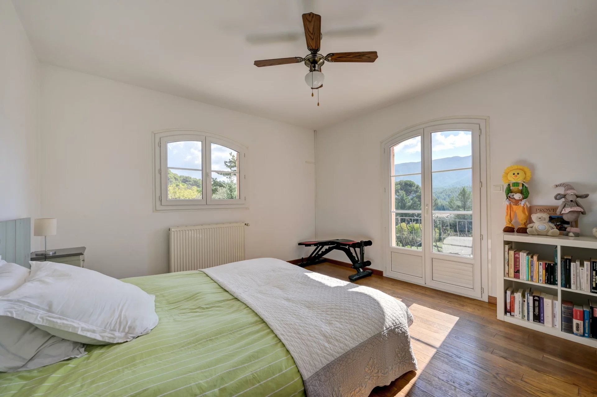 No andar de cima, cinco quartos, três dos quais com acesso a uma varanda com vista para Sainte-Victoire. Há também uma sala de duche, uma casa de banho e um WC.