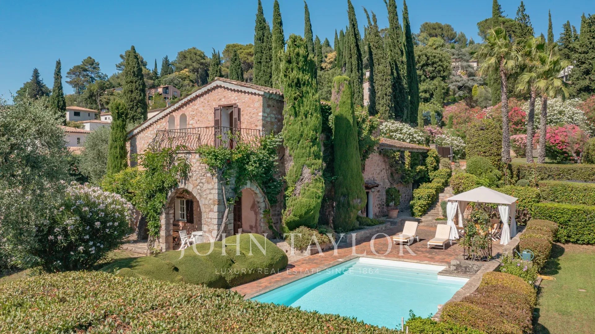 Auribeau sur Siagne, quinta de pedra que oferece todo o encanto de uma casa antiga com vistas ininterruptas sobre a paisagem circundante.