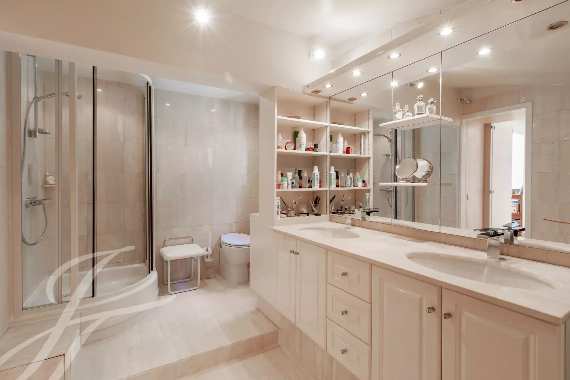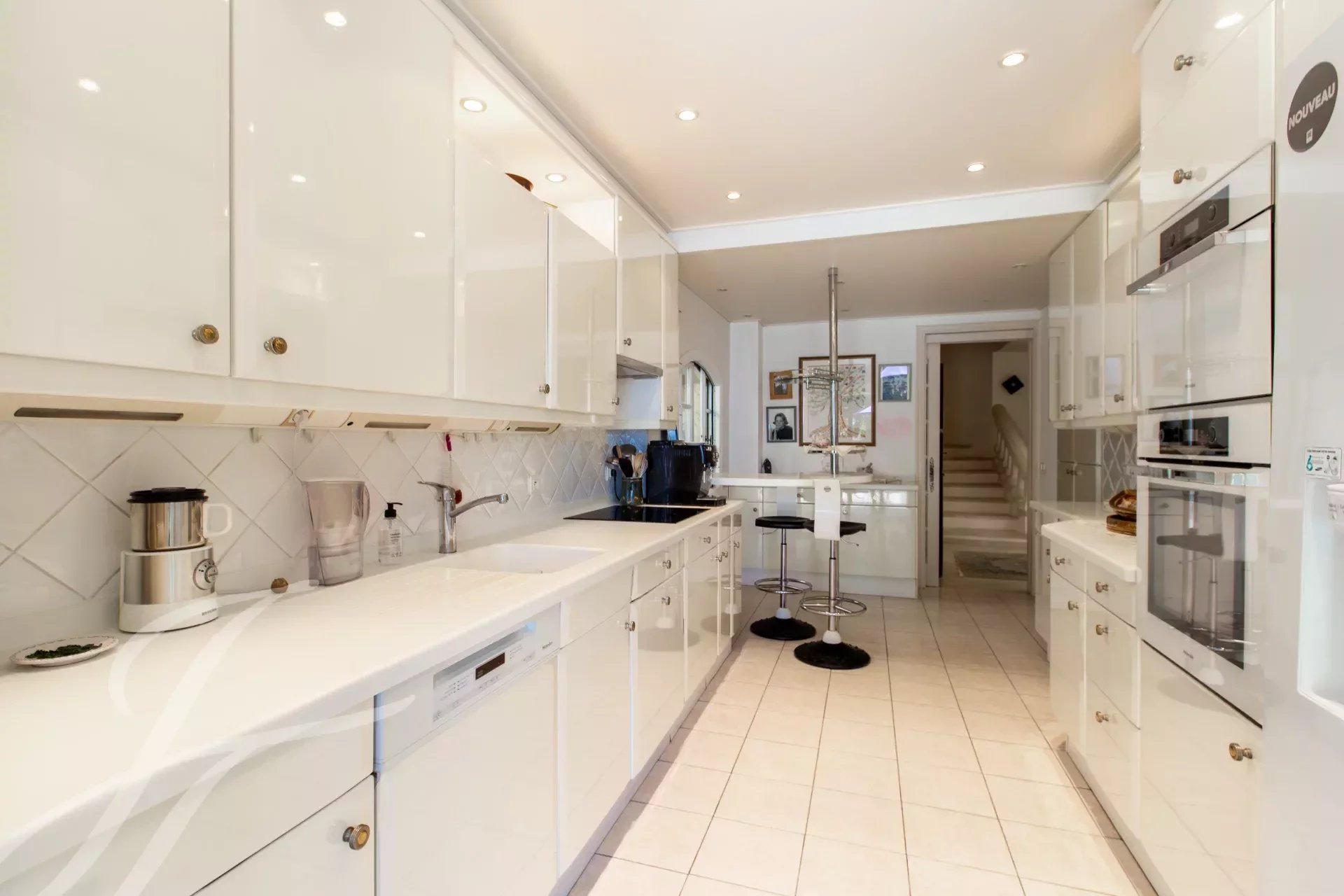 Rés do chão: hall de entrada, sala de estar com lareira e sala de jantar com 66 m², escritório/varanda, cozinha separada, WC, dois quartos e casa de banho. O primeiro andar é composto por um quarto principal de 44 m² que se abre para um terraço de 33 m², quarto de vestir, casa de banho e WC.