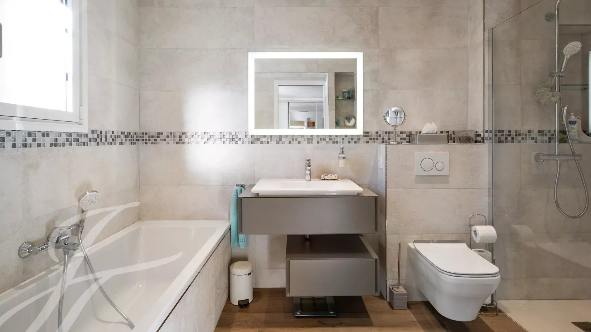 Situada num terreno paisagístico com cerca de 780 m², a casa foi completamente renovada com materiais topo de gama.