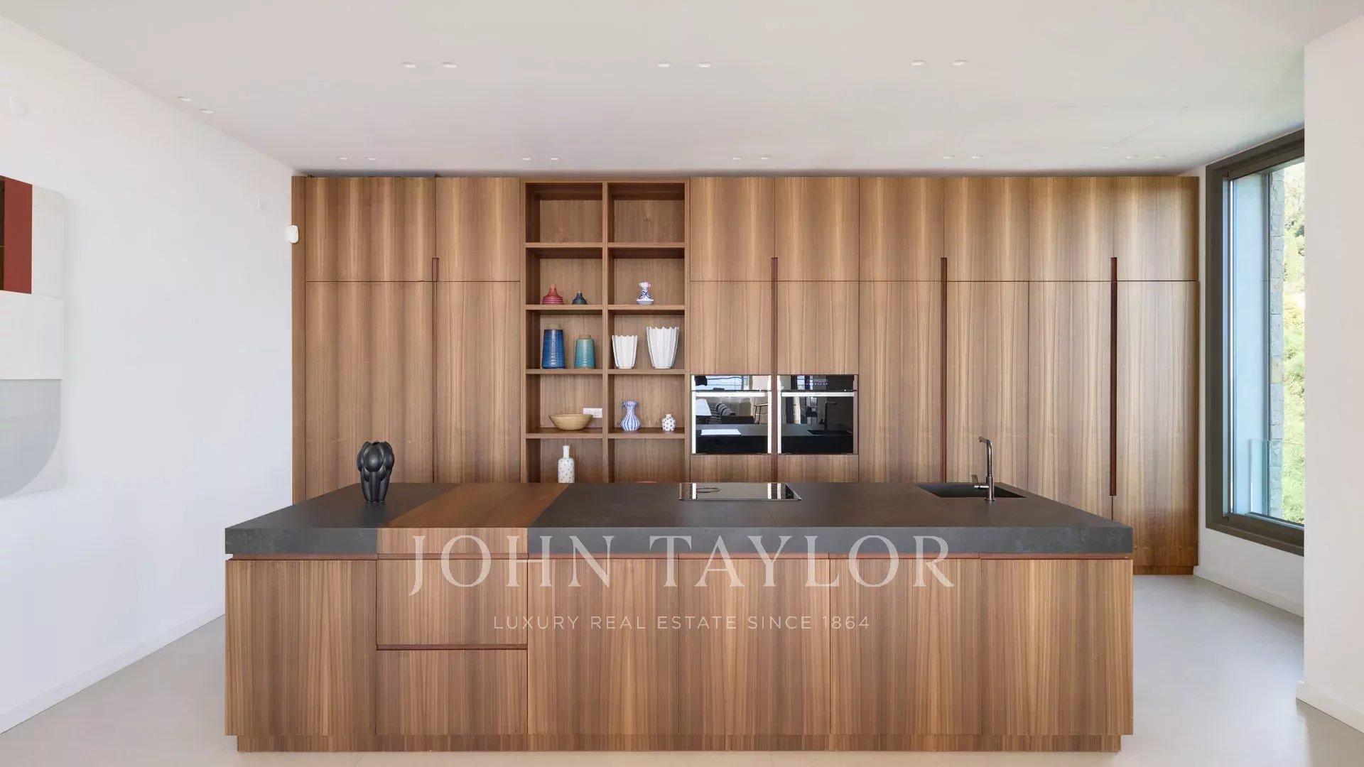 Com uma área útil de cerca de 500 m², a moradia é composta por um hall de entrada, uma ampla sala de estar composta por um salão duplo, uma sala de jantar e uma cozinha em plano aberto, um quarto em suite, um quarto de vestir, uma casa de banho e um lavabo. O piso do jardim é composto por uma sala de jantar e uma cozinha em plano aberto, uma lavandaria e um WC separado, três quartos em suite e um quarto principal.