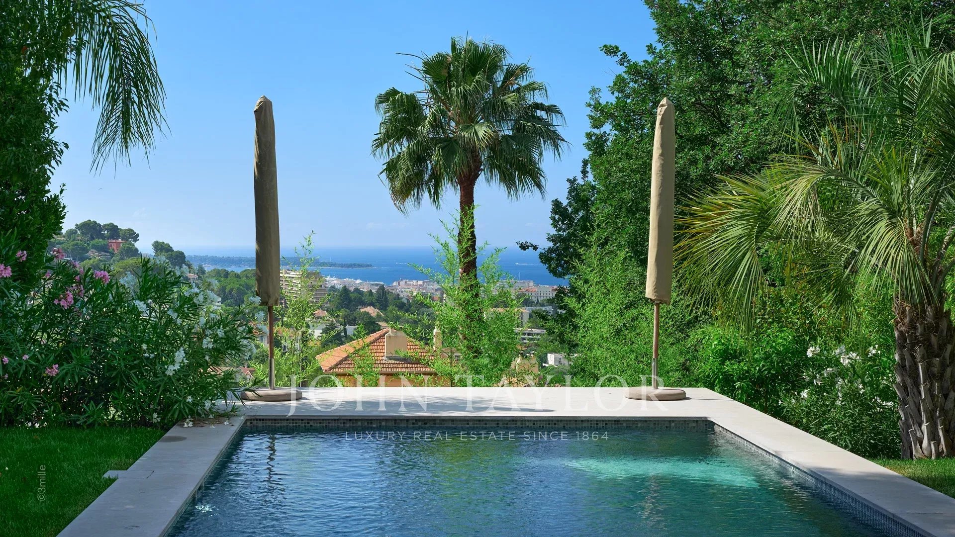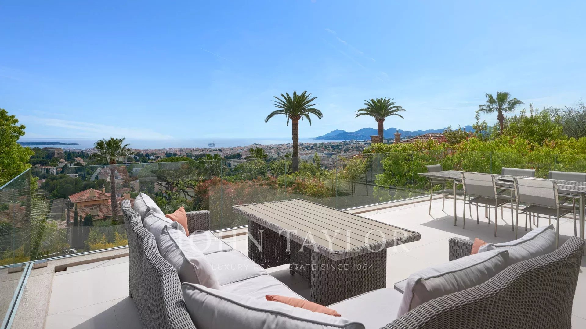 Virada para sul e com vista para a baía de Cannes, oferece vistas para o mar que se estendem desde as ilhas Lérins até ao maciço de Estérel.