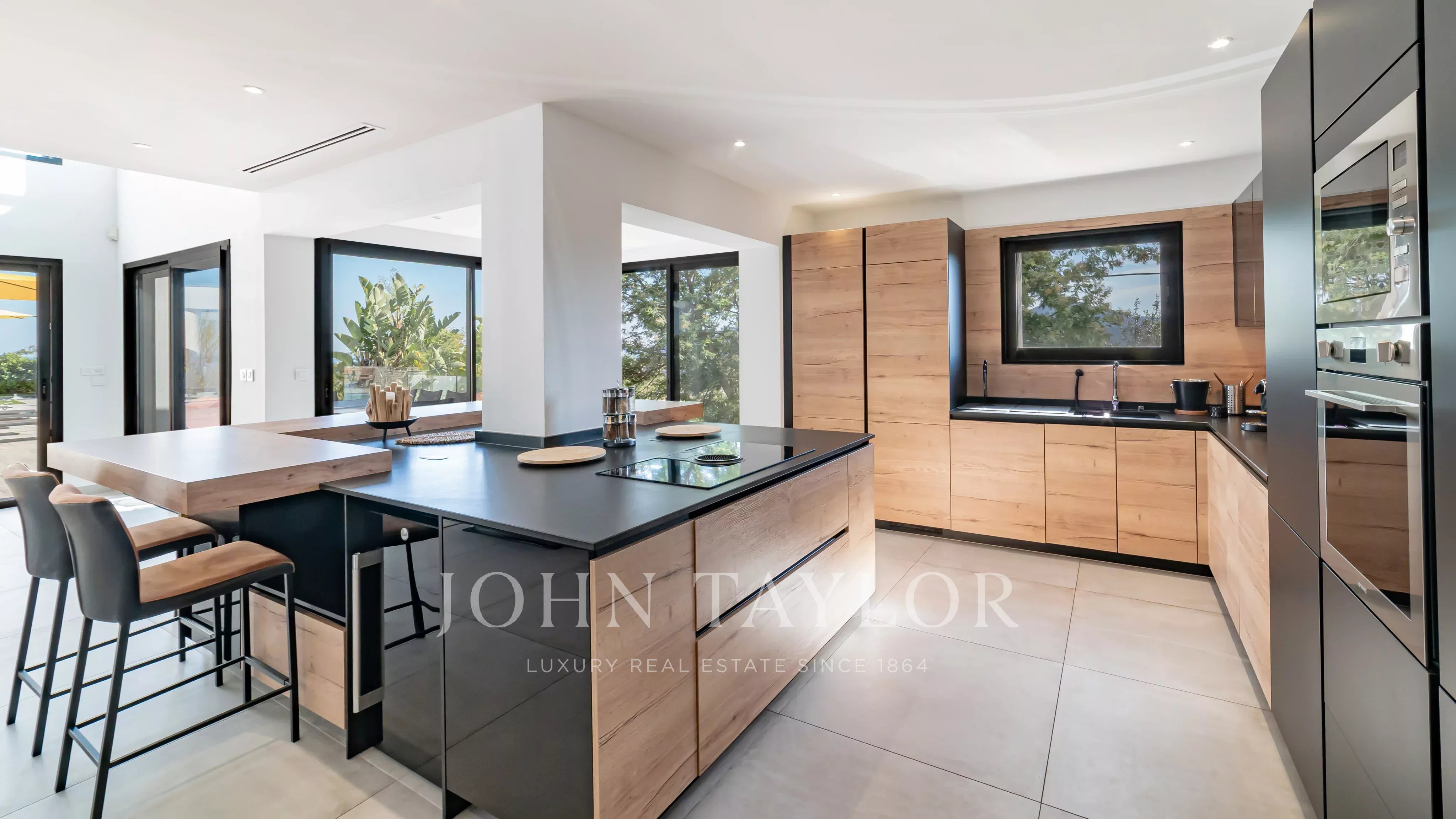 - Sala de estar majestosa e luminosa com tectos de 5 m de altura que se abrem para um grande terraço e uma piscina infinita aquecida (11 m x 5 m),