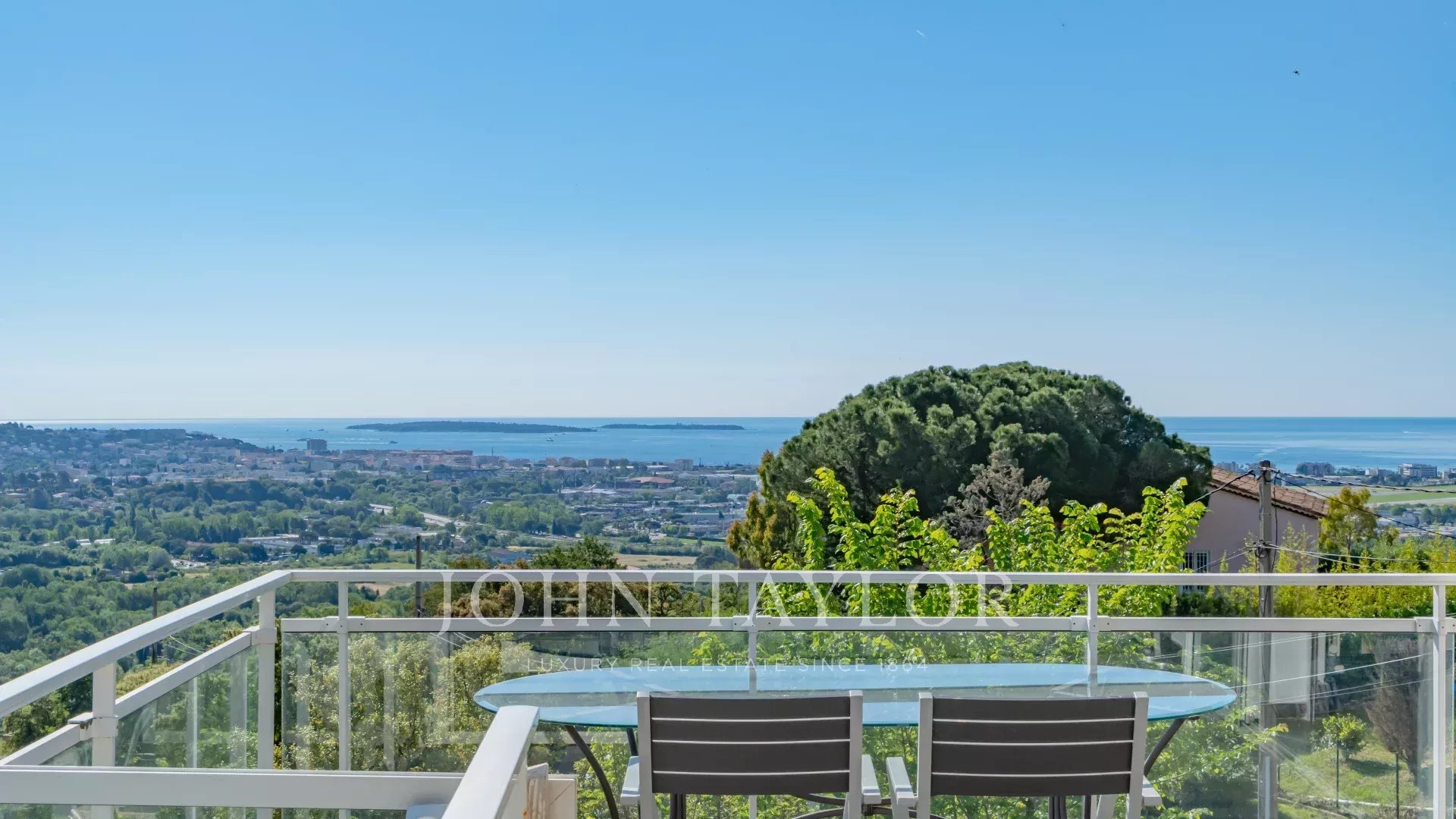 Situada na encosta de Mandelieu, esta villa de estilo contemporâneo oferece vistas panorâmicas deslumbrantes de 270 graus sobre as ilhas, a Baía de Cannes, o maciço de Estérel e os Alpes.