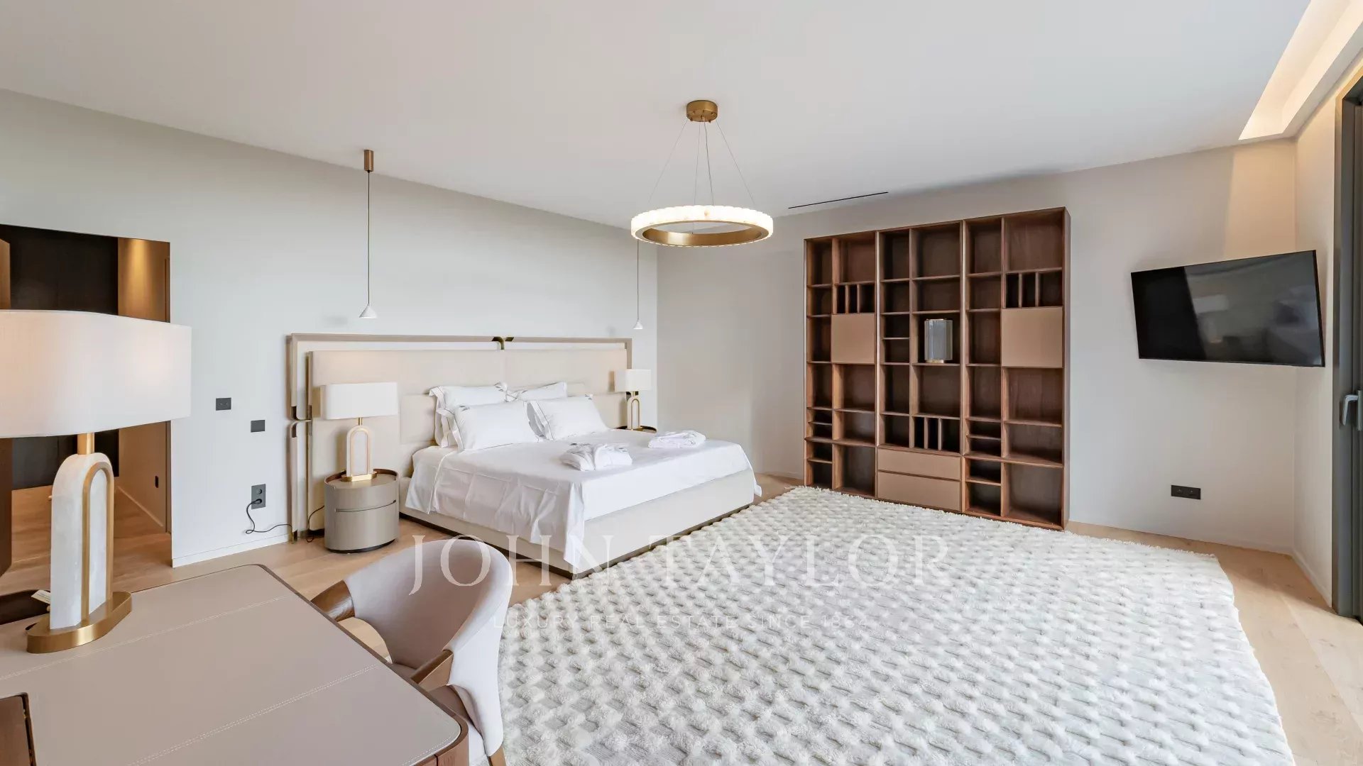 A moradia está rodeada por um magnífico jardim paisagístico mediterrânico com uma piscina infinita, jacuzzi e casa da piscina.