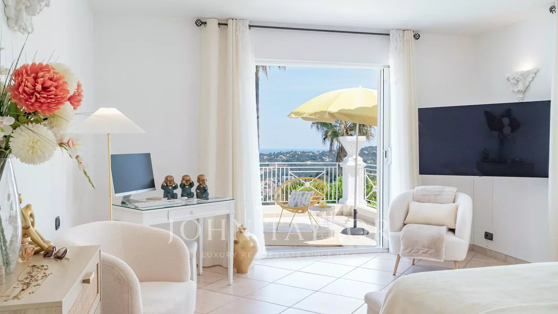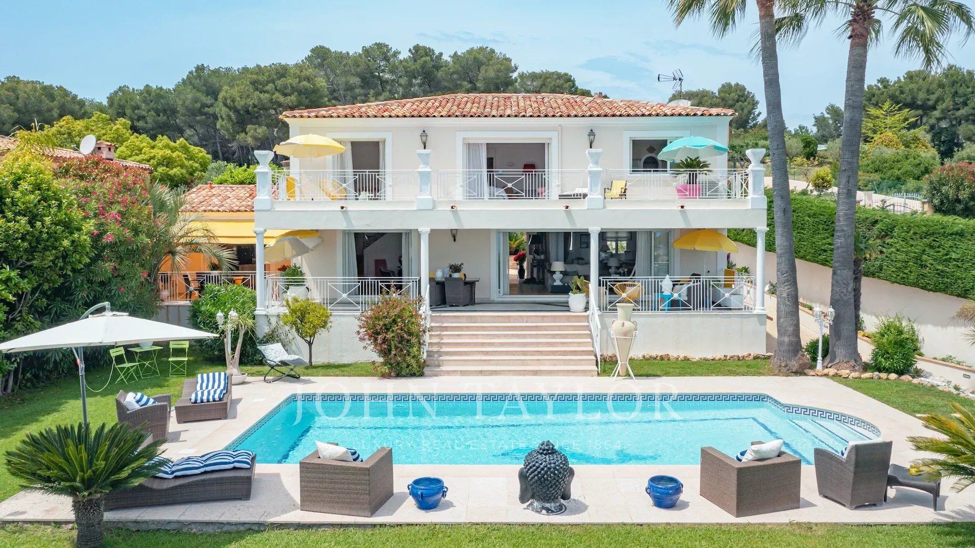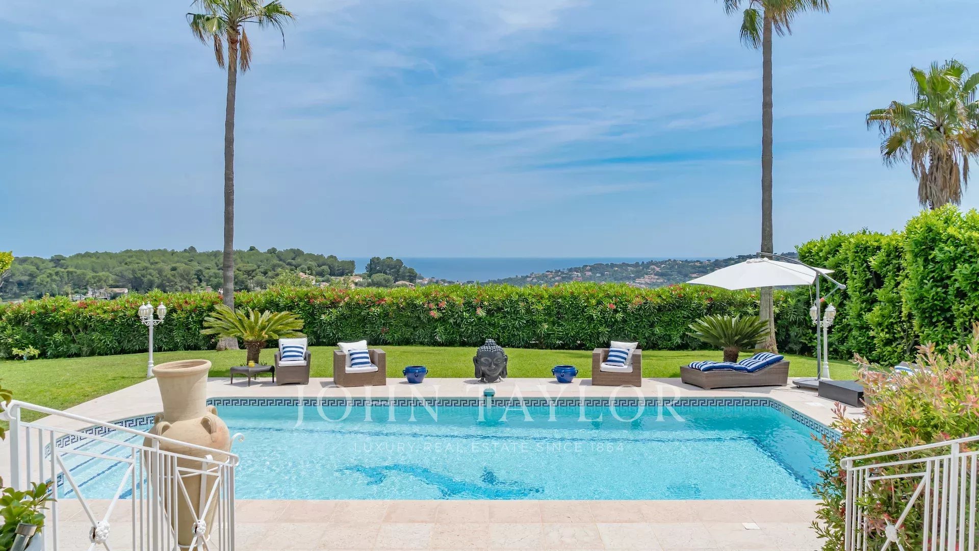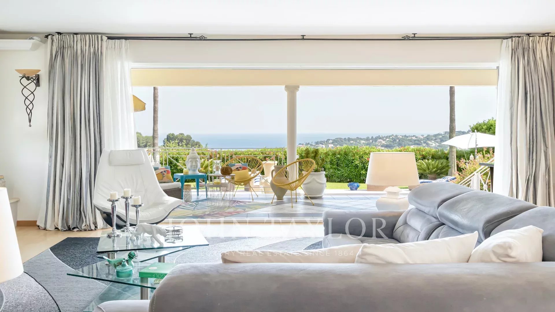 Situada nas alturas de Vallauris, numa propriedade tranquila e fechada, esta bela villa foi totalmente renovada com um elevado padrão de qualidade e oferece vistas ininterruptas para o mar e para as colinas verdejantes.