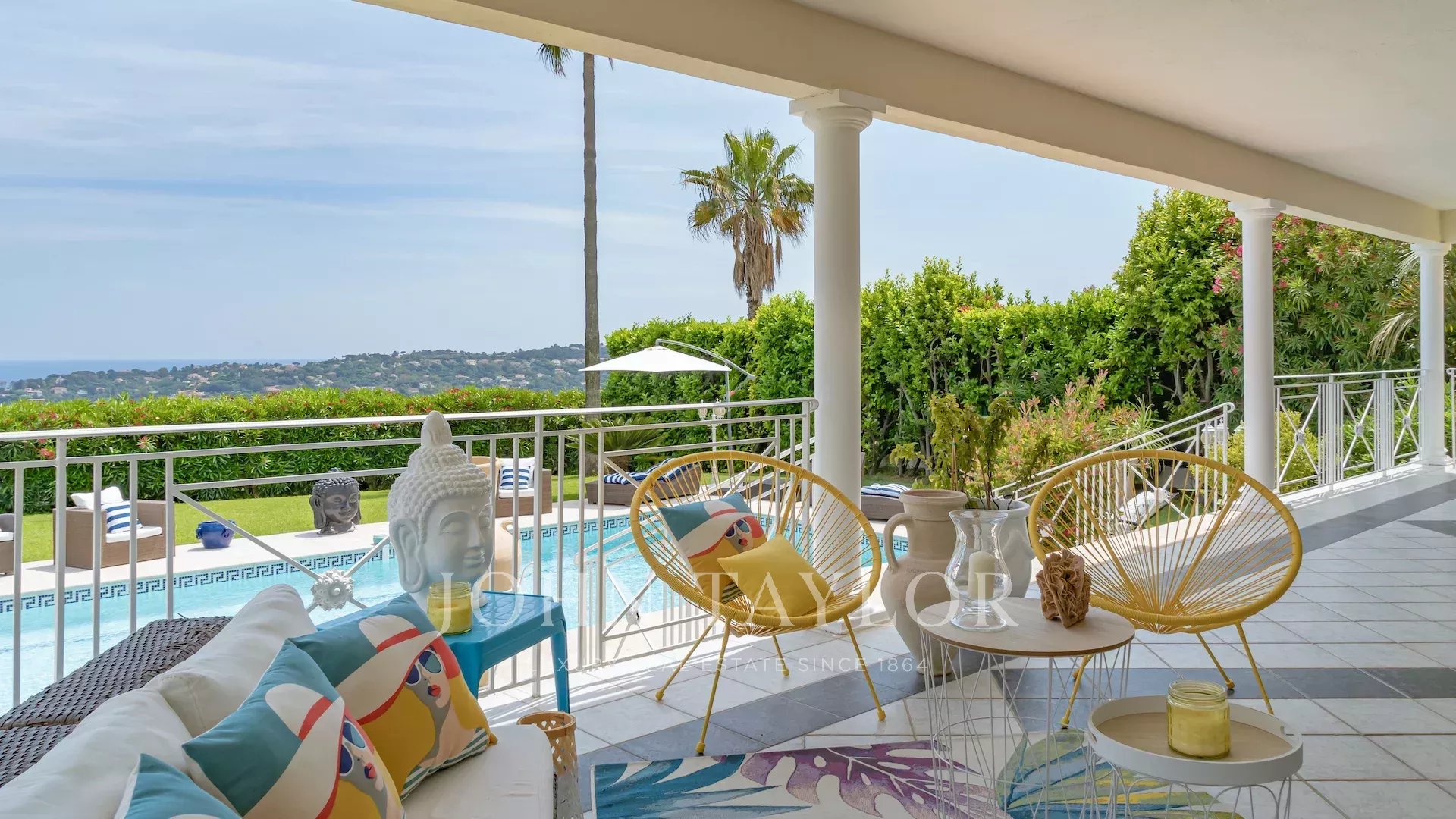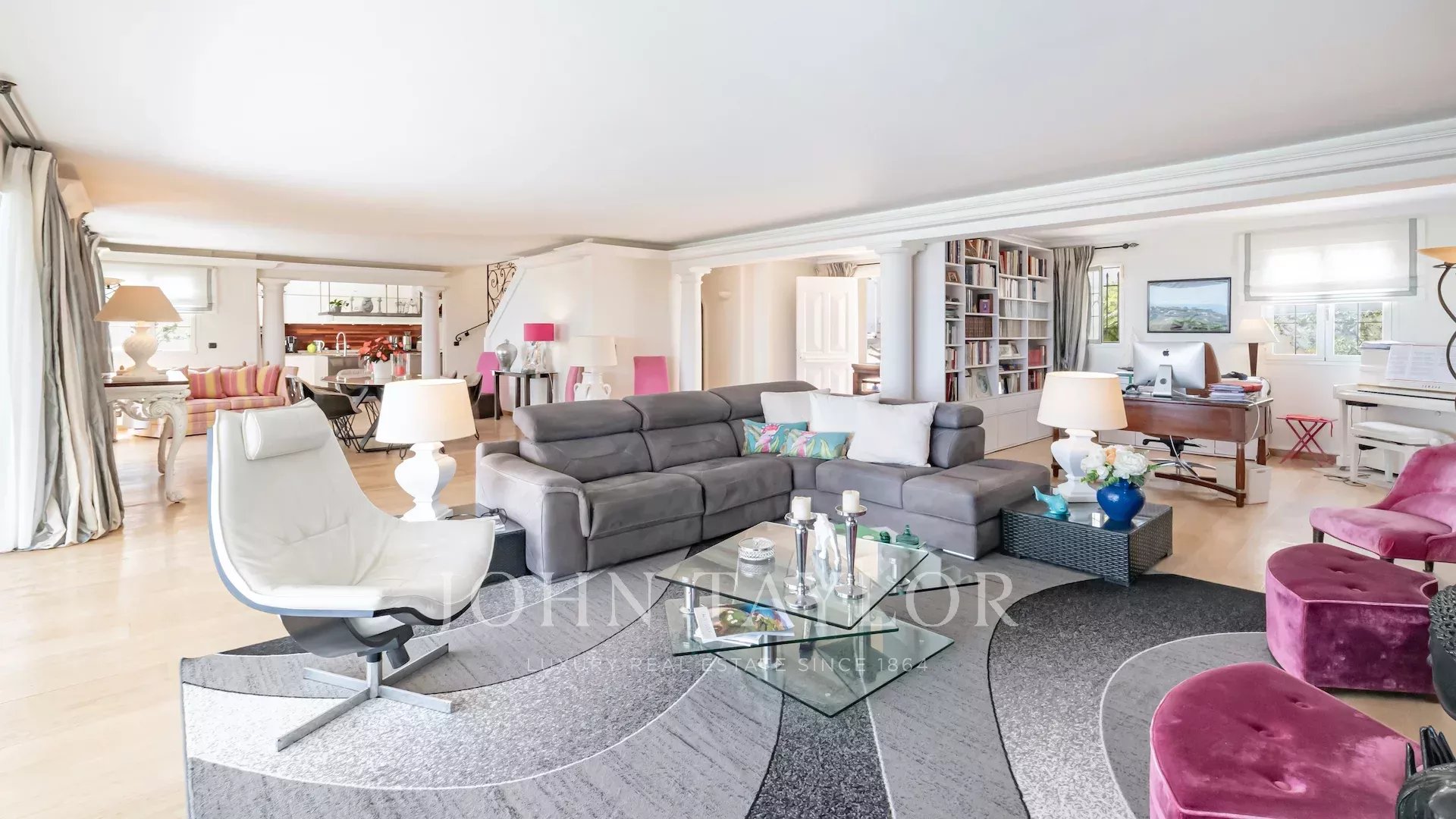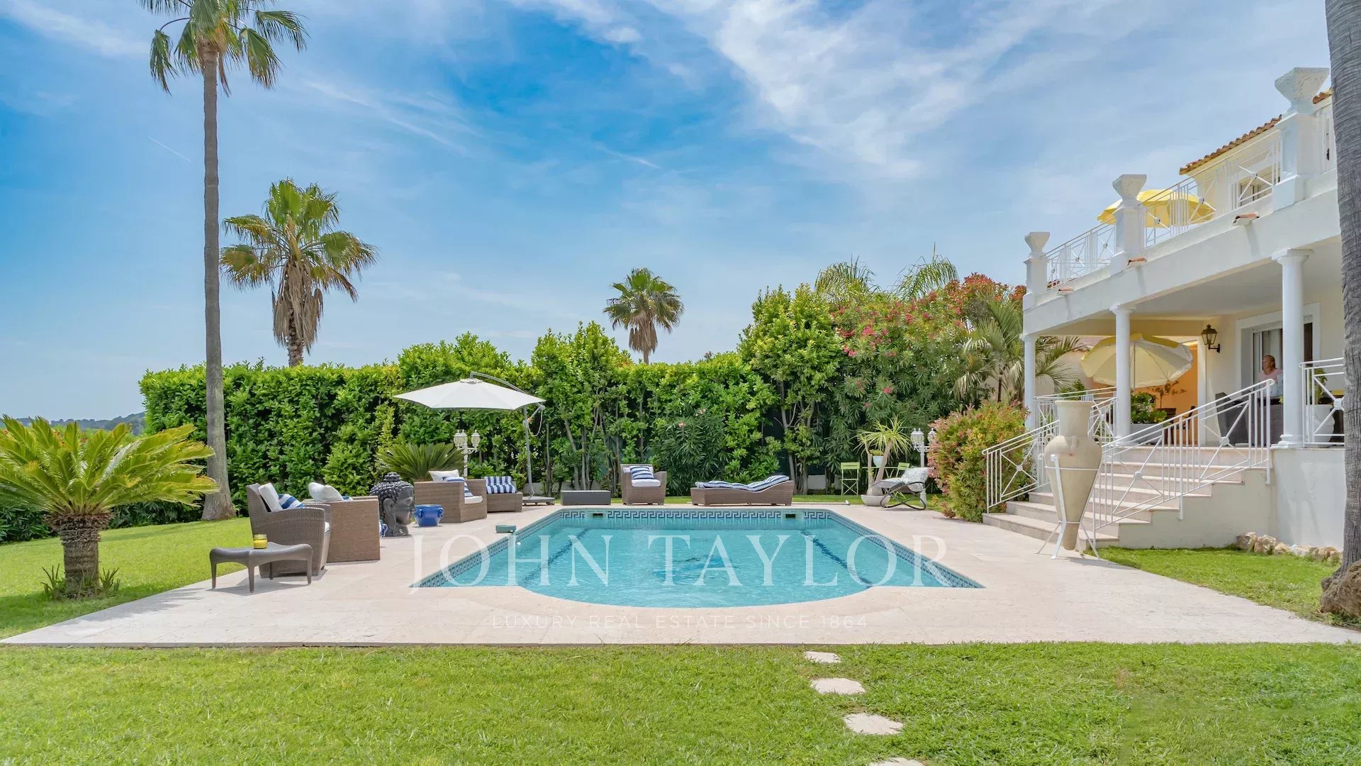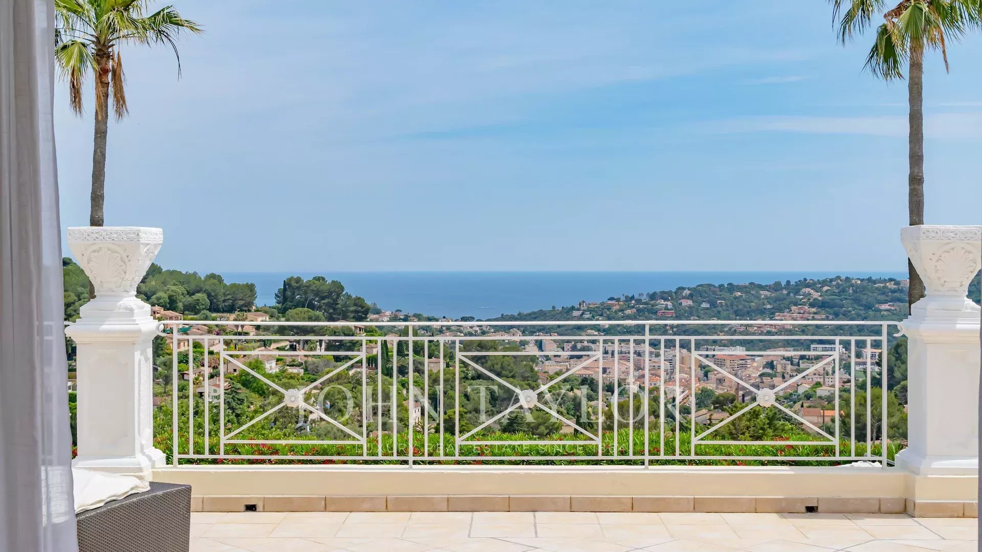 Situada nas alturas de Vallauris, numa propriedade tranquila e fechada, esta bela villa foi totalmente renovada com um elevado padrão de qualidade e oferece vistas ininterruptas para o mar e para as colinas verdejantes.