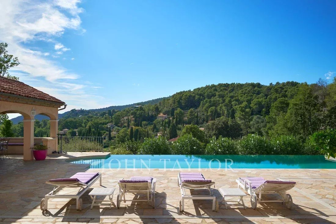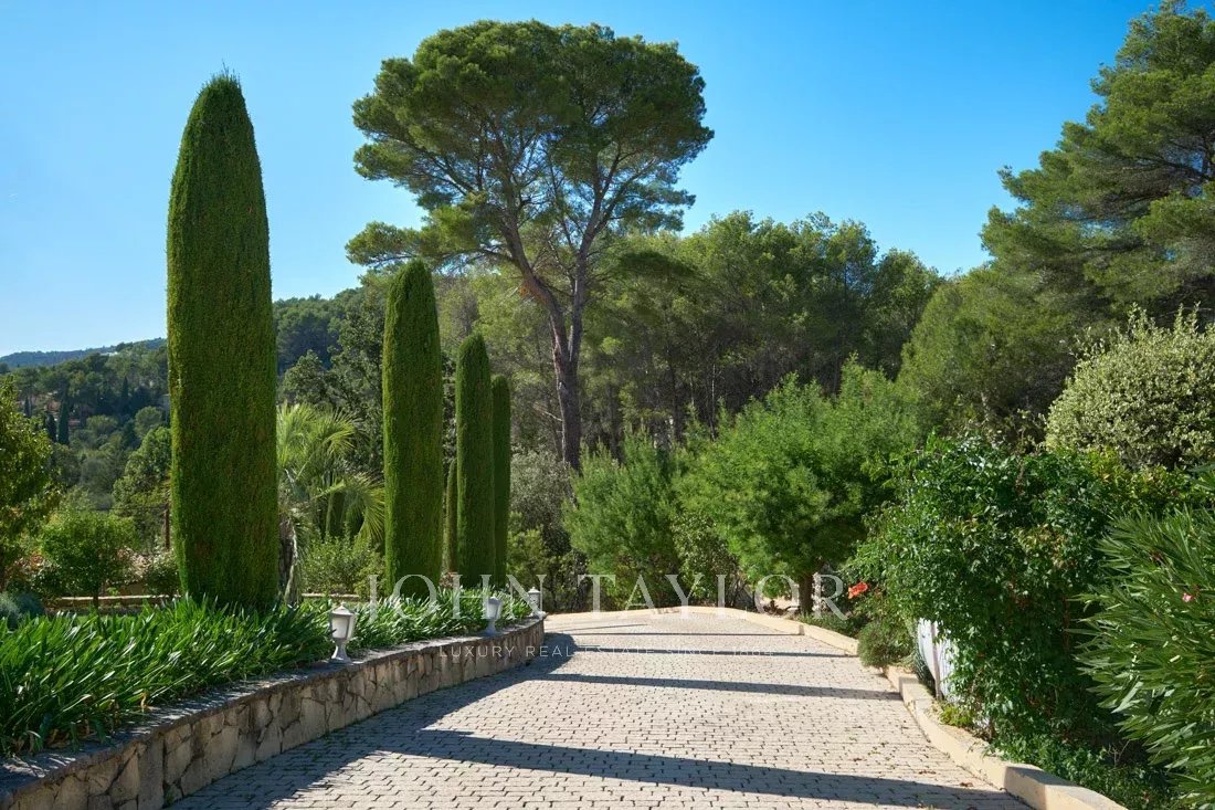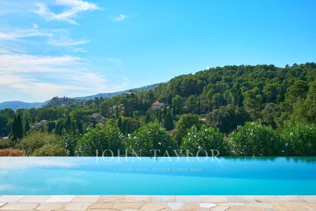 Uma elegante entrada de automóveis conduz a esta encantadora propriedade de 2.864 m² com vistas magníficas sobre a pitoresca aldeia de Cabris e as colinas circundantes.